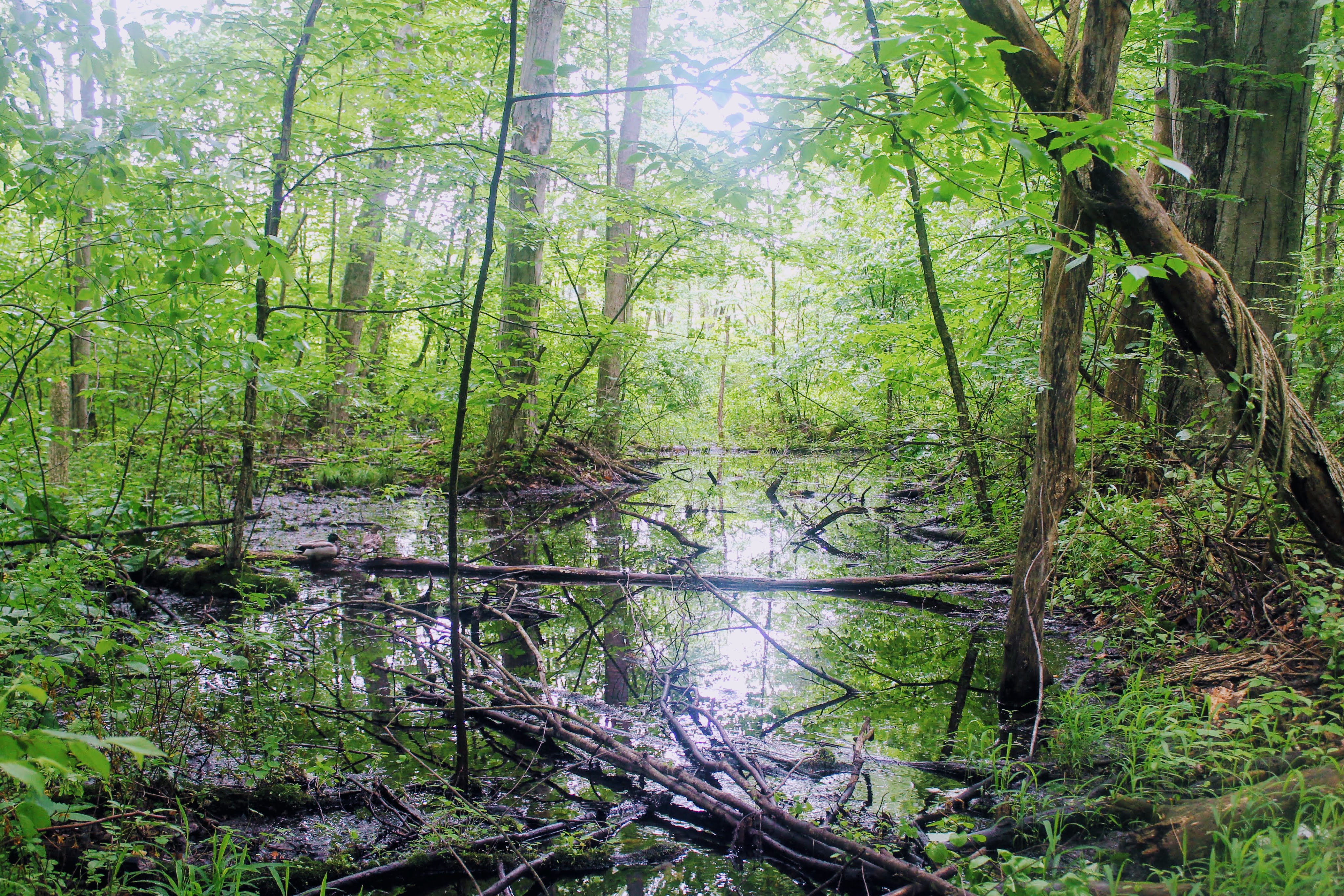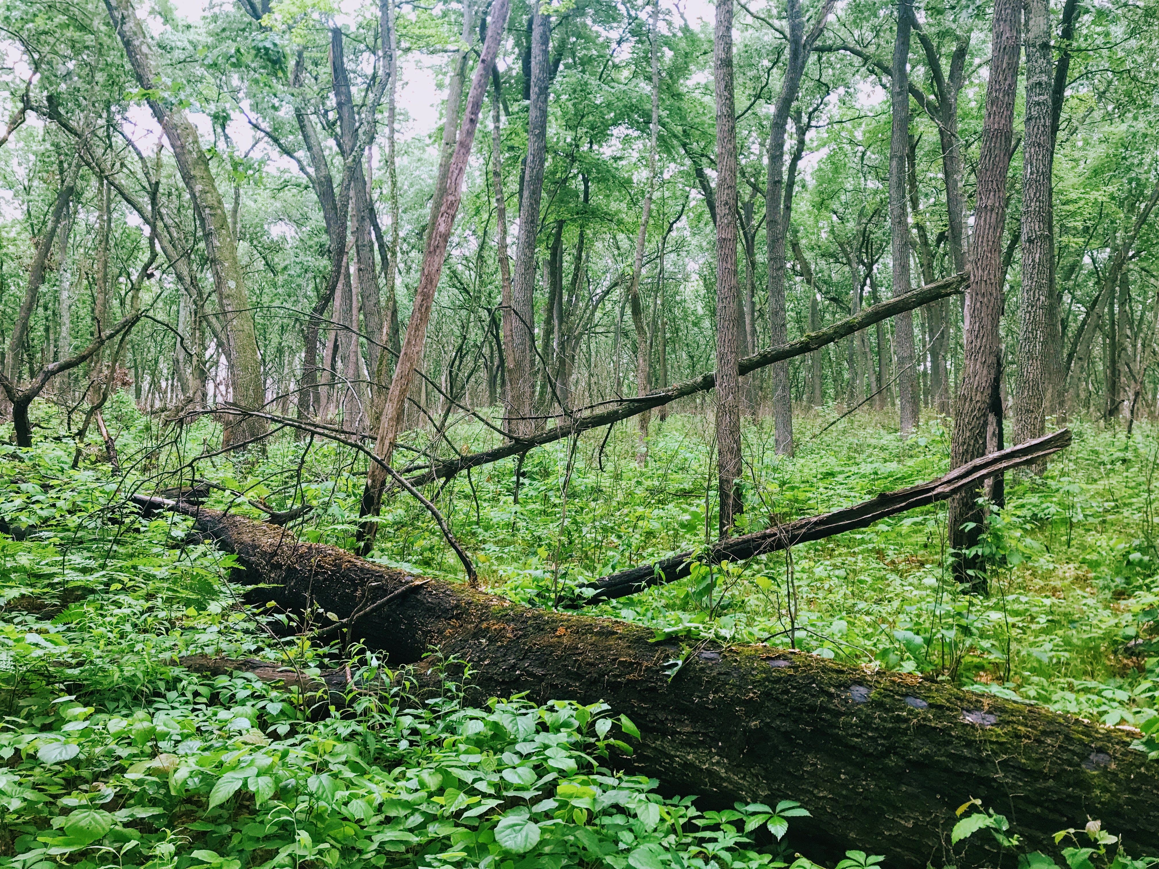 The next morning, we take to the woods. In true midwestern form, they are lush and full of water.