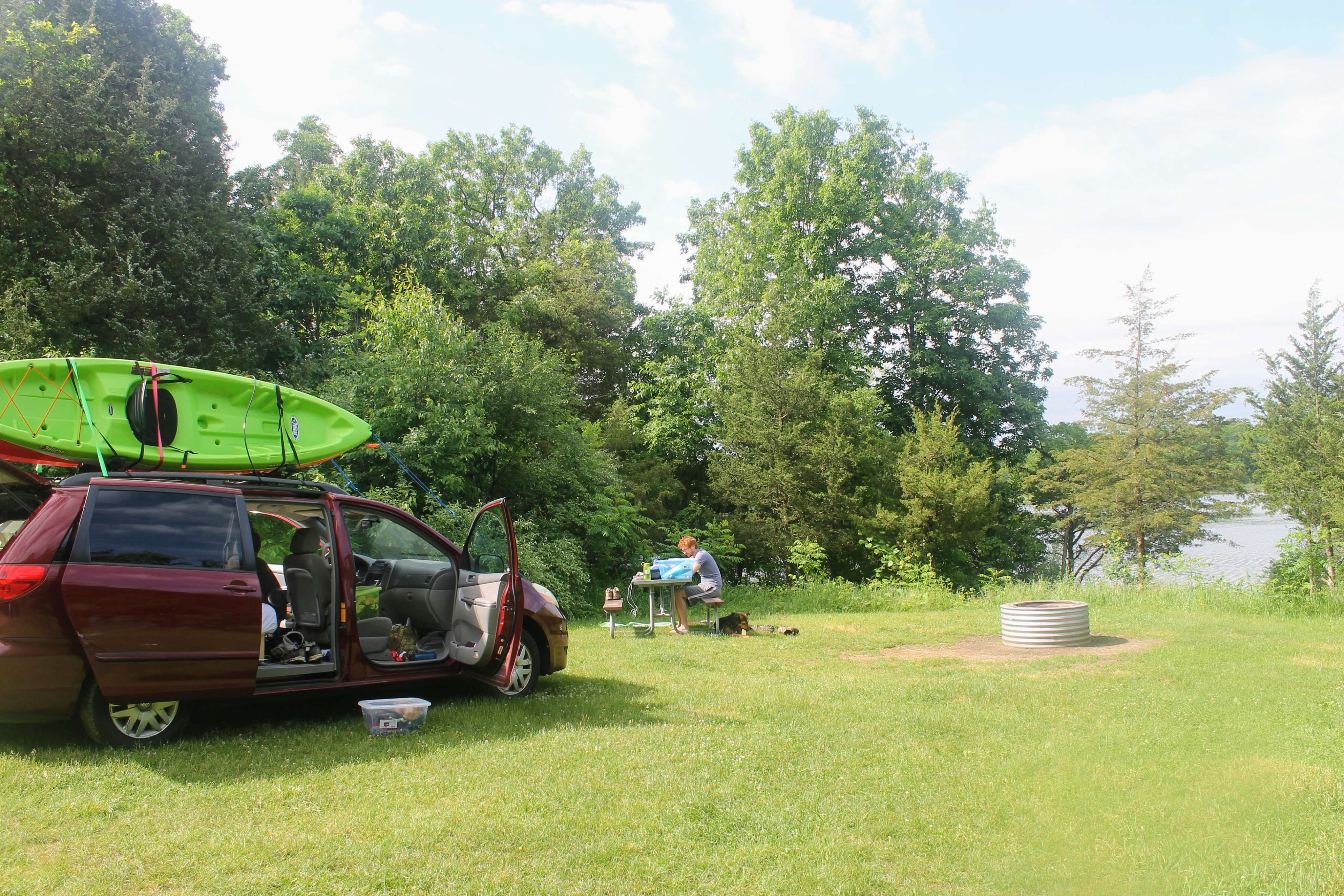We take some time to relax by the lake. Mason reads a book. Gob chews a bone. Mel (our minivan) airs out. I take some pictures.