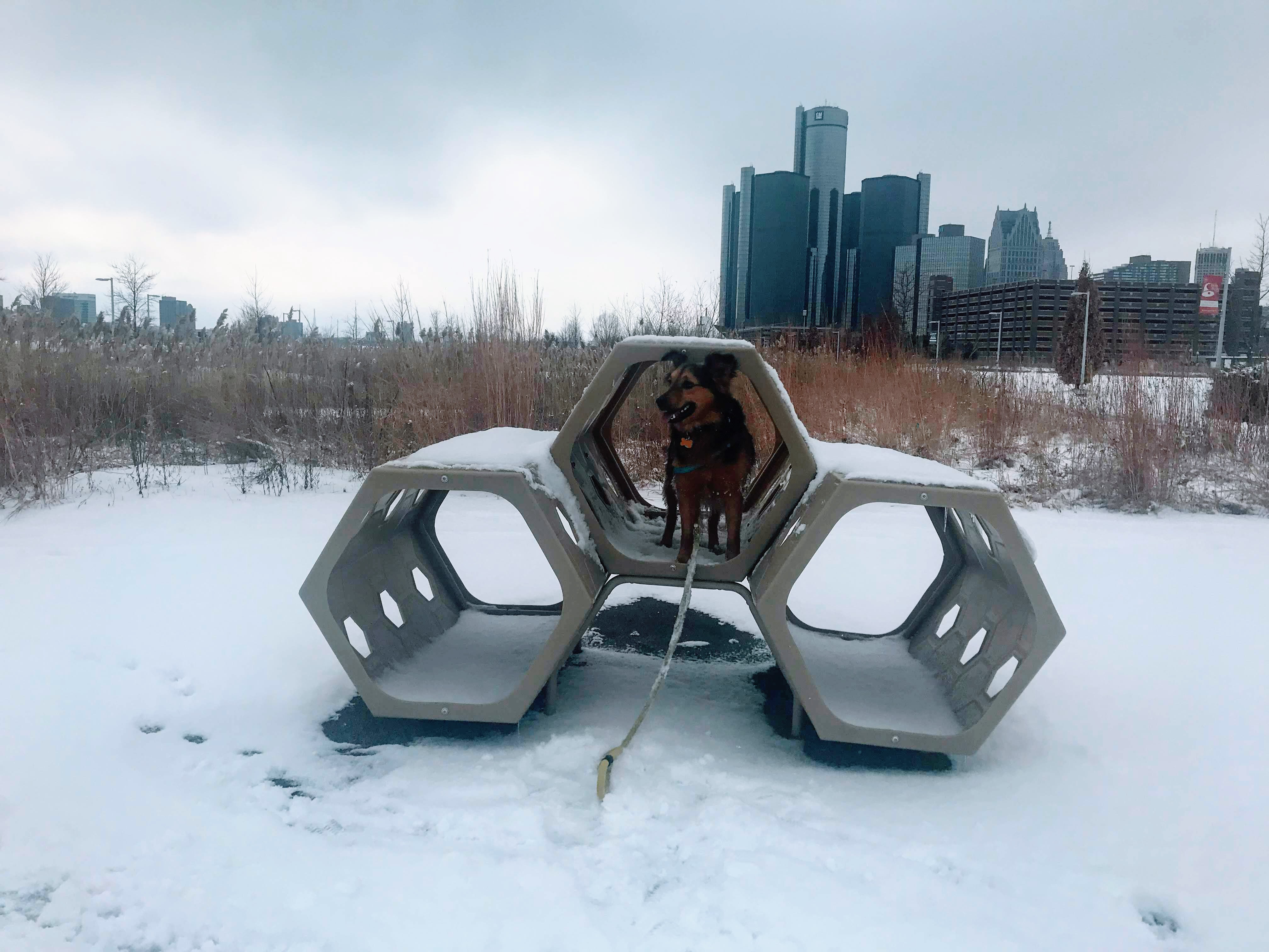 My first real Michigan winter. It is colder up here. The snow lasts longer, which Gob loves but I do not. It’s been too long since my last adventure, but I’m not yet ready to brave the wilderness. I opt for an “urban” park in Detroit.
