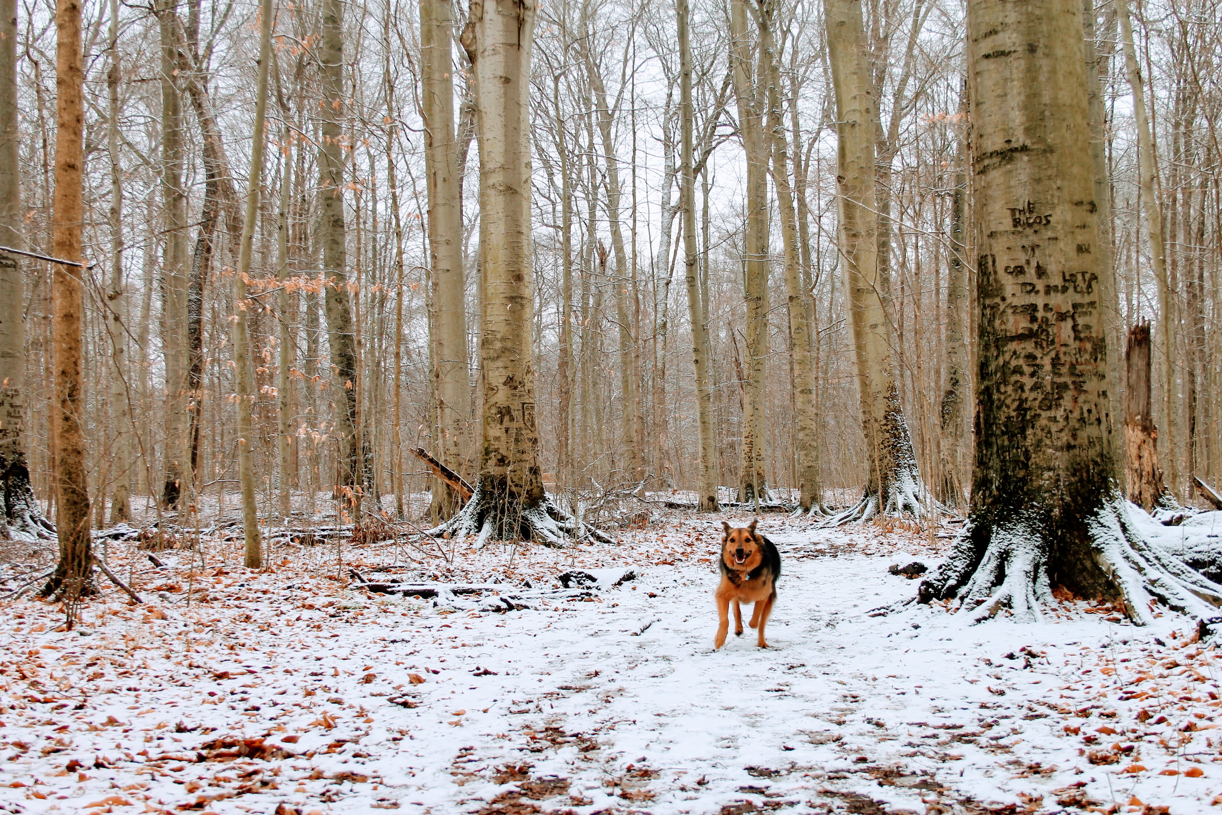 A partially frozen wonderland is Gobs perfect playground. It’s near impossible to overheat when at any moment you can stop for a roll in the snow. Not to mention the water is still splashable. Added bonus, there are far fewer strangers out and about to get in the way of his freedom.