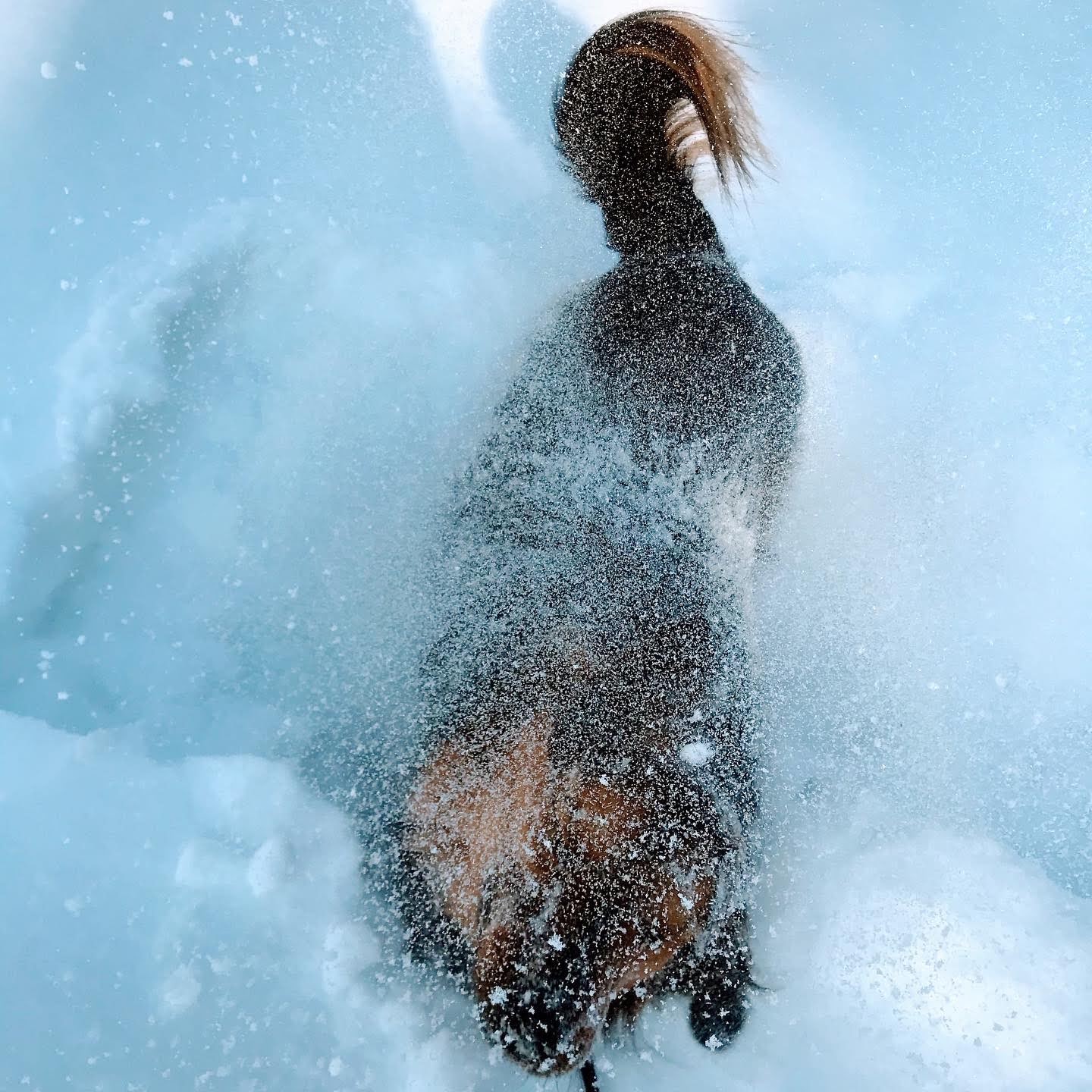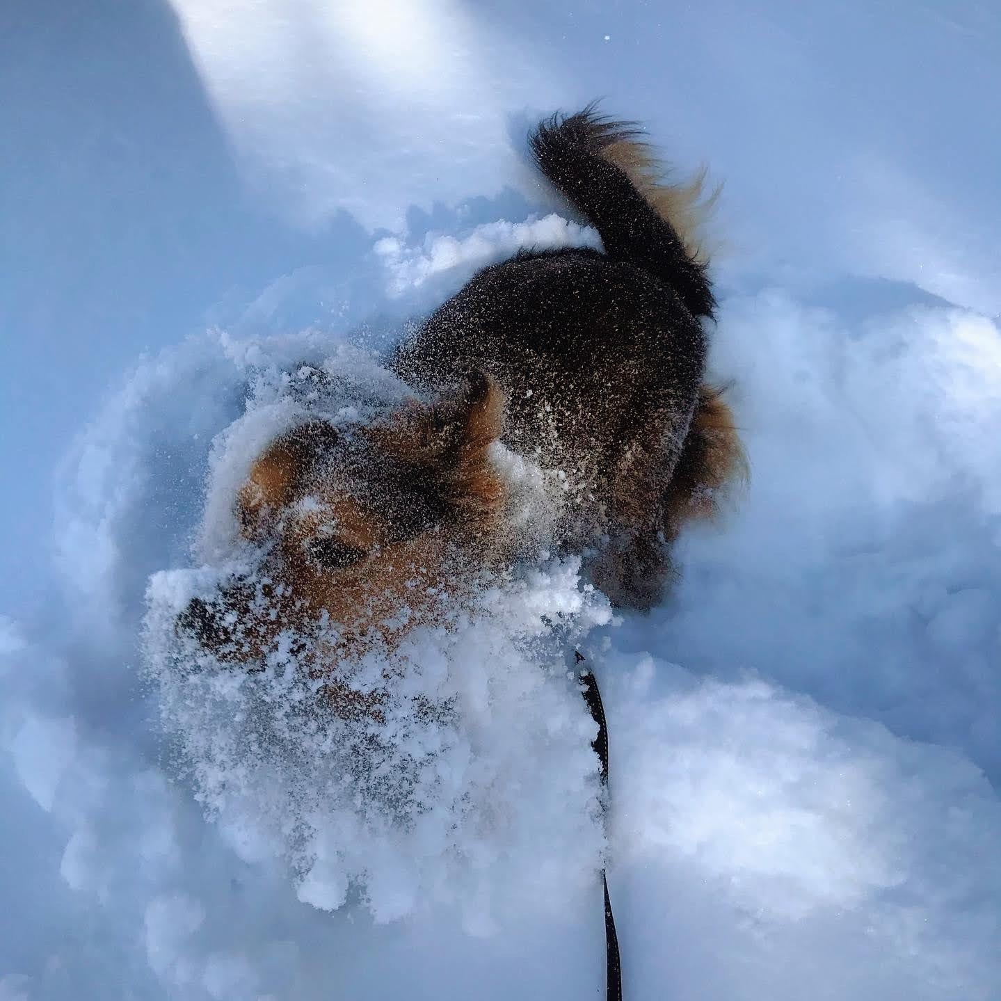 I had a last minute substitution. Poor Gob’s little paws don’t hold up to the frigid temperatures and deep snow (especially when he won’t keep his shoes on). He sure does love to roll in it though…Mason steps in, promising to keep his shoes on.