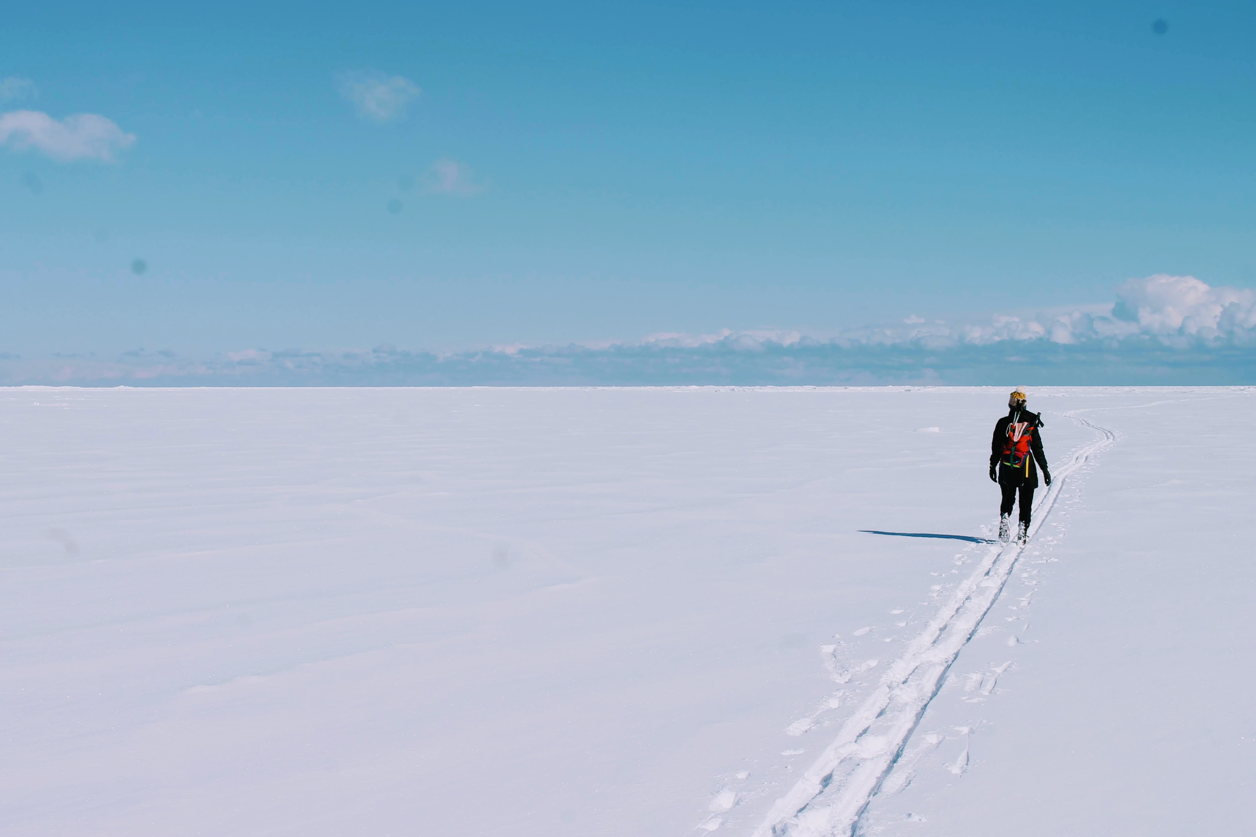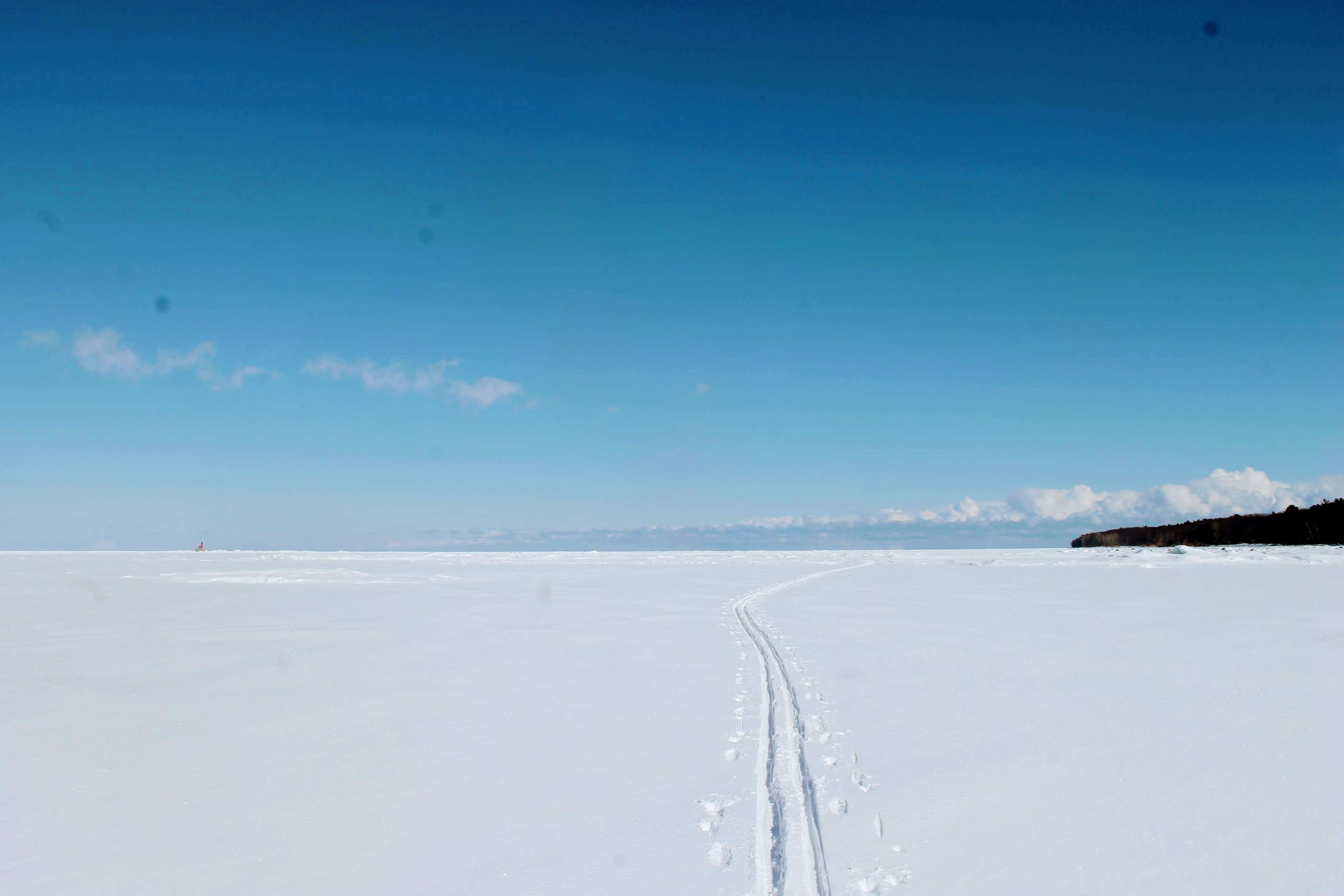 The distant light house never seems to get any closer. I figured deep snow would slow our typical hiking pace significantly, but we are making surprisingly good time. That is until I am drawn in to the mesmerizing blues and greens hiding within the ice.