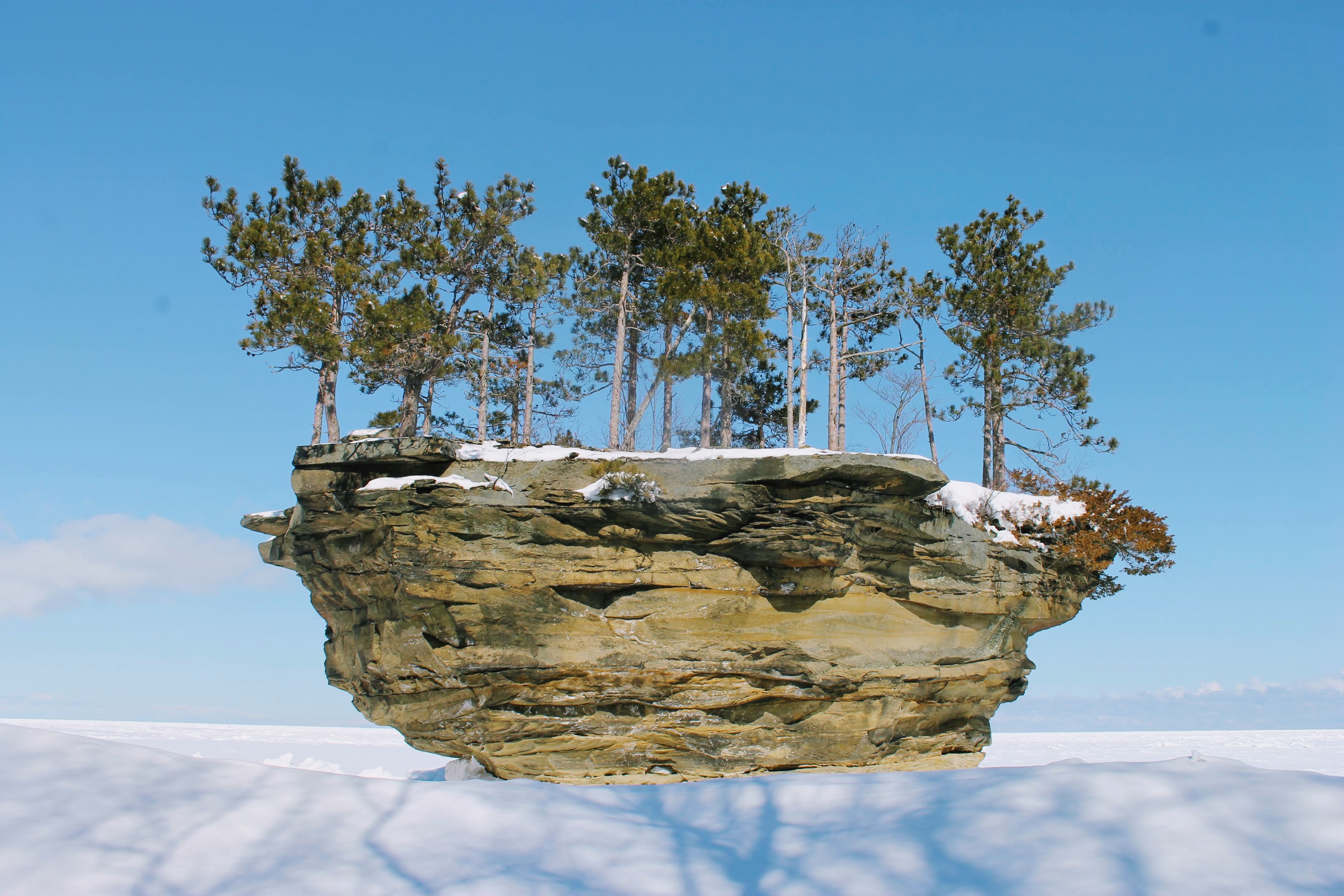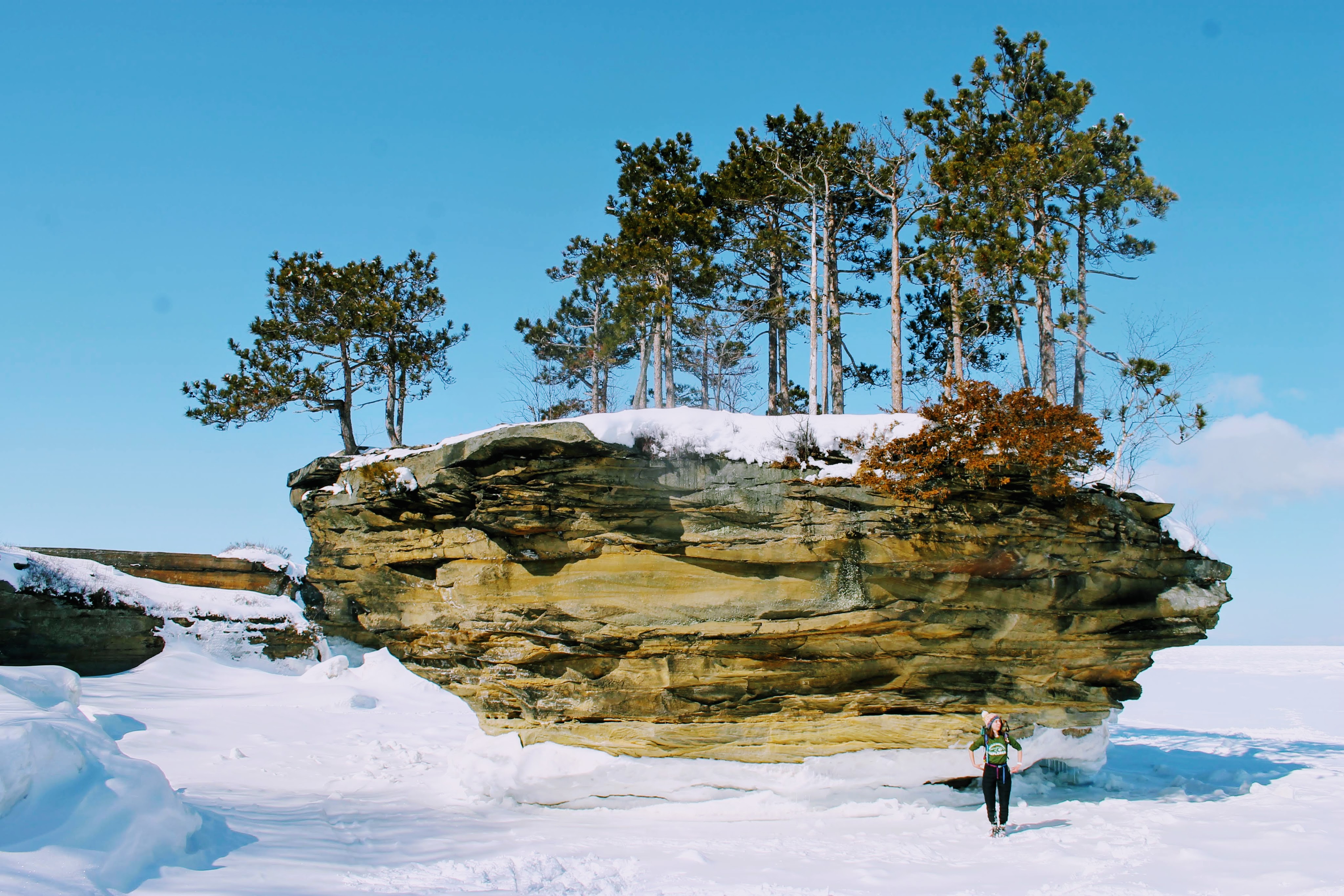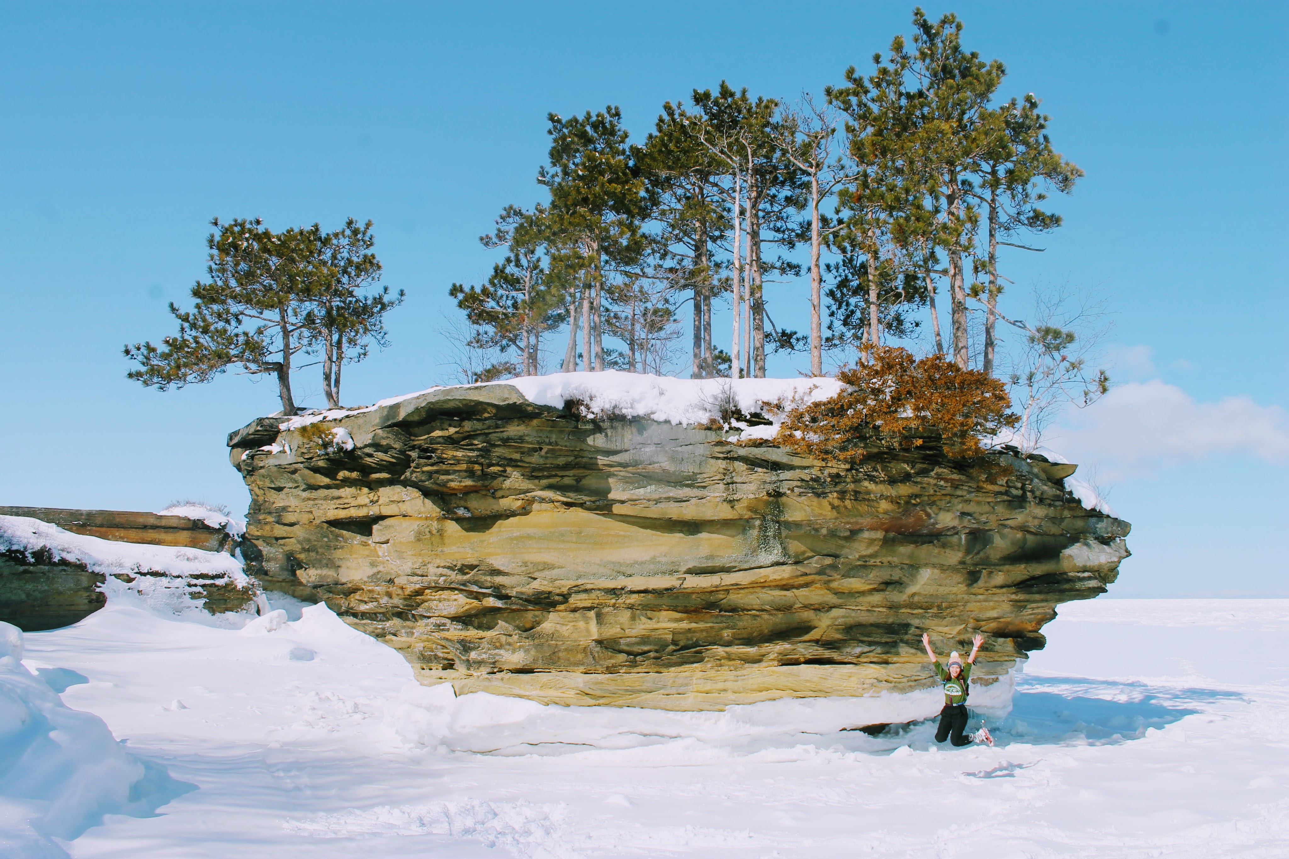 While researching how to best make the trek over frozen Lake Huron to Turnip Rock, I found few resources. A rough kayaking map. General recommendations for snow shoes or cross country skis. I looked over the map. The lack of available snow shoes left us with hiking boots.