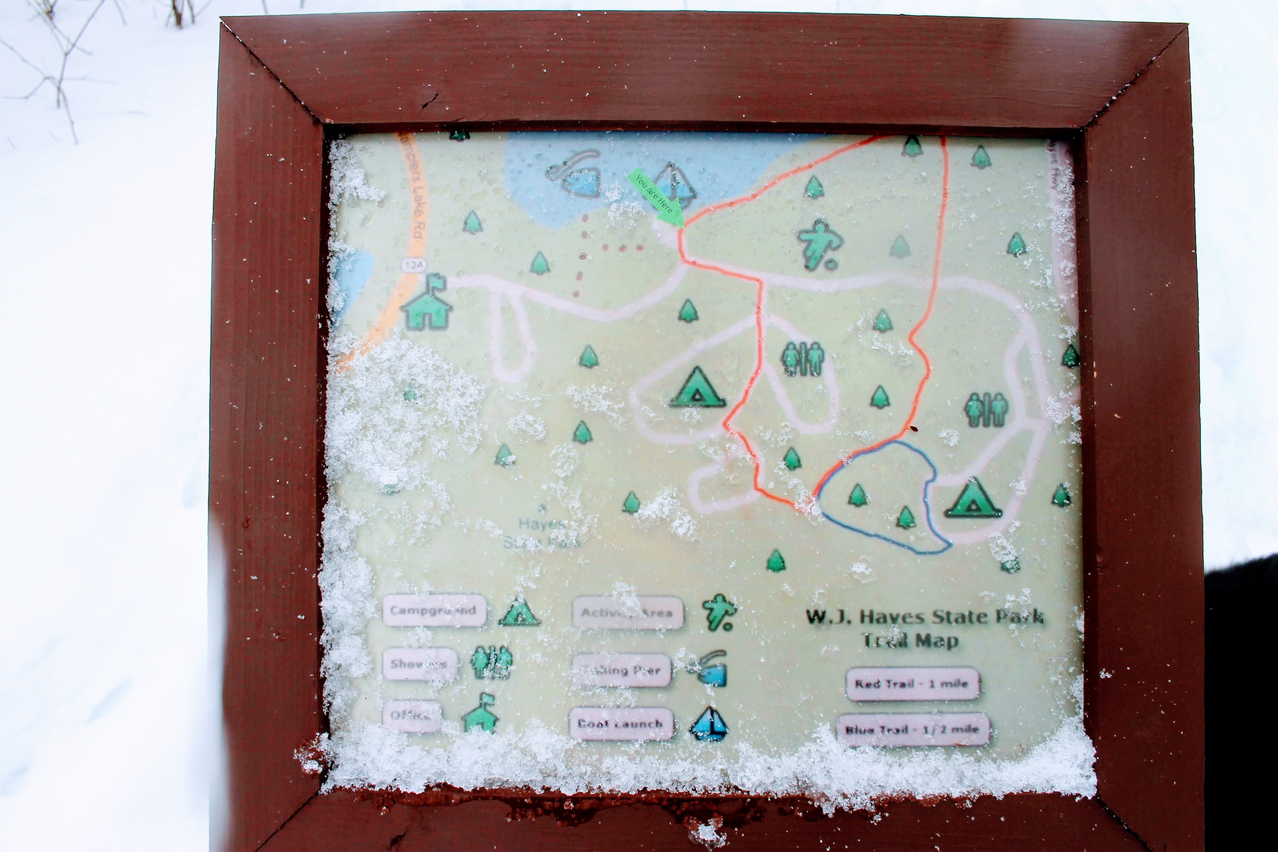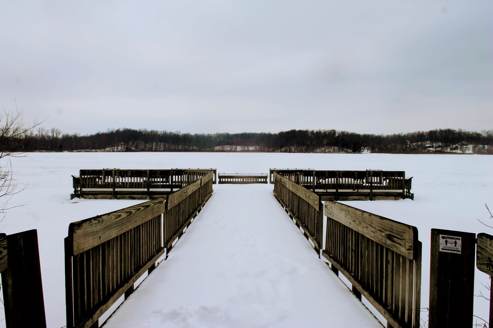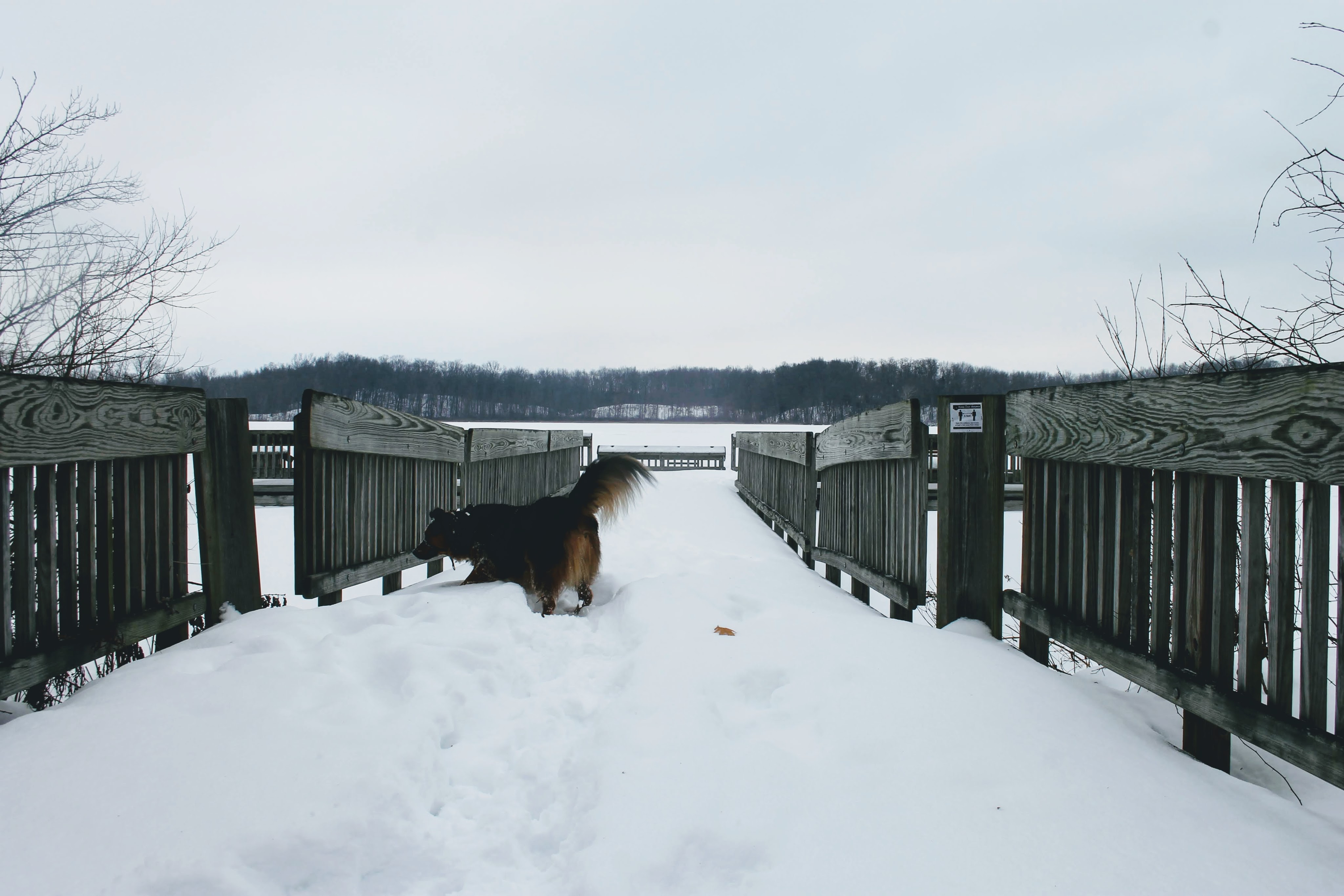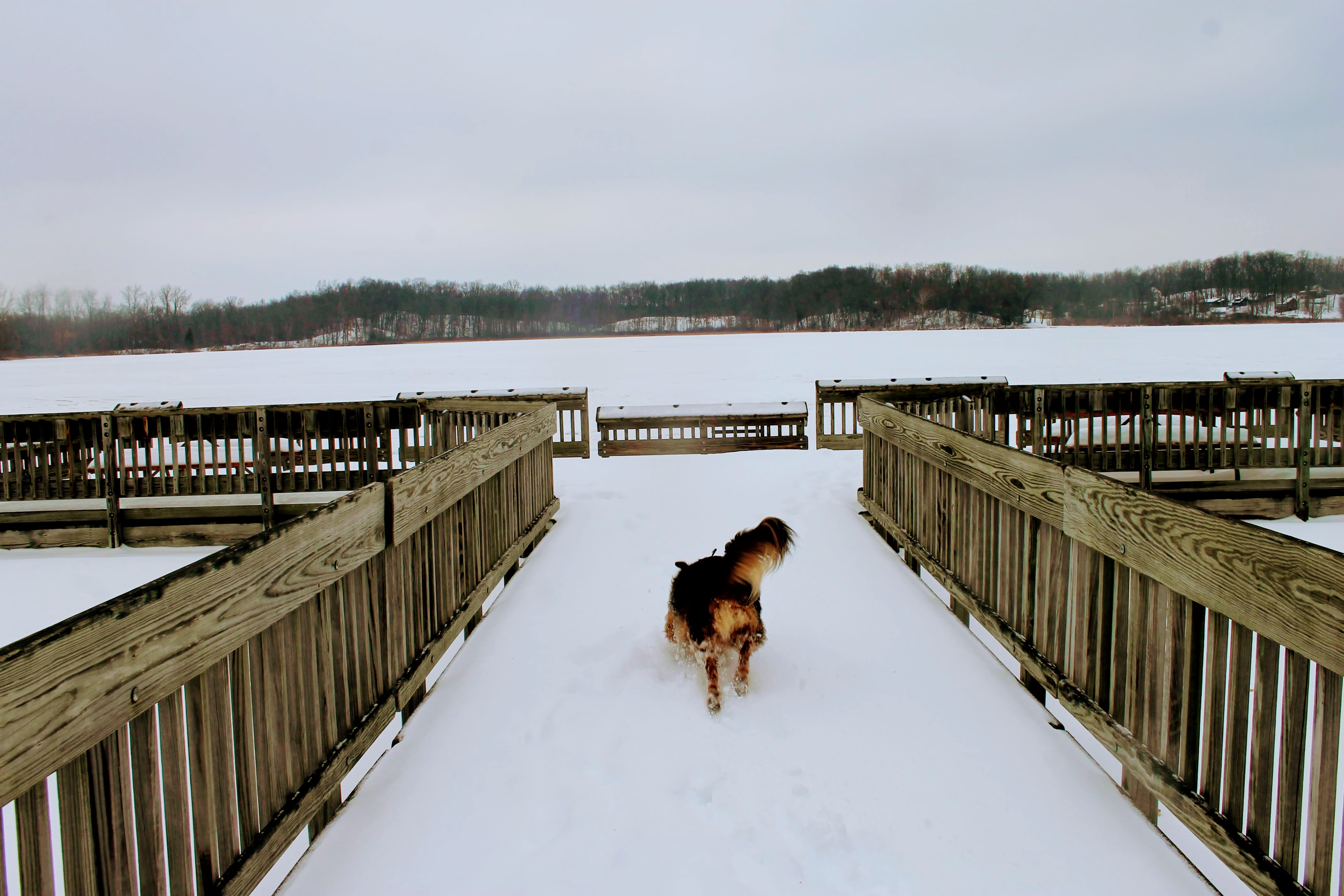 He insisted on his own frozen lake adventure, but 2 days and 200 miles south, the ice proved to be too thin. As puddles formed in our footprints, we stuck to the shore and instead explored the fishing dock.