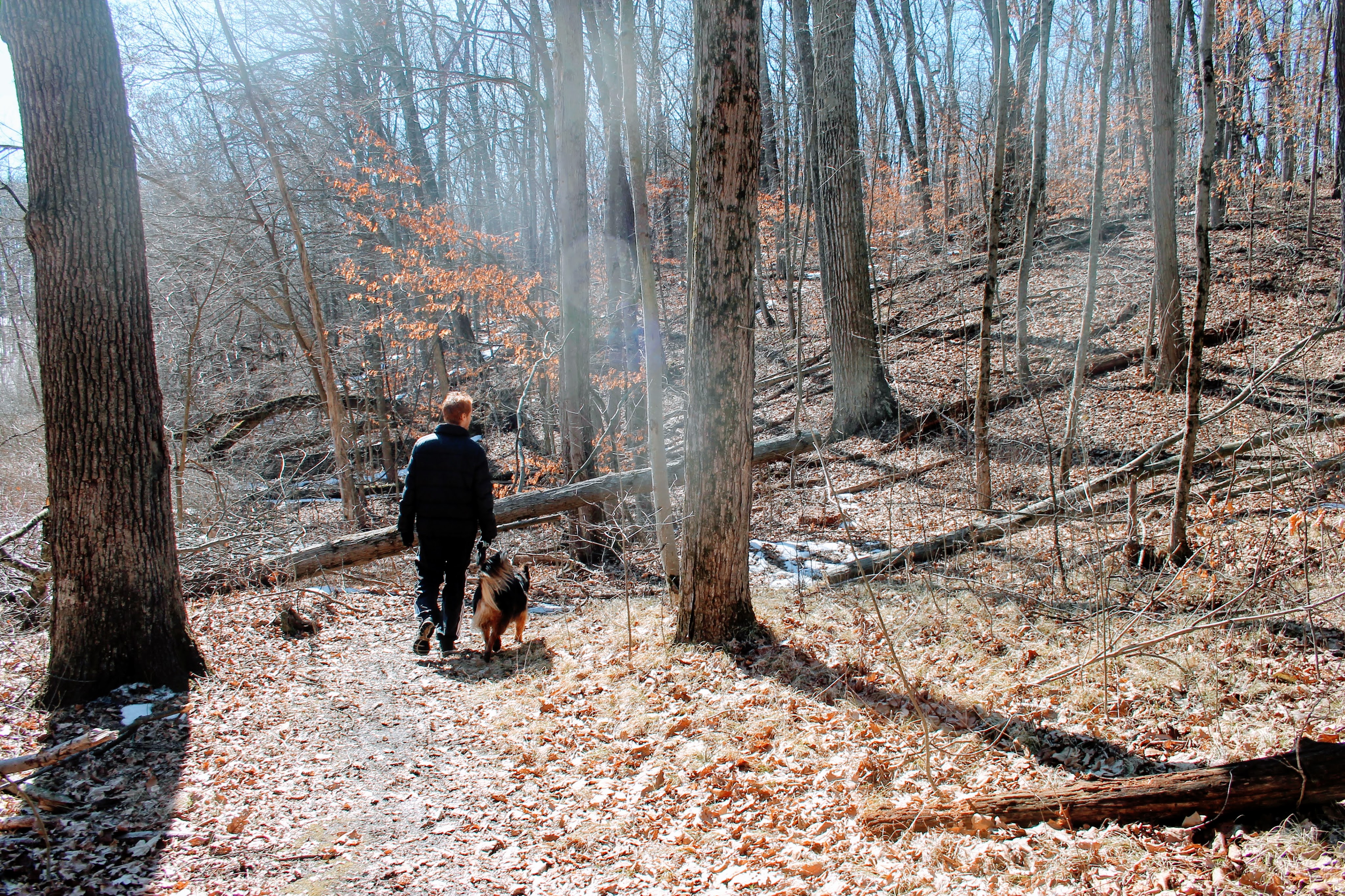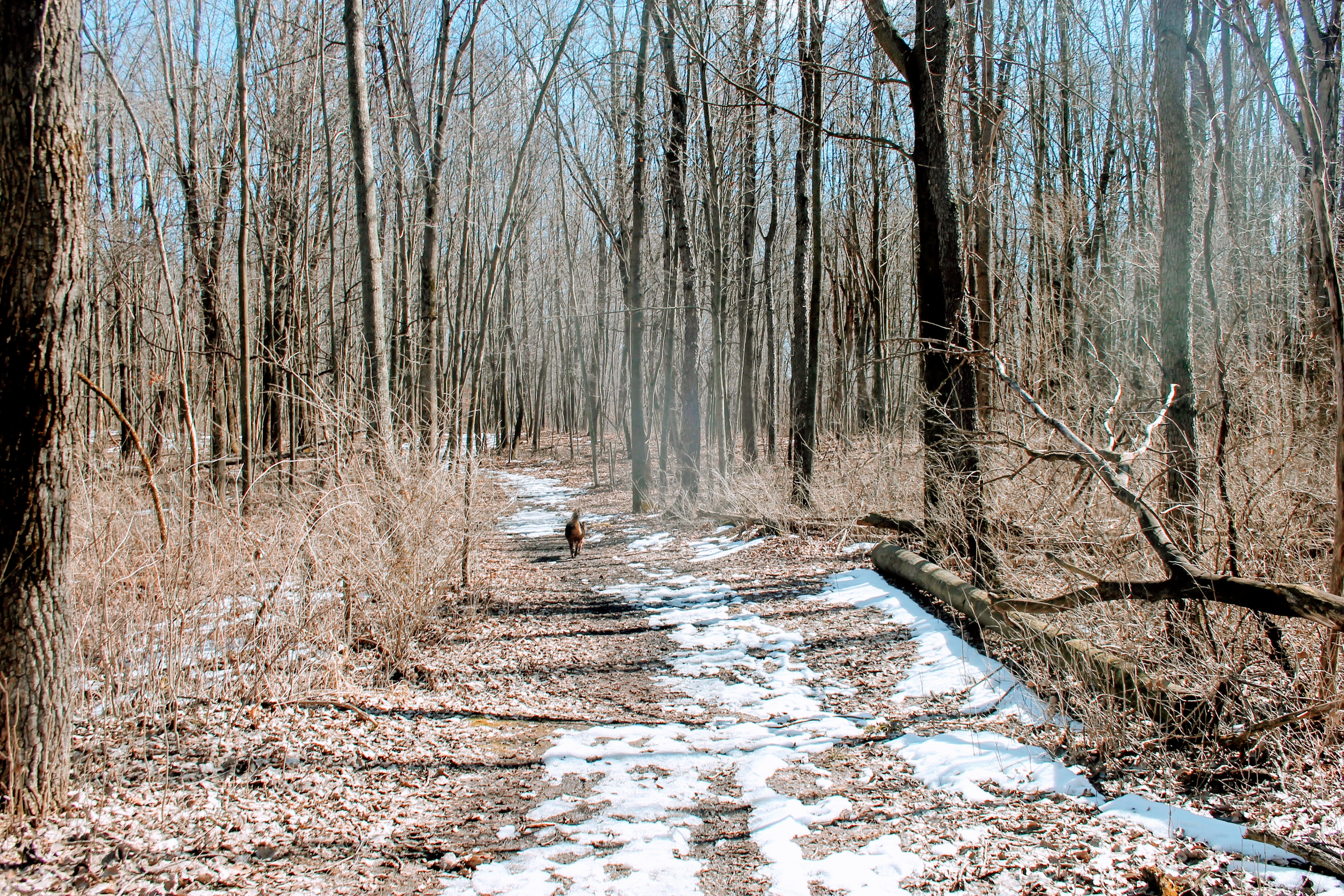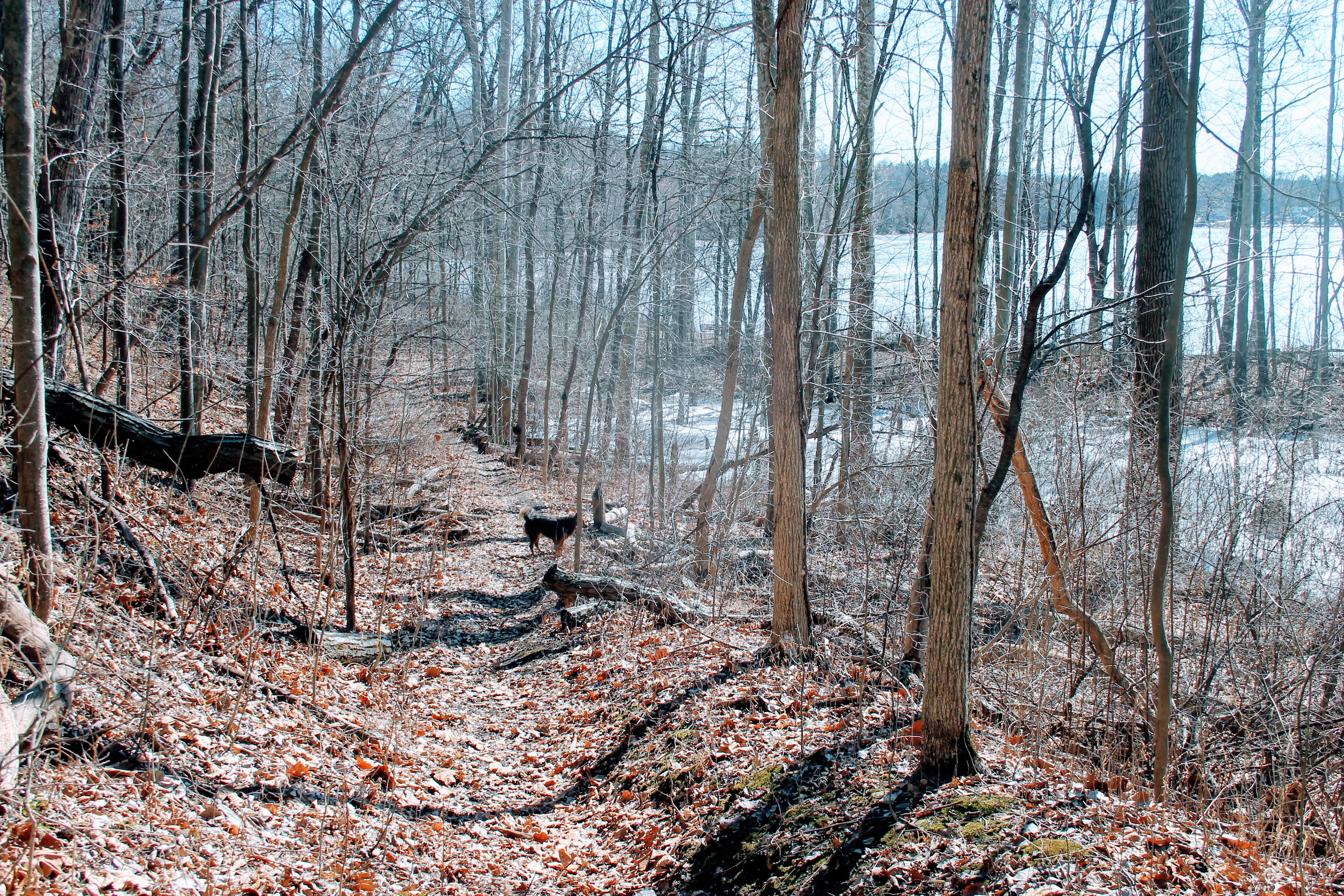 After a few wrong turns, we find the start of Hickory Hills trail. I am instantly happy that we chose to explore this today instead of me returning tomorrow to run it. The shade of the trees means the trail is still mostly ice/snow covered.
