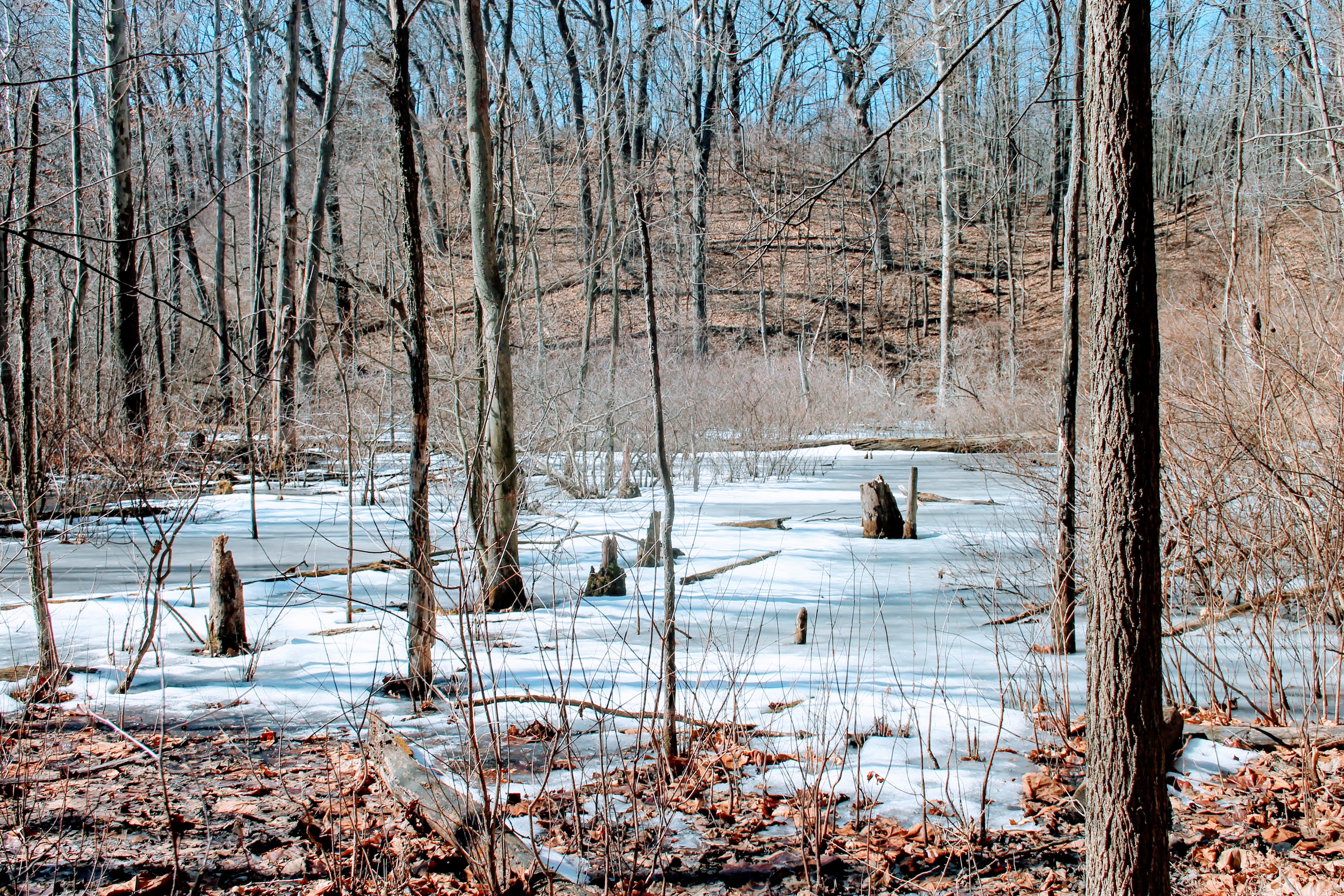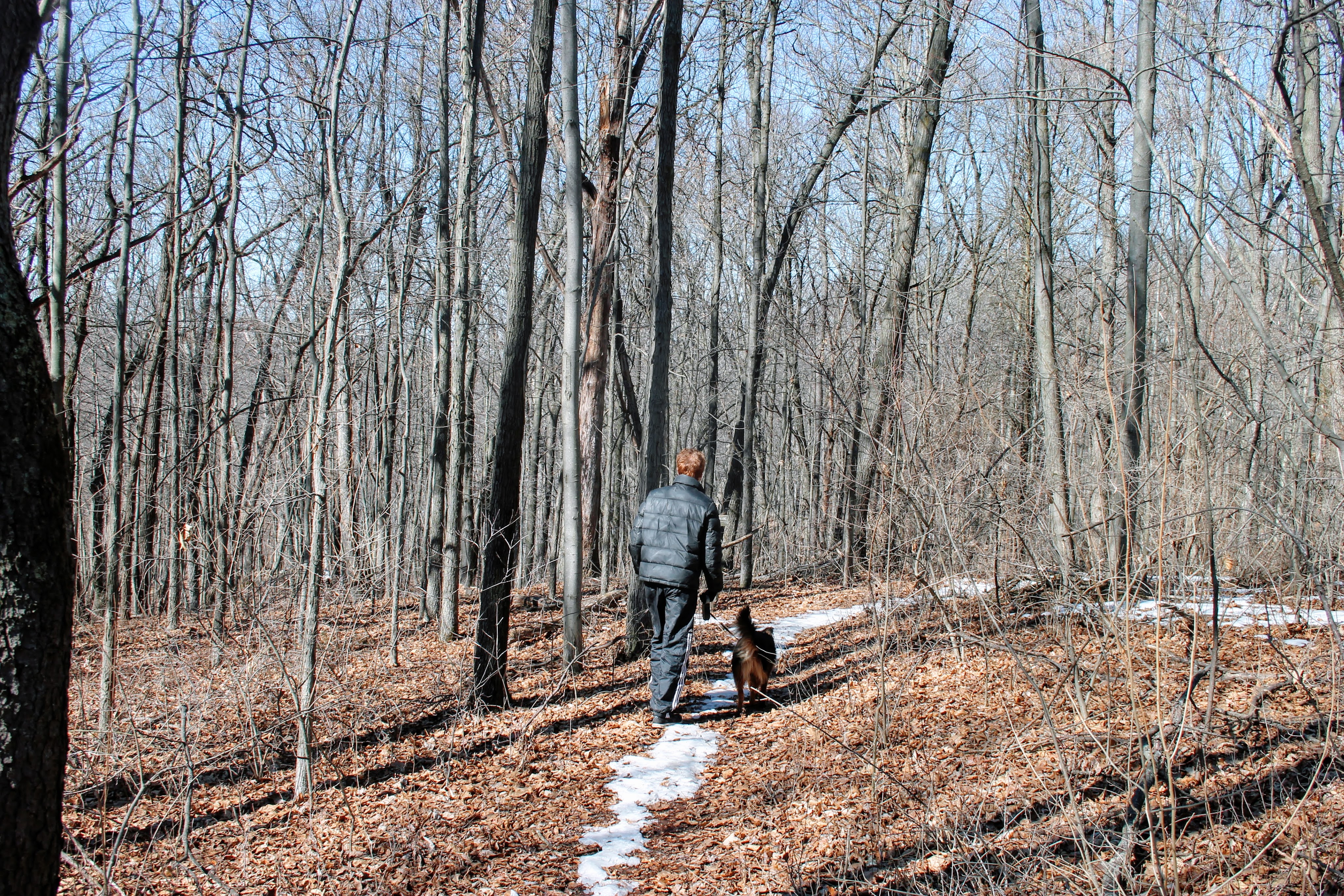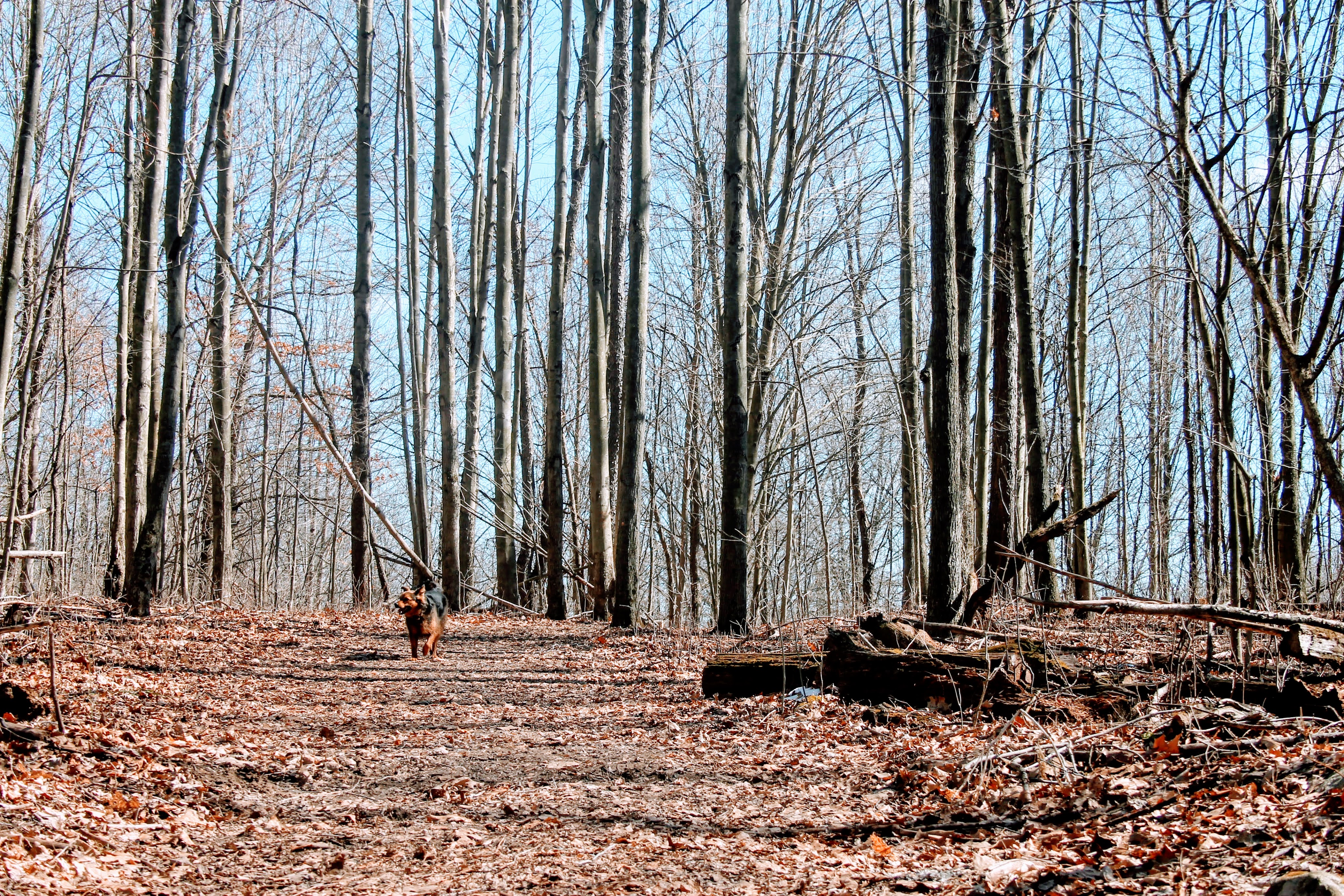 After a few wrong turns, we find the start of Hickory Hills trail. I am instantly happy that we chose to explore this today instead of me returning tomorrow to run it. The shade of the trees means the trail is still mostly ice/snow covered.