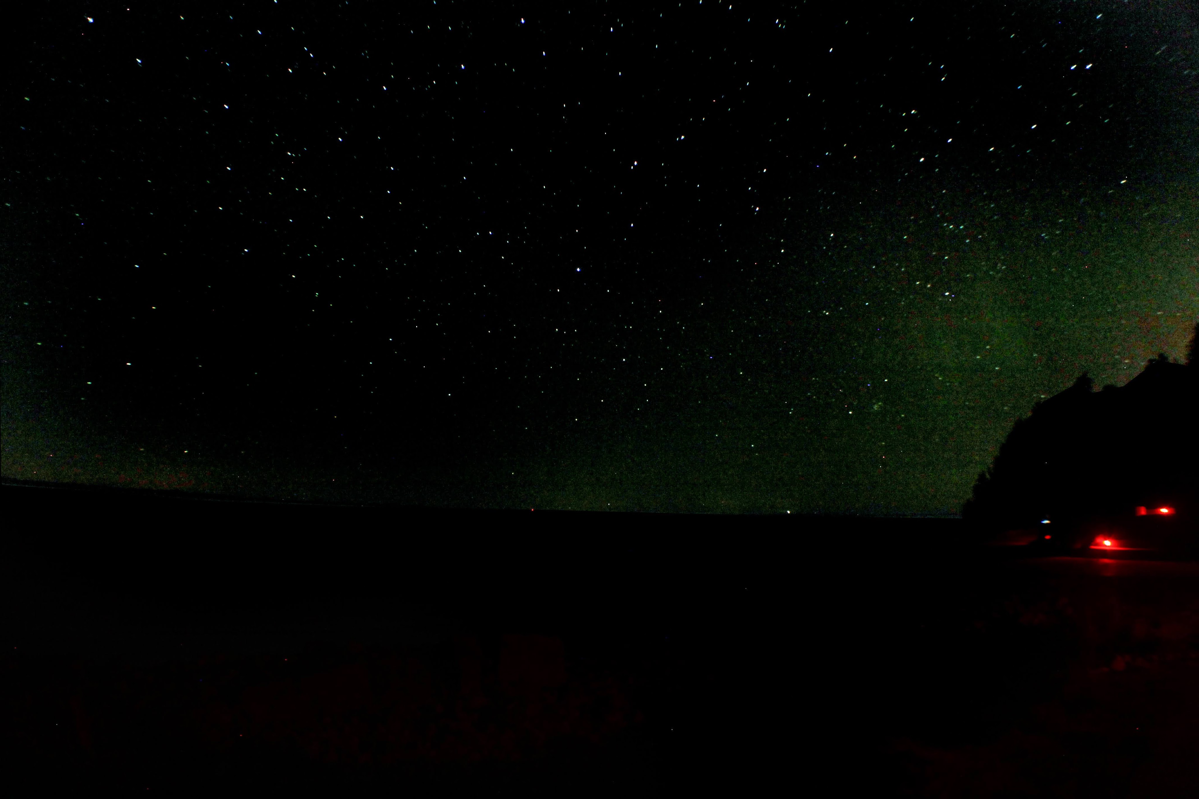 My alarm goes off. I am not a morning person. Even less of a morning person when that morning is still technically the middle of the night. But my aurora tracker says the show will be live in 13 minutes, so there is no time to grumble. I gather my camera, bundle up, and gingerly wake up Gob. He is also not a morning “person”. We head to our predetermined spot and hunker down, waiting for the light show to start. I take a few test shots, working to get the stars in focus. Gob is sick of laying on the cold ground and crawls into my lap. I continue taking pictures, hoping the catch something that I can’t see with the naked eye and figuring worst case scenario I’ll end up with some nice starry skies. An hour passes, and the dancing lady never graces us with her presence. Or at least that’s what I thought.