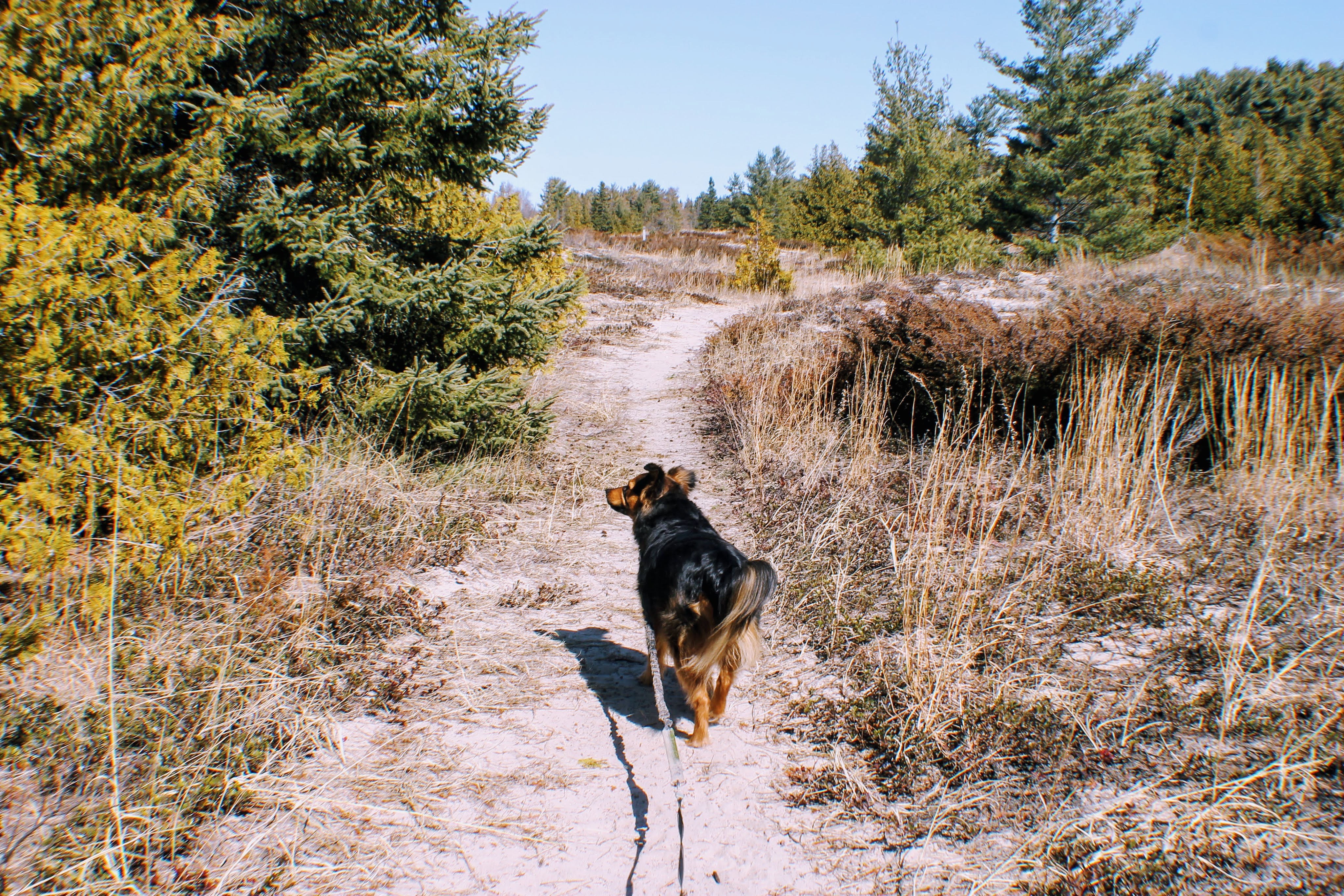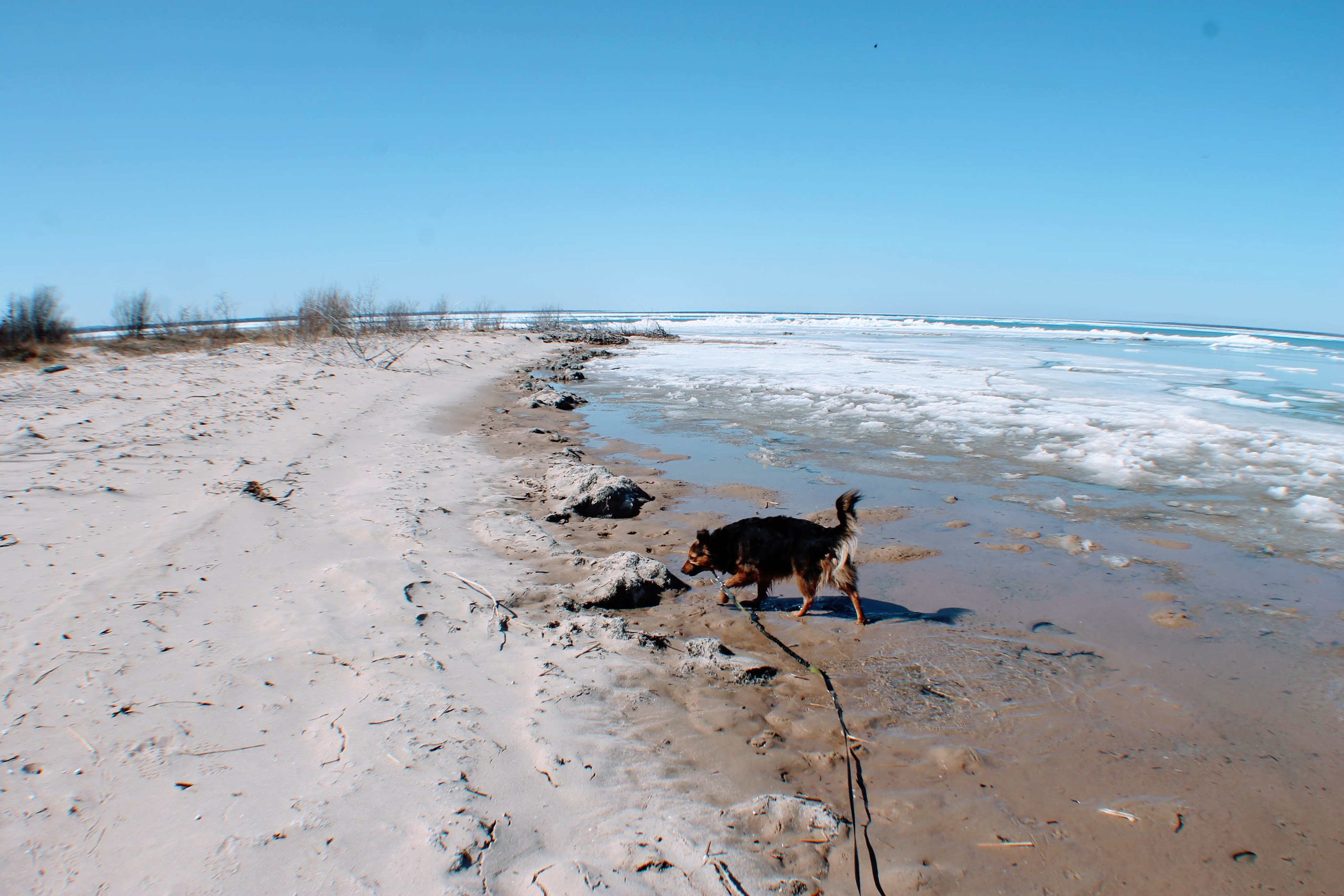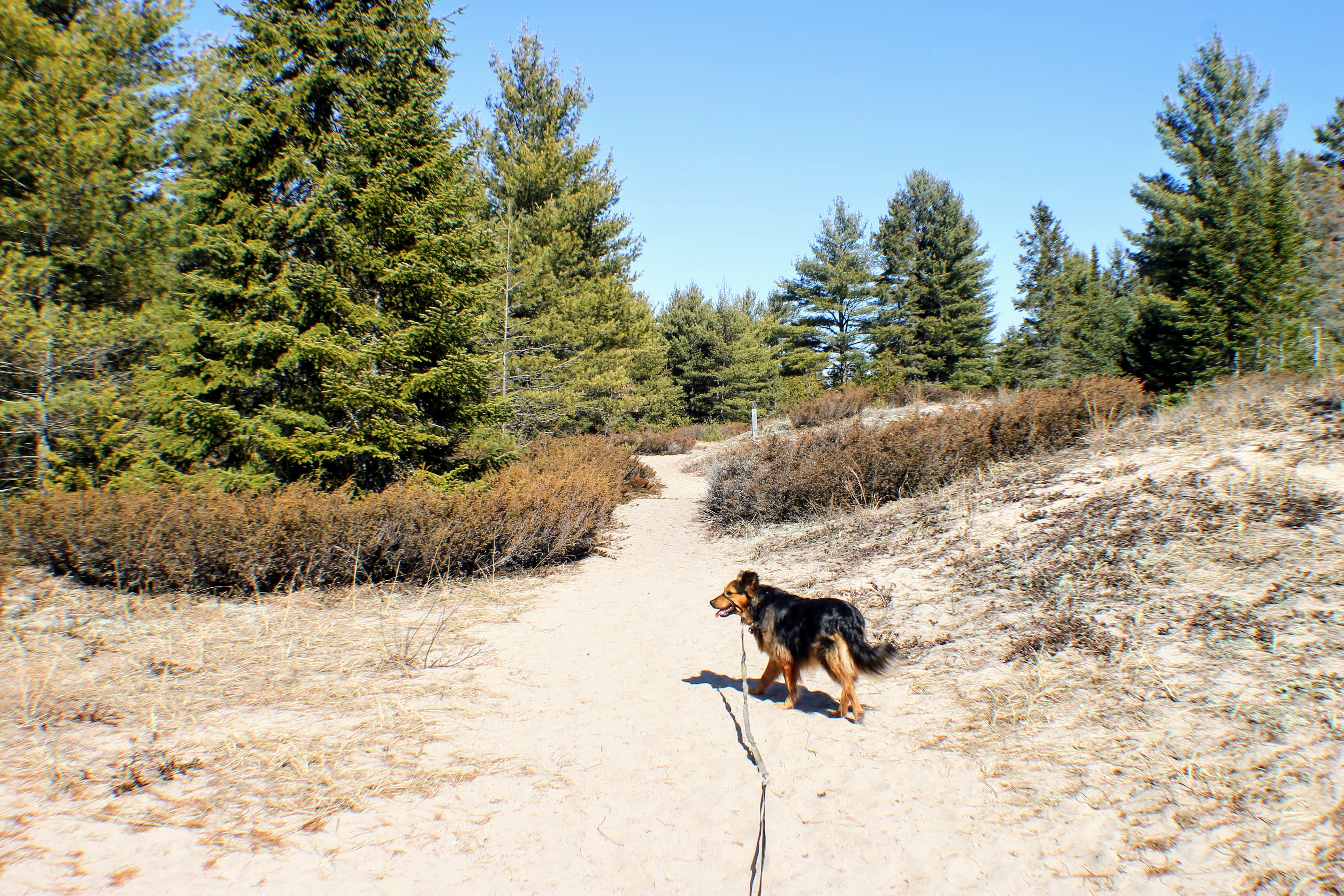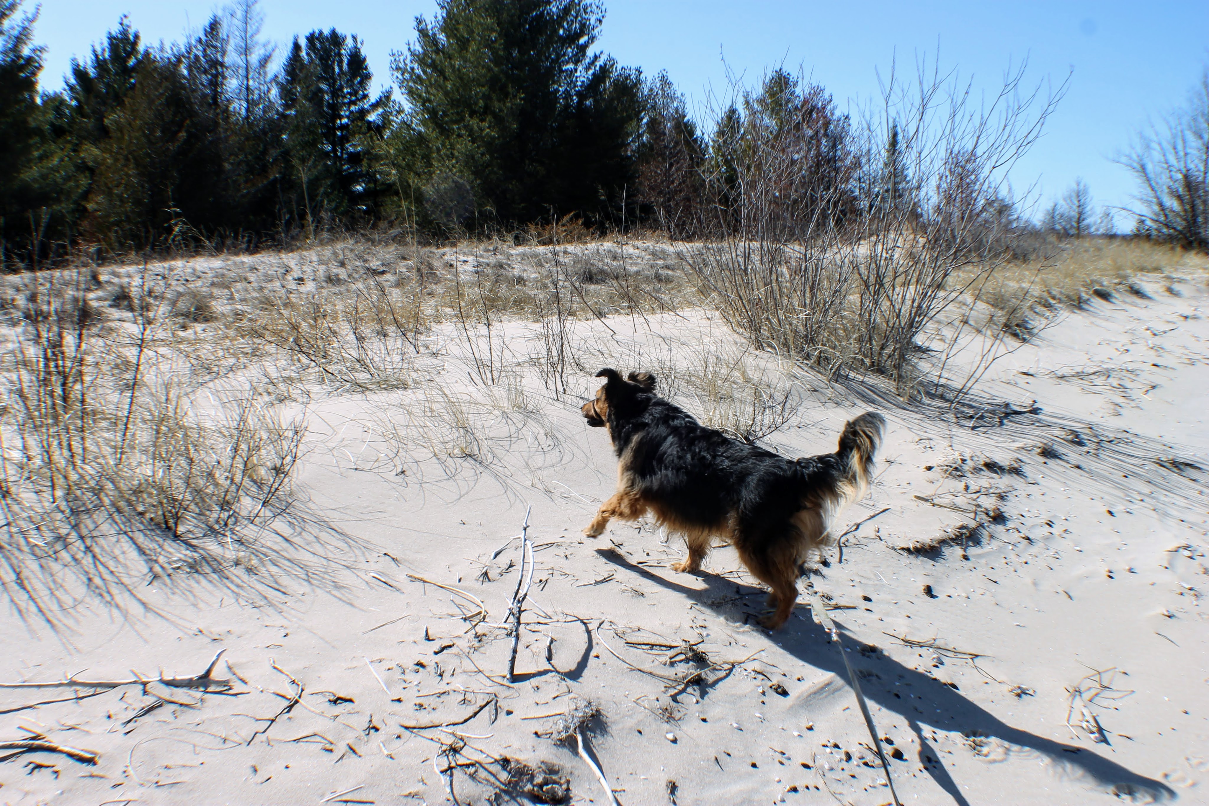 Eventually the beach transitions to the forest. Gob pounces through the tall grass, forever one to stick his nose where it doesn’t belong. Tall grass gives way to taller trees. The sandy trail turns back to snow. As we arrive back at the car, my once energetic dog has had enough. I open the van door and tell him to get in. He lifts one paw up, then looks to me with pleading eyes. I lift him the rest of the way and promise this is the last hike of the trip. In an instant, he is asleep.