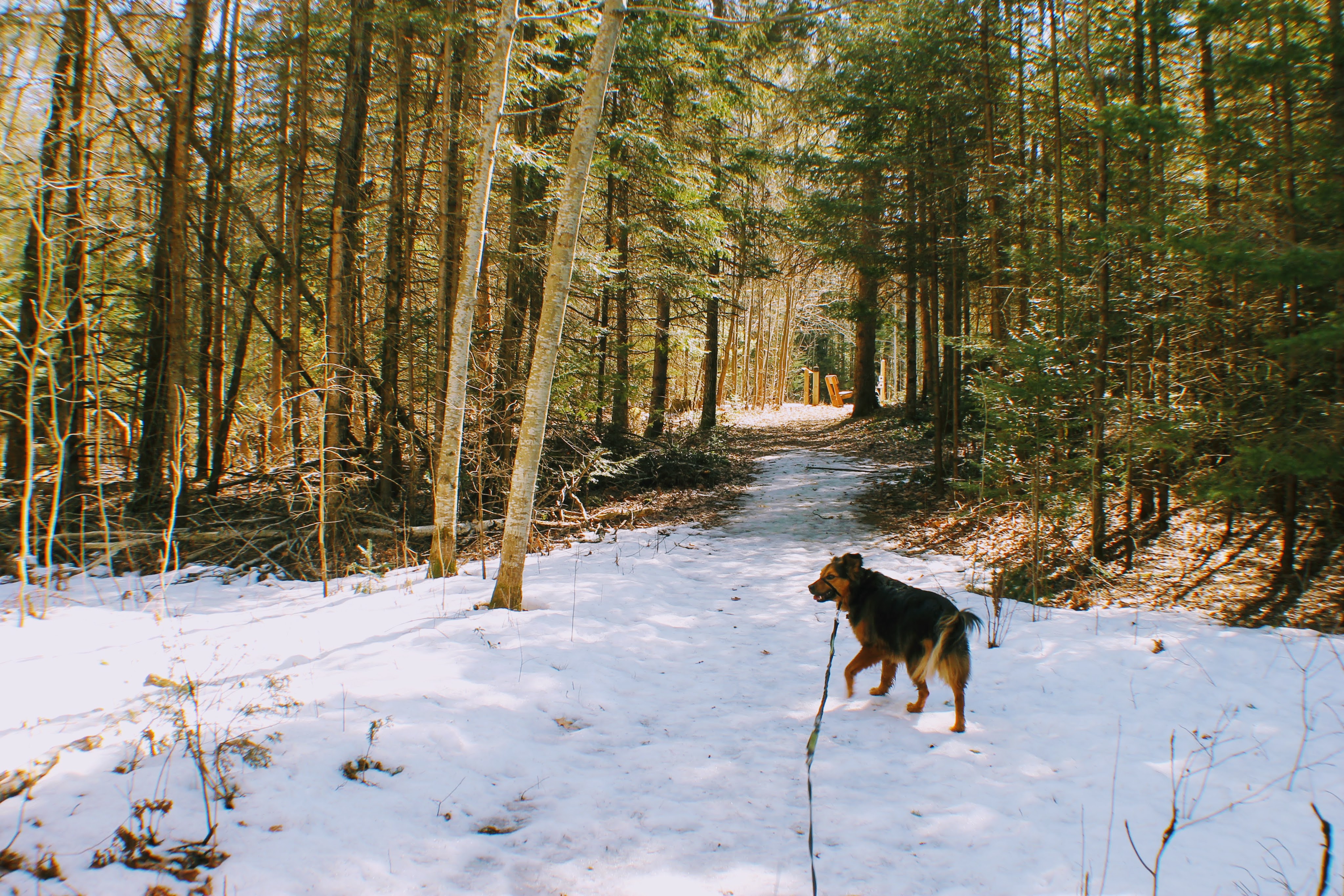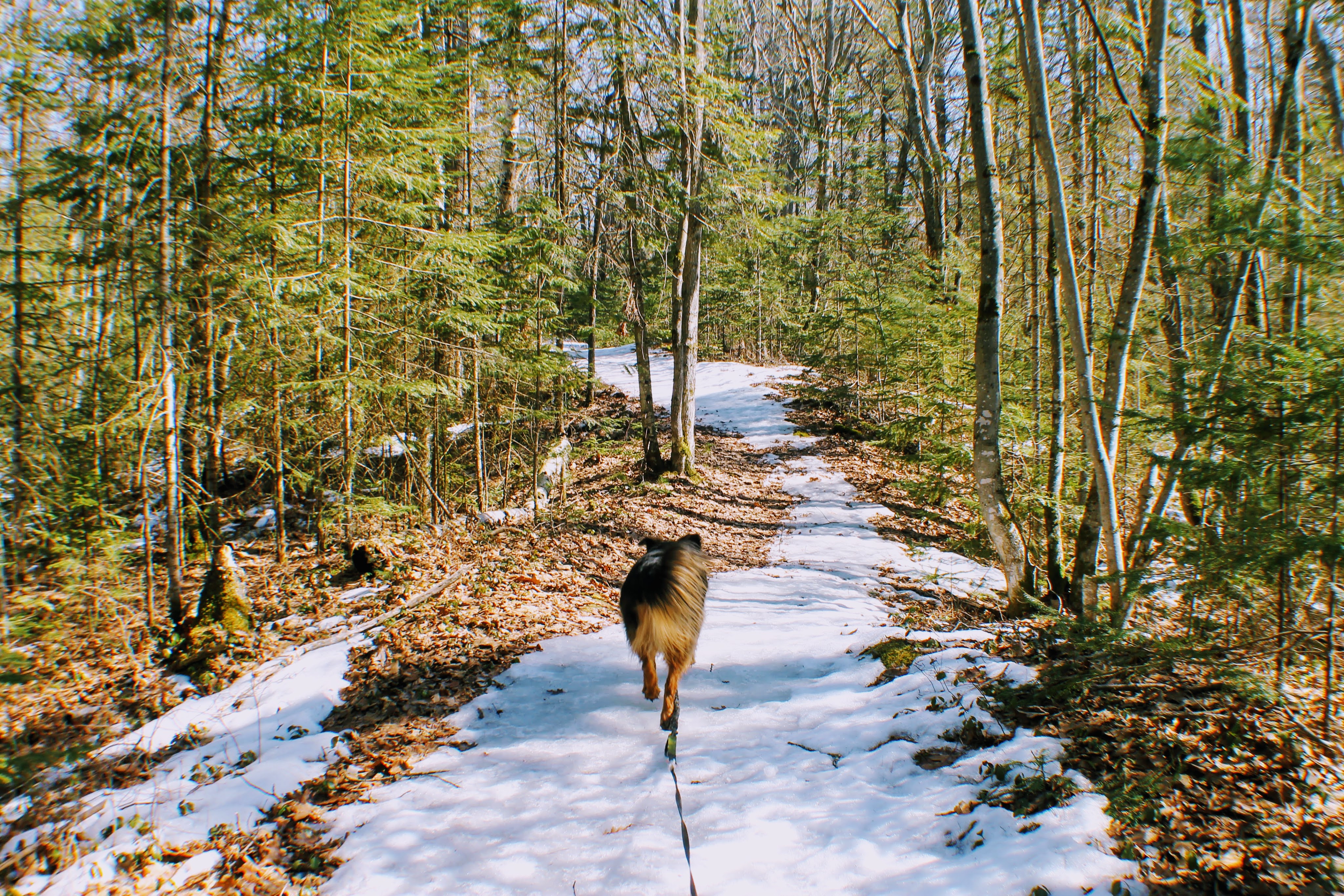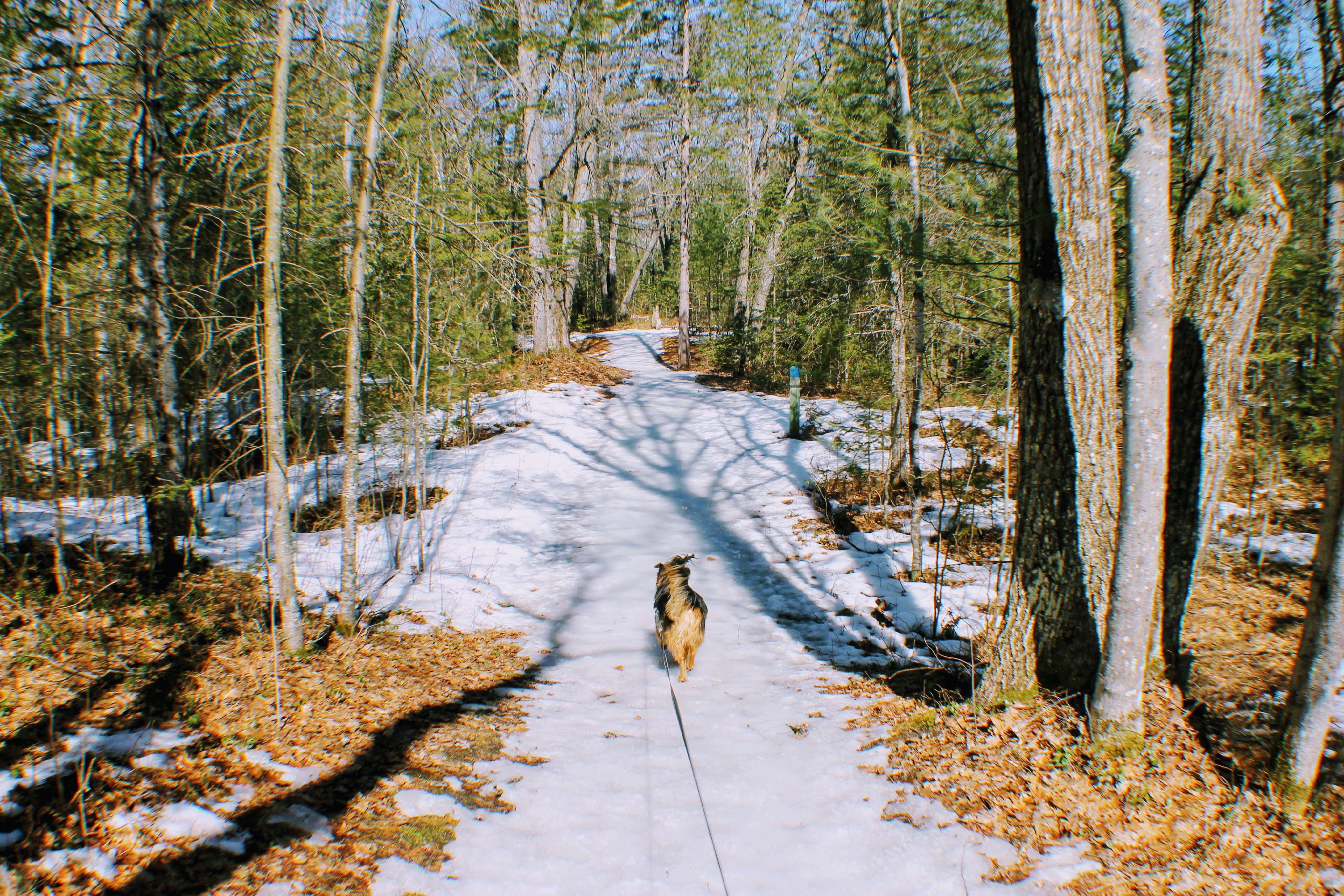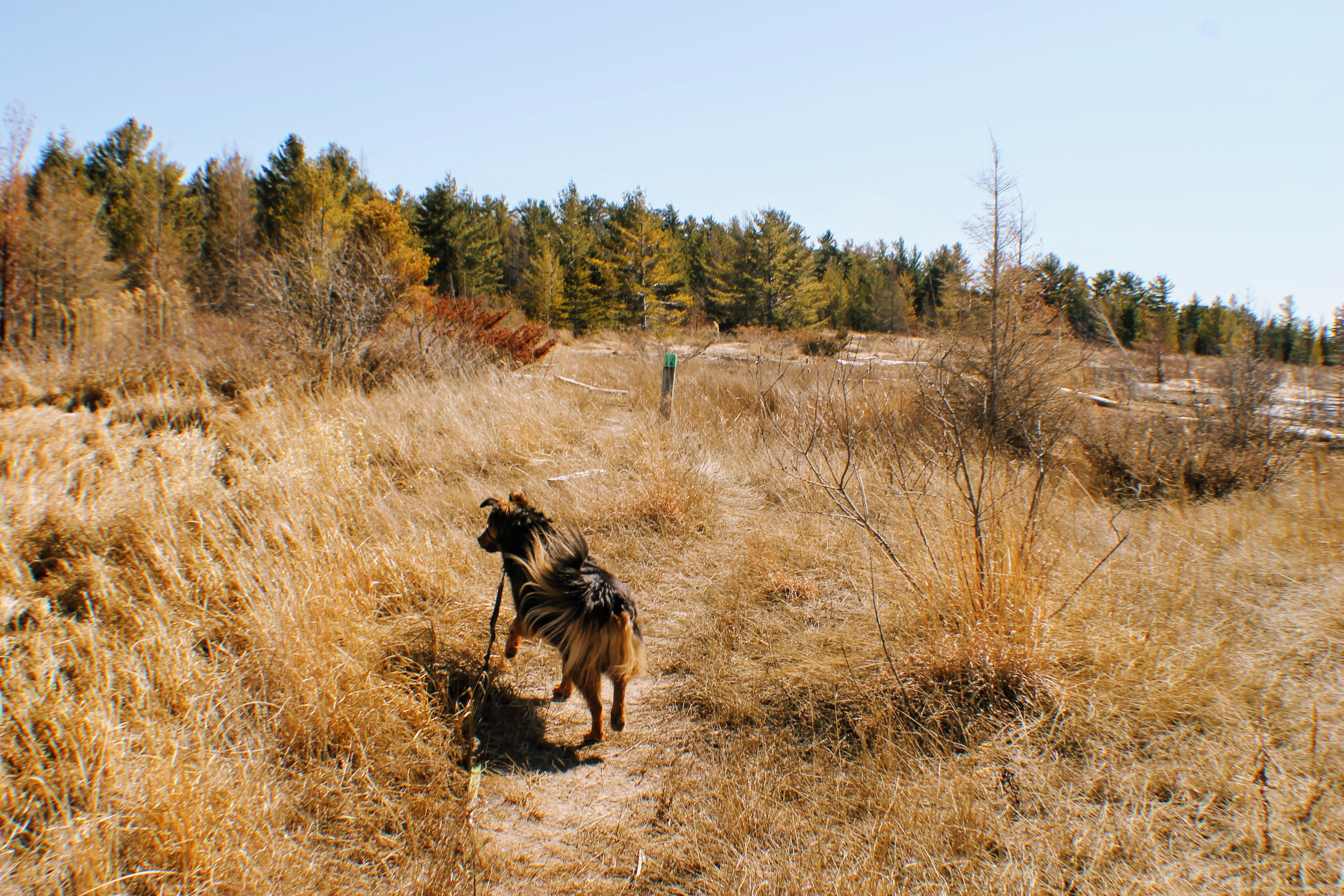 Eventually the beach transitions to the forest. Gob pounces through the tall grass, forever one to stick his nose where it doesn’t belong. Tall grass gives way to taller trees. The sandy trail turns back to snow. As we arrive back at the car, my once energetic dog has had enough. I open the van door and tell him to get in. He lifts one paw up, then looks to me with pleading eyes. I lift him the rest of the way and promise this is the last hike of the trip. In an instant, he is asleep.