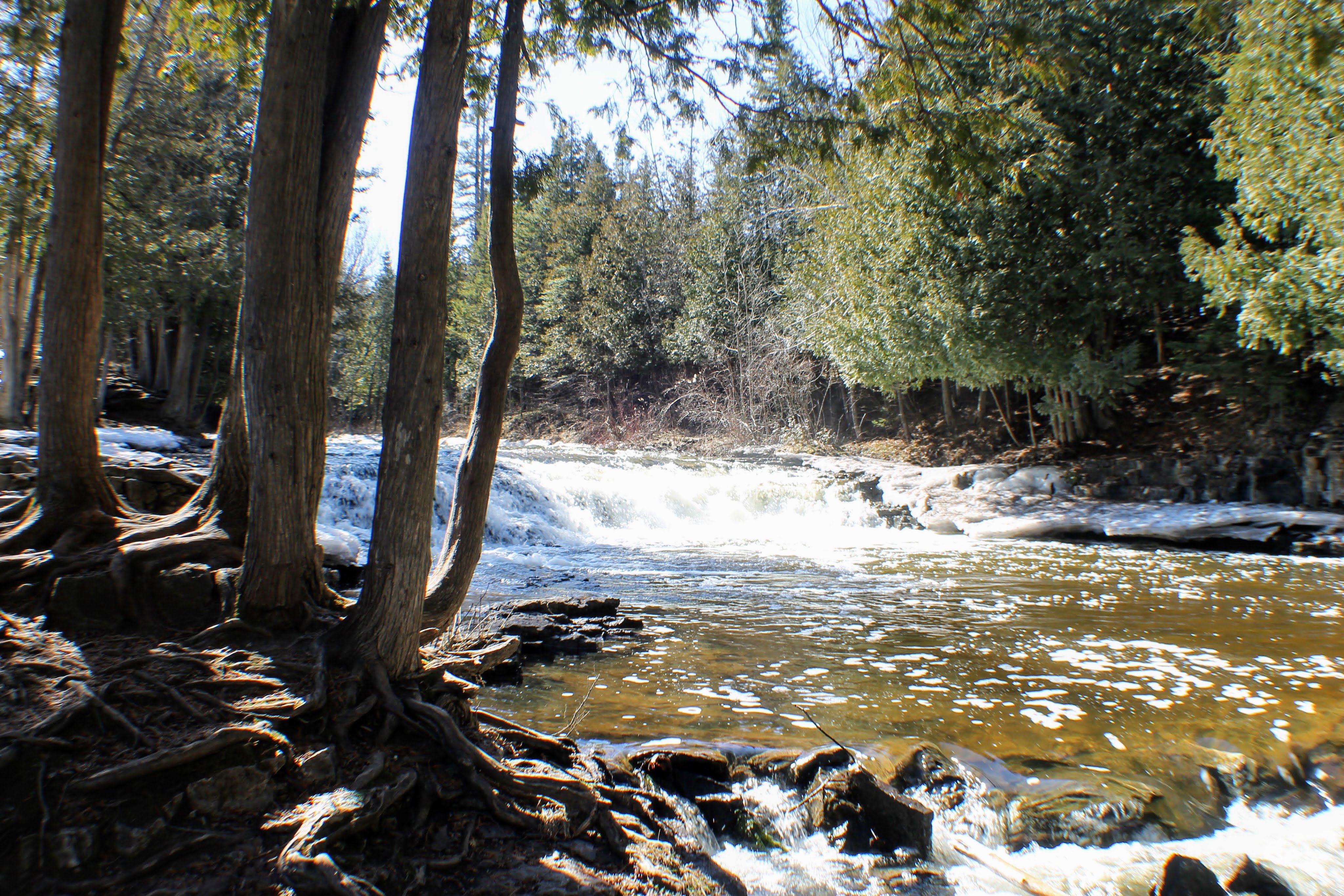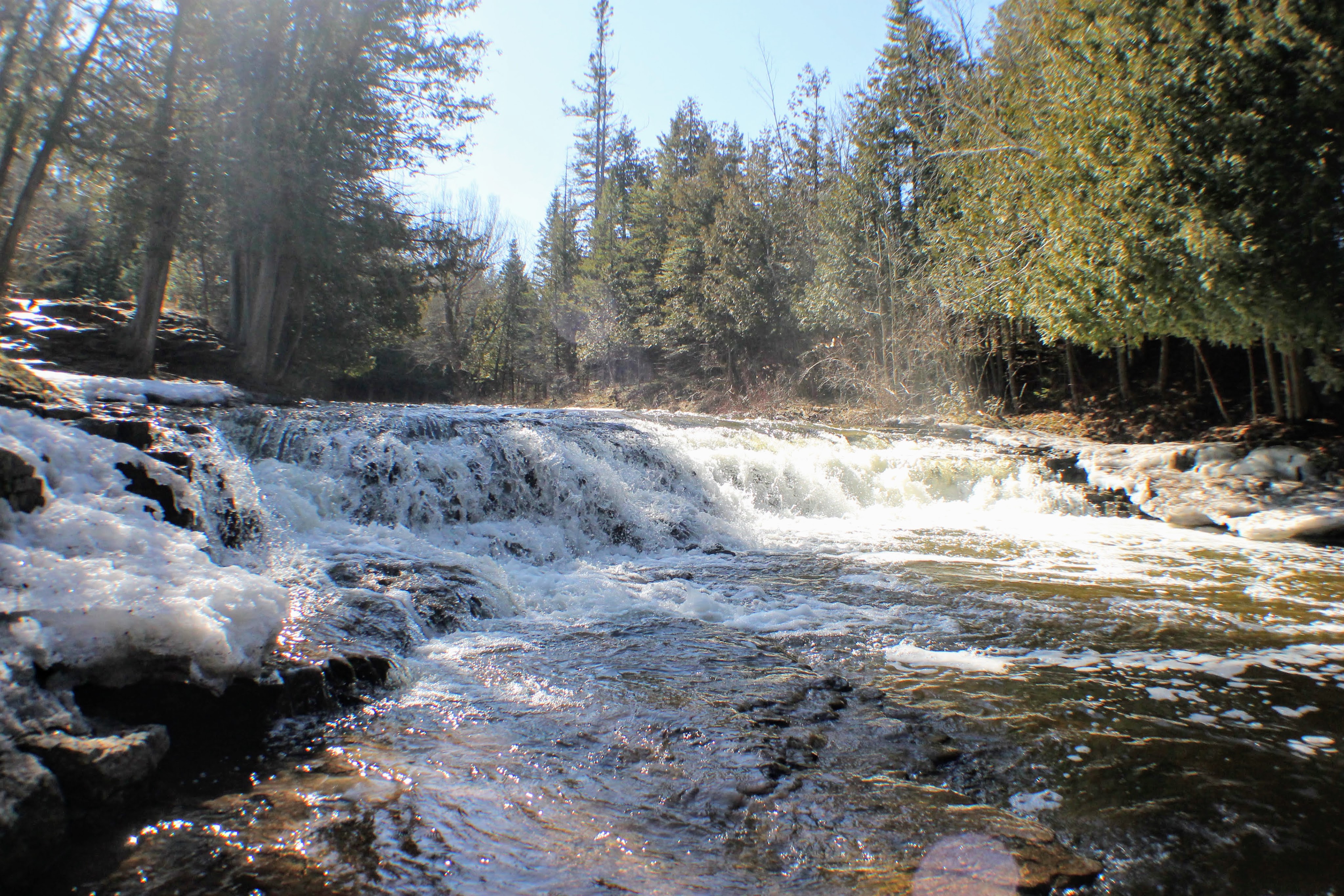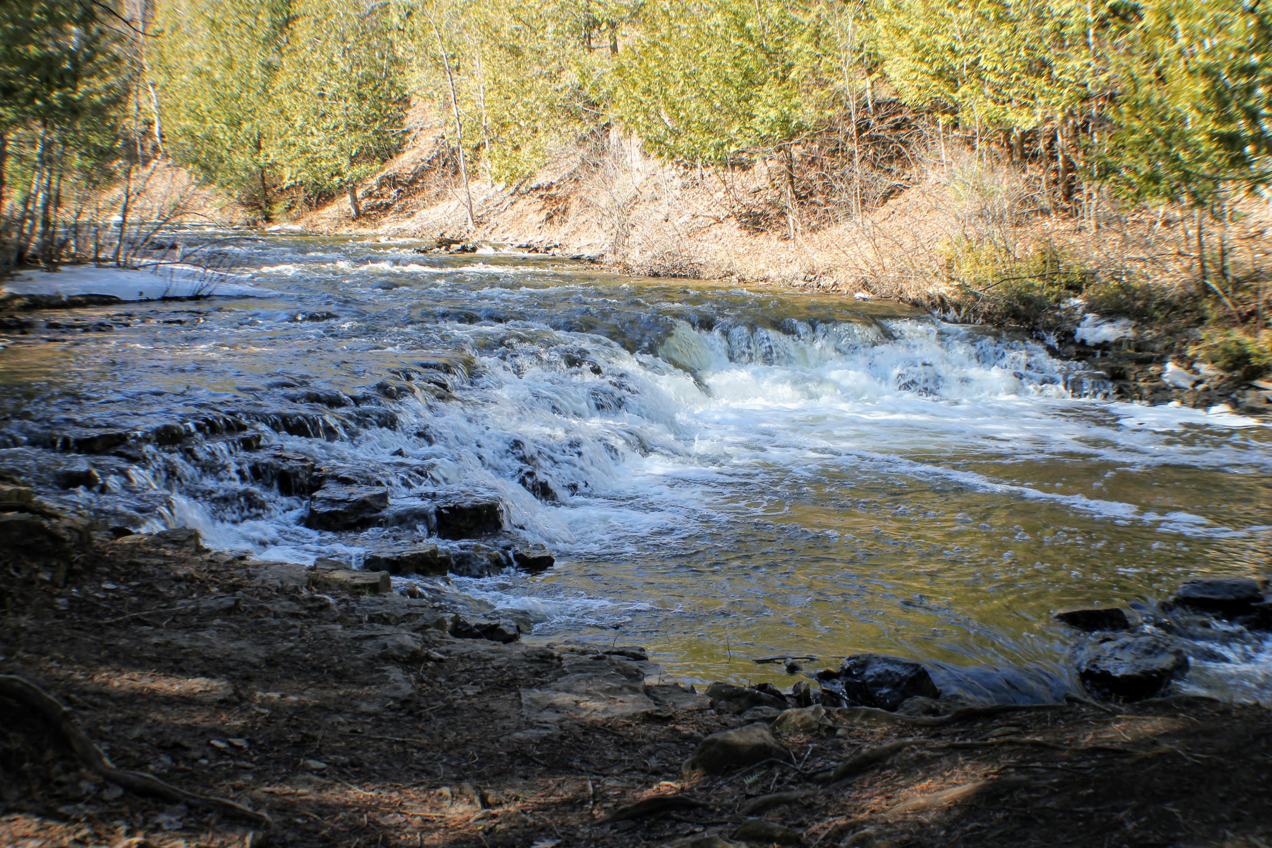 A short distance from Onaway is a promised waterfall. A majestic waterfall. The biggest in the lower peninsula. The next scheduled stop on my itinerary. We get to the parking lot and are dismayed to find it full of cars. Gob starts barking in protest.