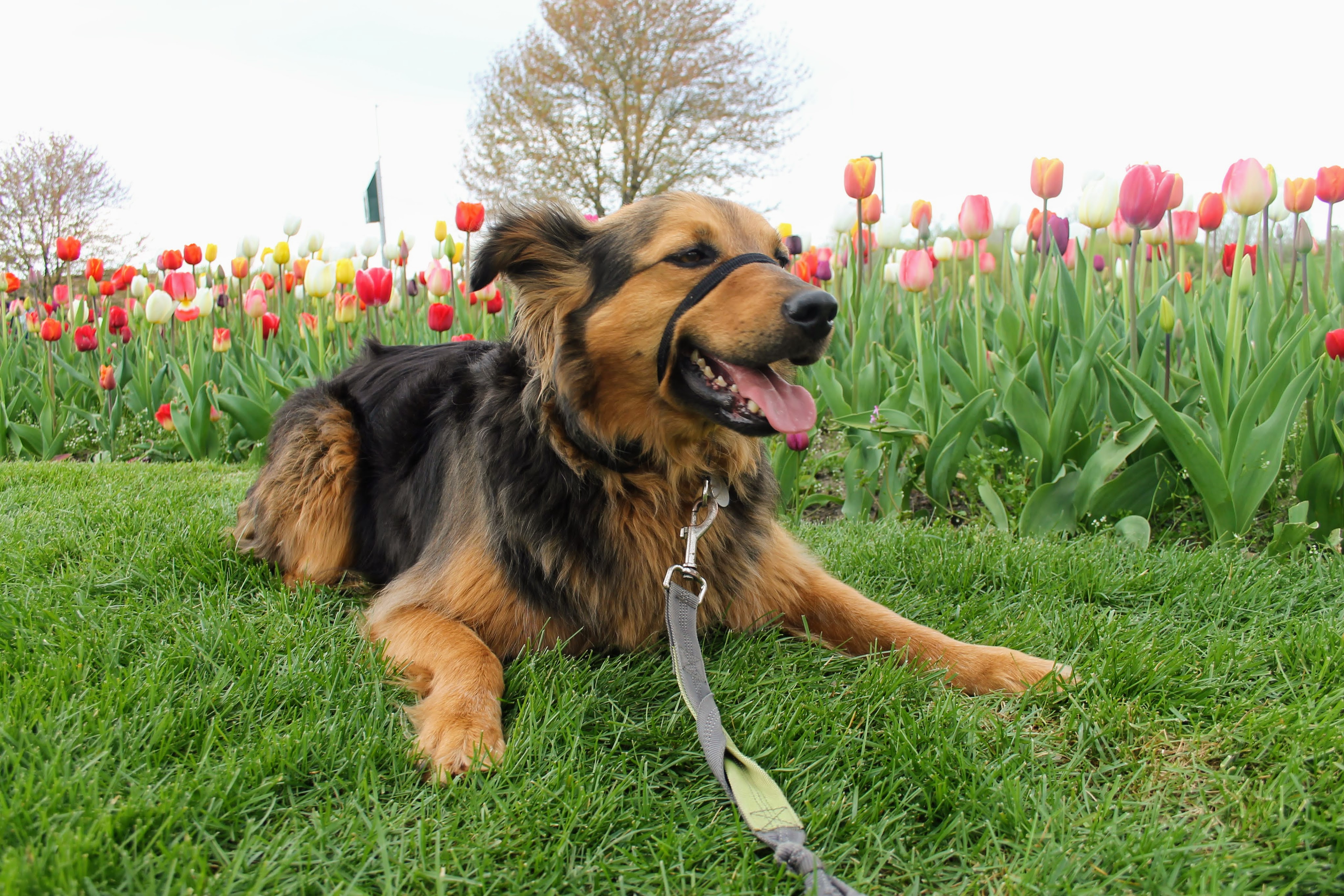 After the rugged adventurous trails of Saugatuck Dunes, Gob was more than a little miffed to be prancing amongst the tulips.