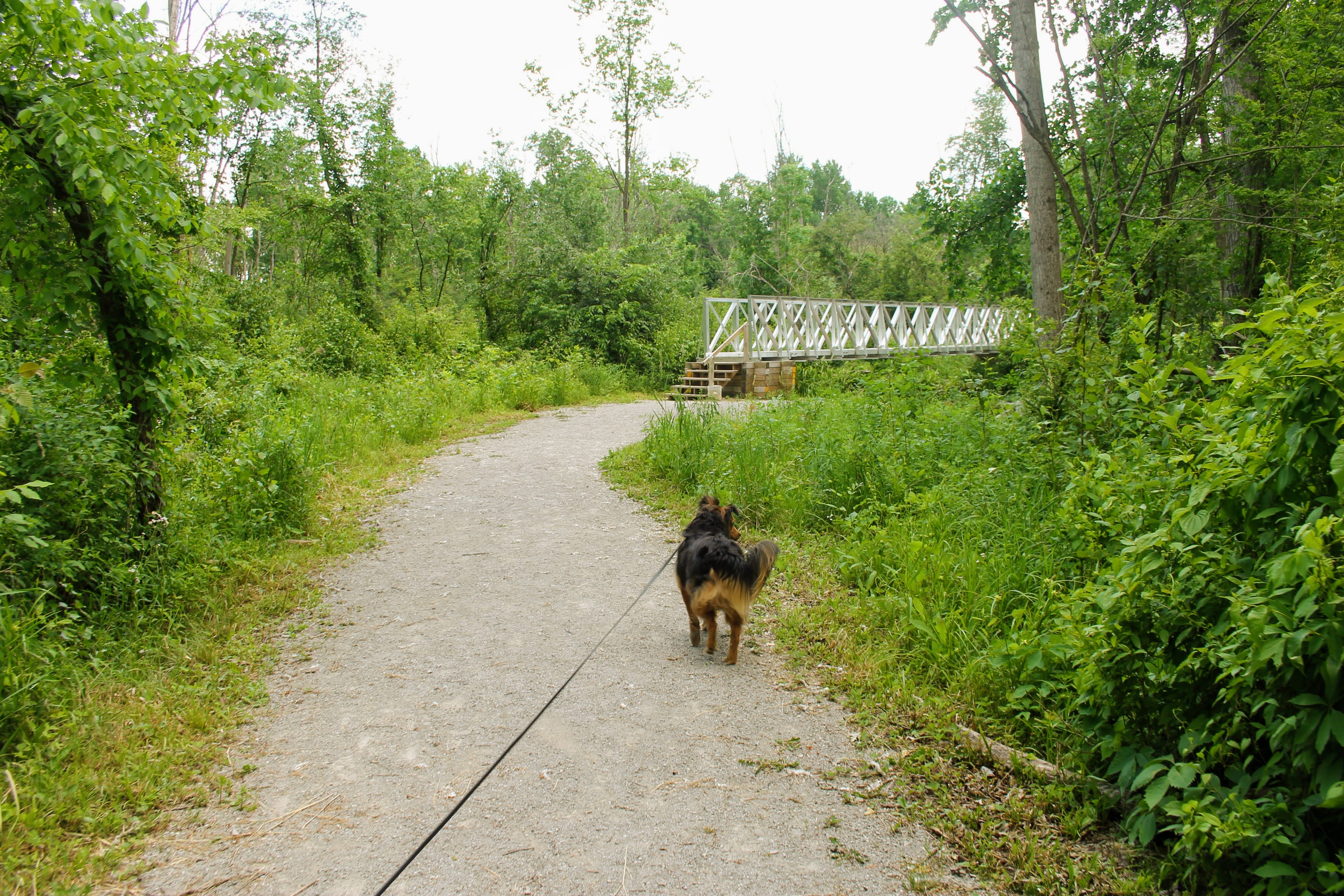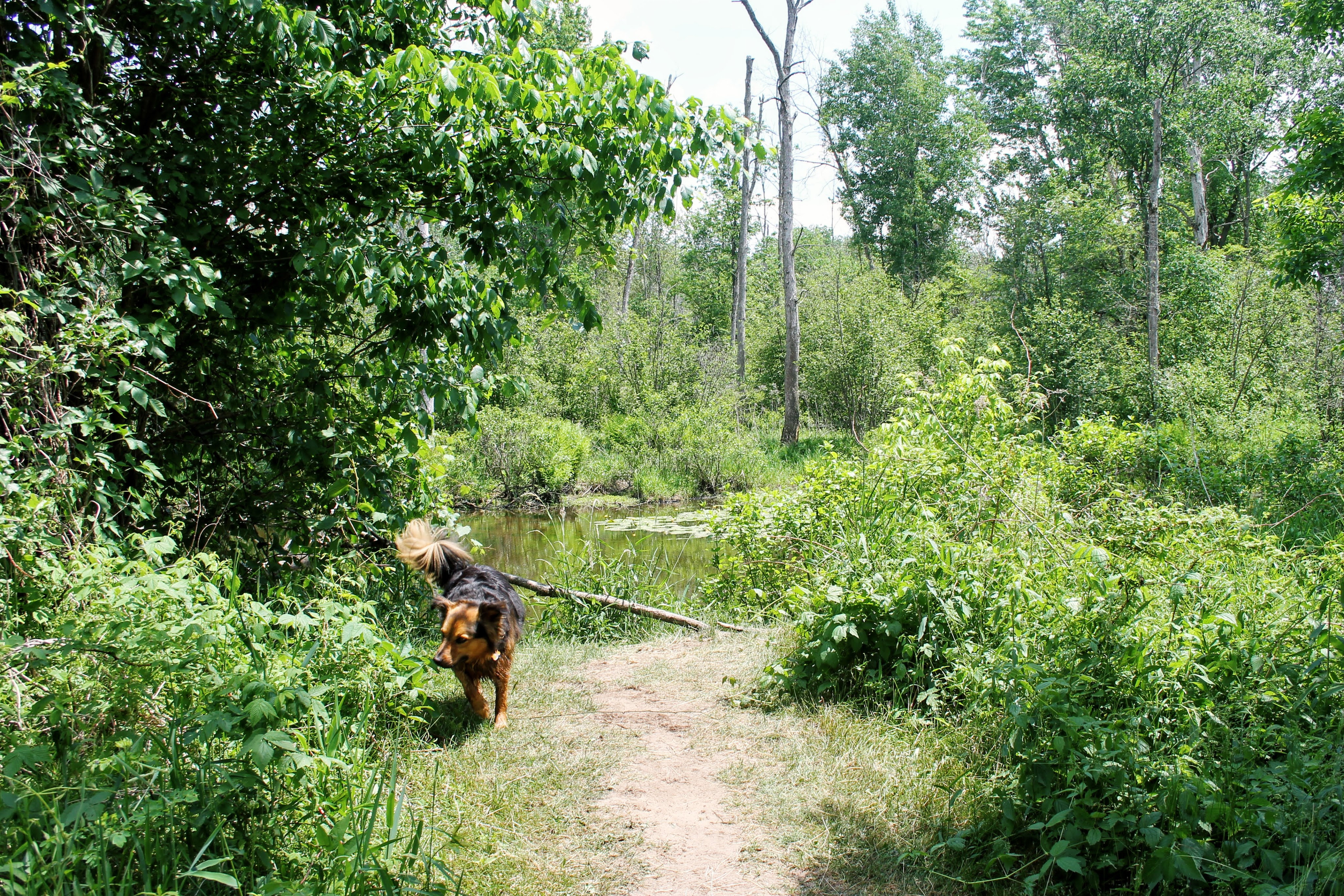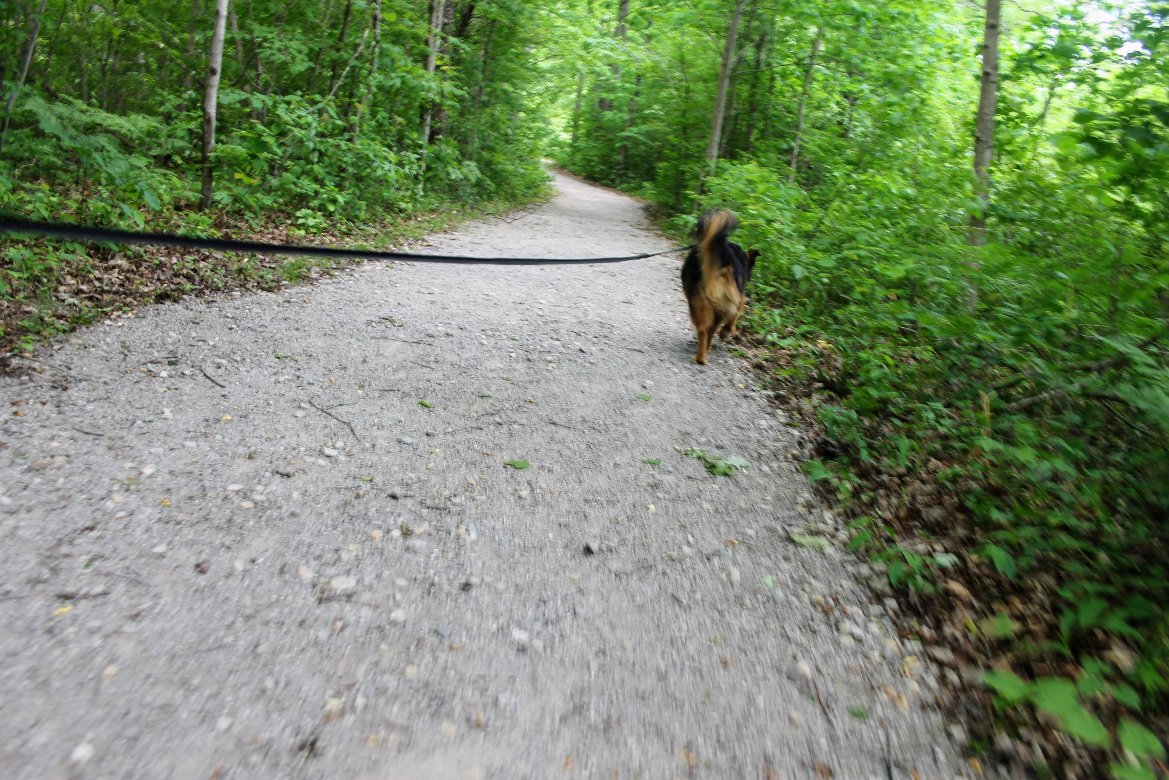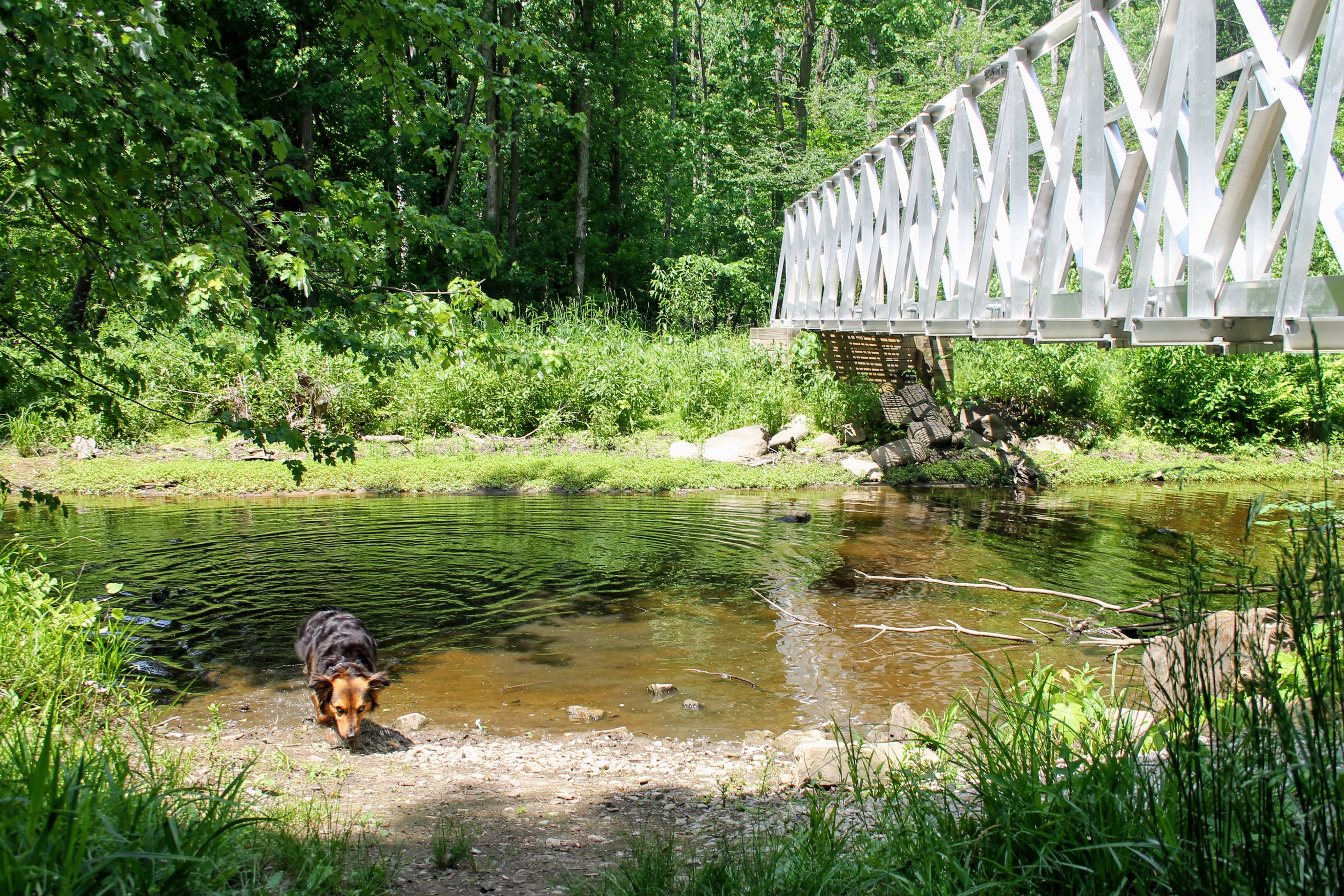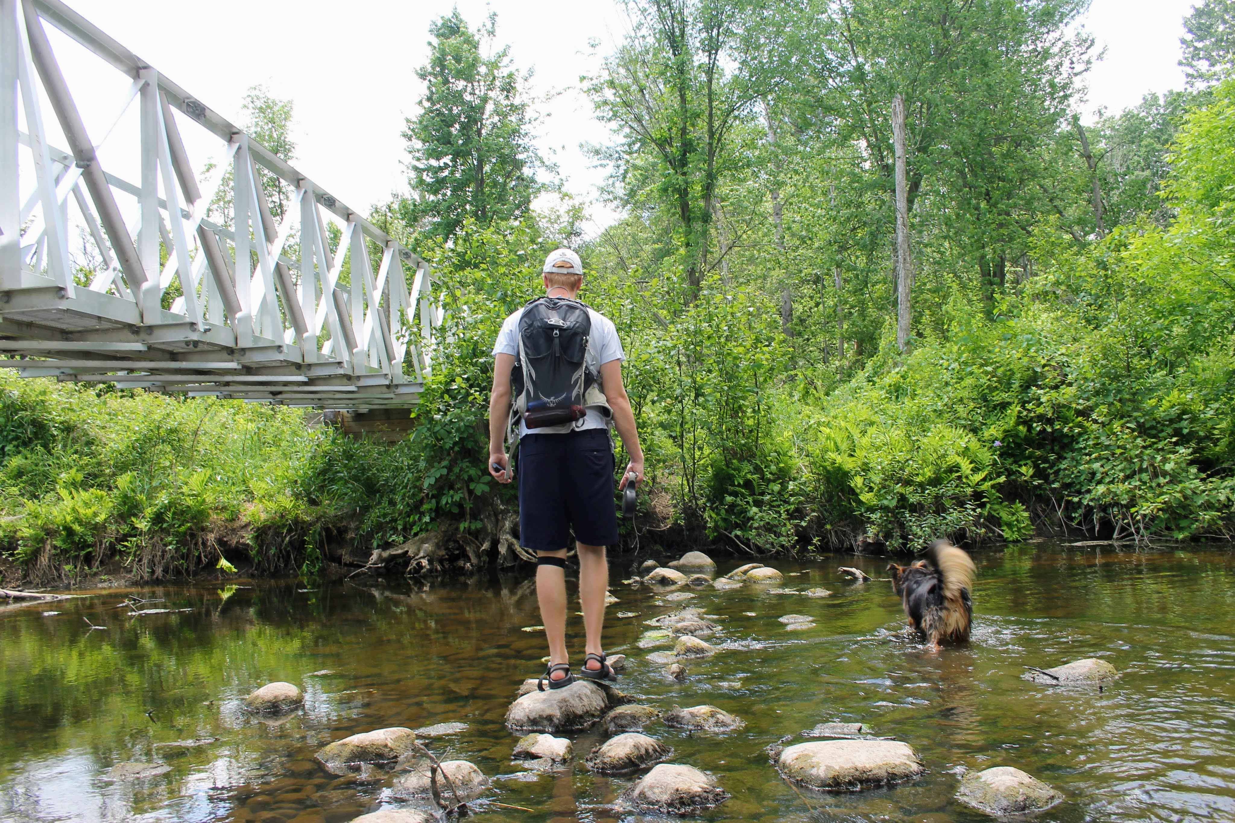 “You’ll take a bridge over the Cass River in two places,” Quick glance at Gob “This one’s gonna wanna jump in.” We expected him to tell us not to let him. But with that, he just continued up the trail. We eventually get to the first bridge. He was right about Gob. I can’t believe he didn’t warn me about Mason though.