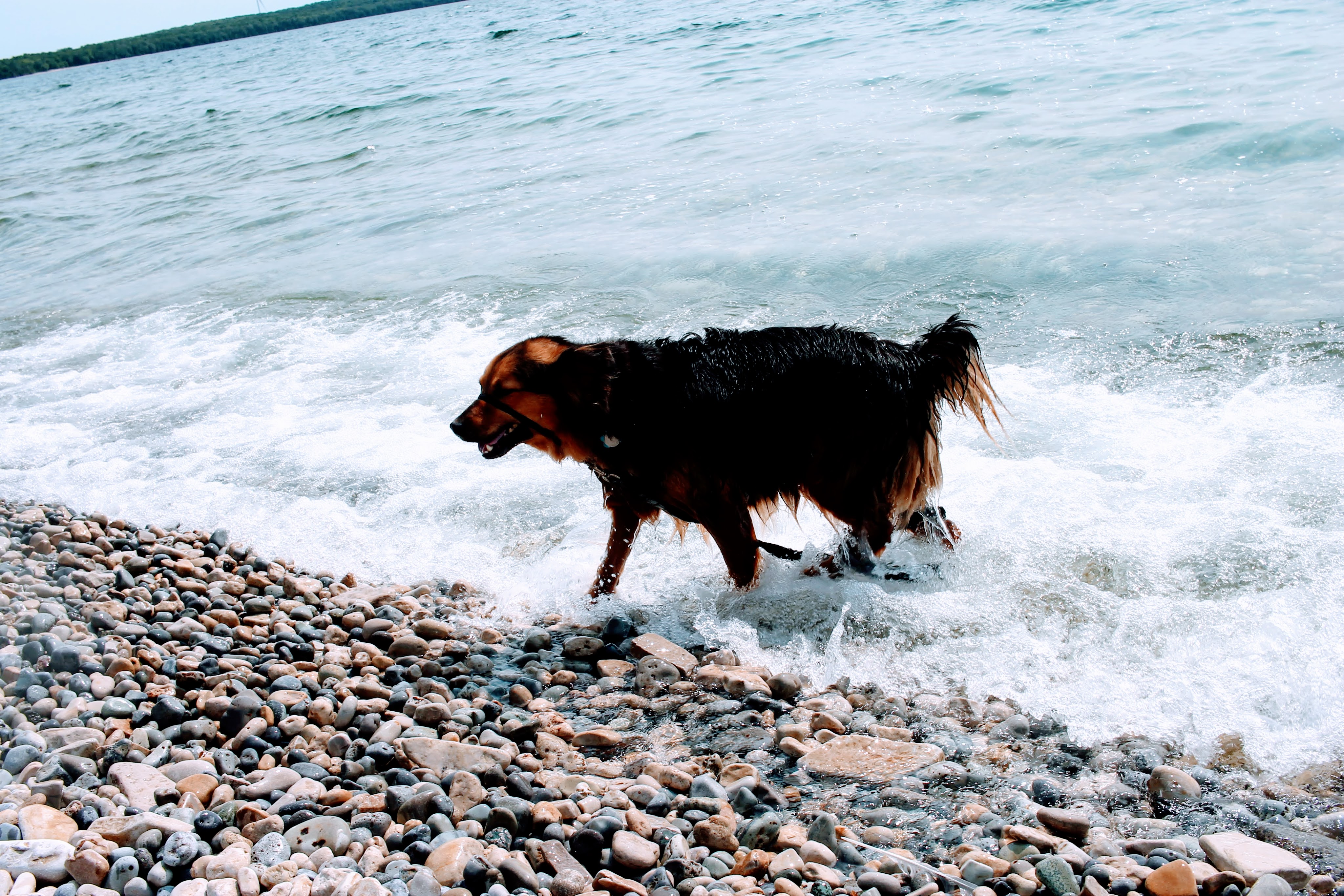 We began on an overlook trail skirting the edge of a cliff overlooking the Big Bay de Noc. Gob could hear the water and smell the water, and he did not like that he could not touch the water.
