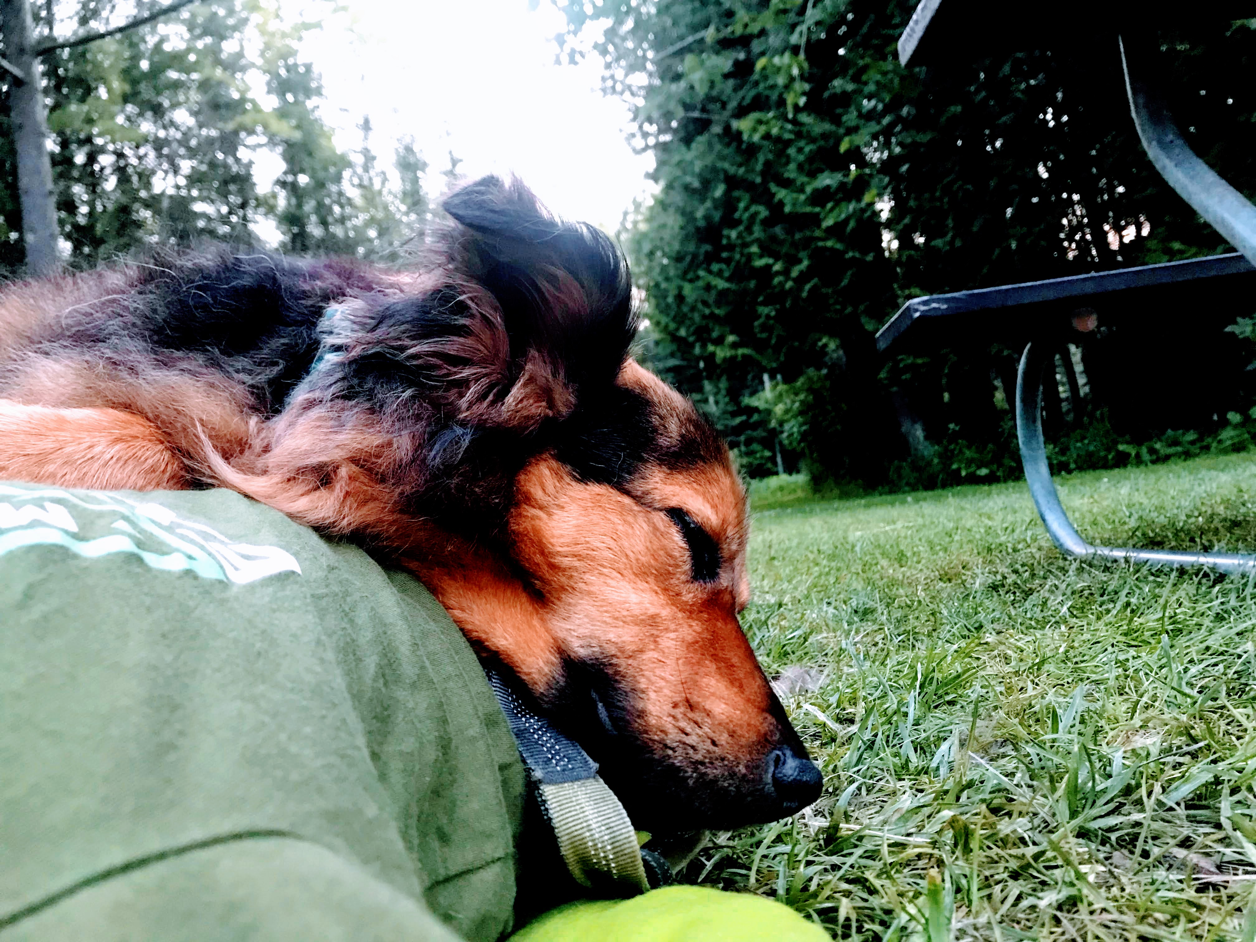 Back at the campsite, Gob is mad that I locked him in the car. He eventually forgives me and falls asleep by the fire. Friends arrive. I try to hold conversation, but am soon too tired to function and we all retire to our respective cars to sleep.
