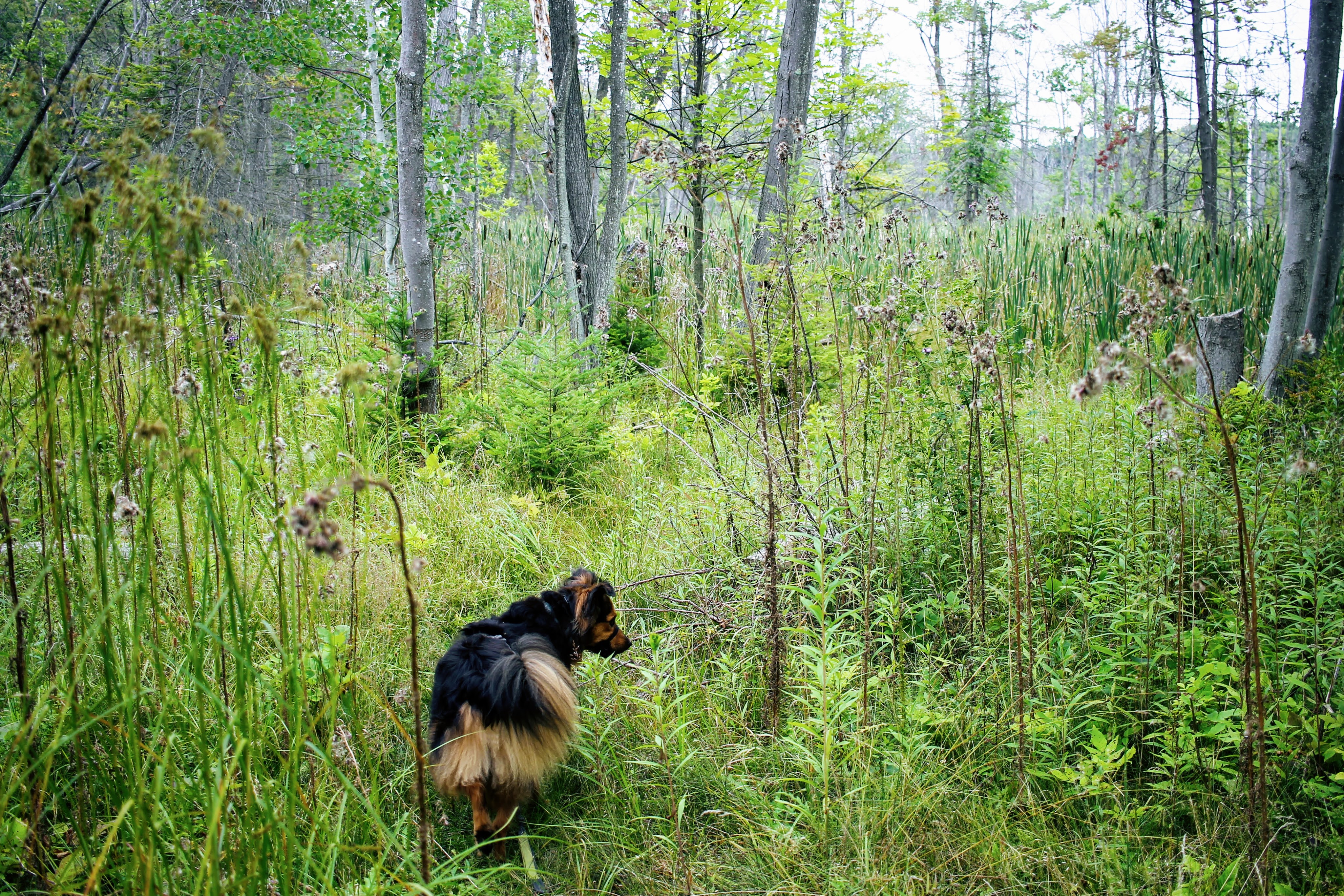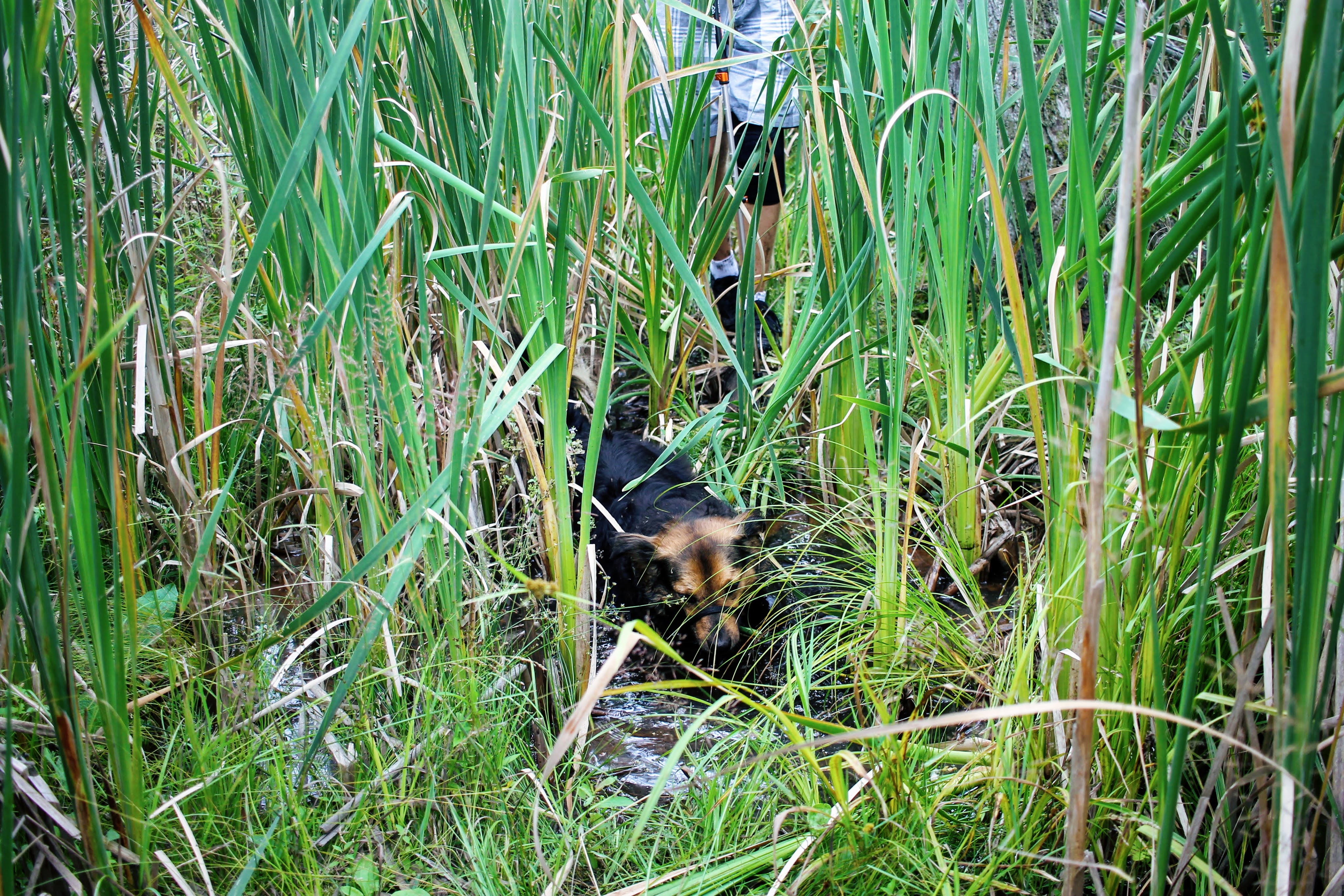 Before we know what’s happening, we are trekking through a literal bog. Ok…maybe not literally. But the beautiful prairie we once found ourselves in was flooded. The trail was but a slight indent in the weeds that we occasionally lost sight of. At times I wished I had a machete to slash through the cattails that obstructed my path. The few log “bridges” were interrupted frequently with puddles of knee deep mud. Gob was in heaven. Mason was not.