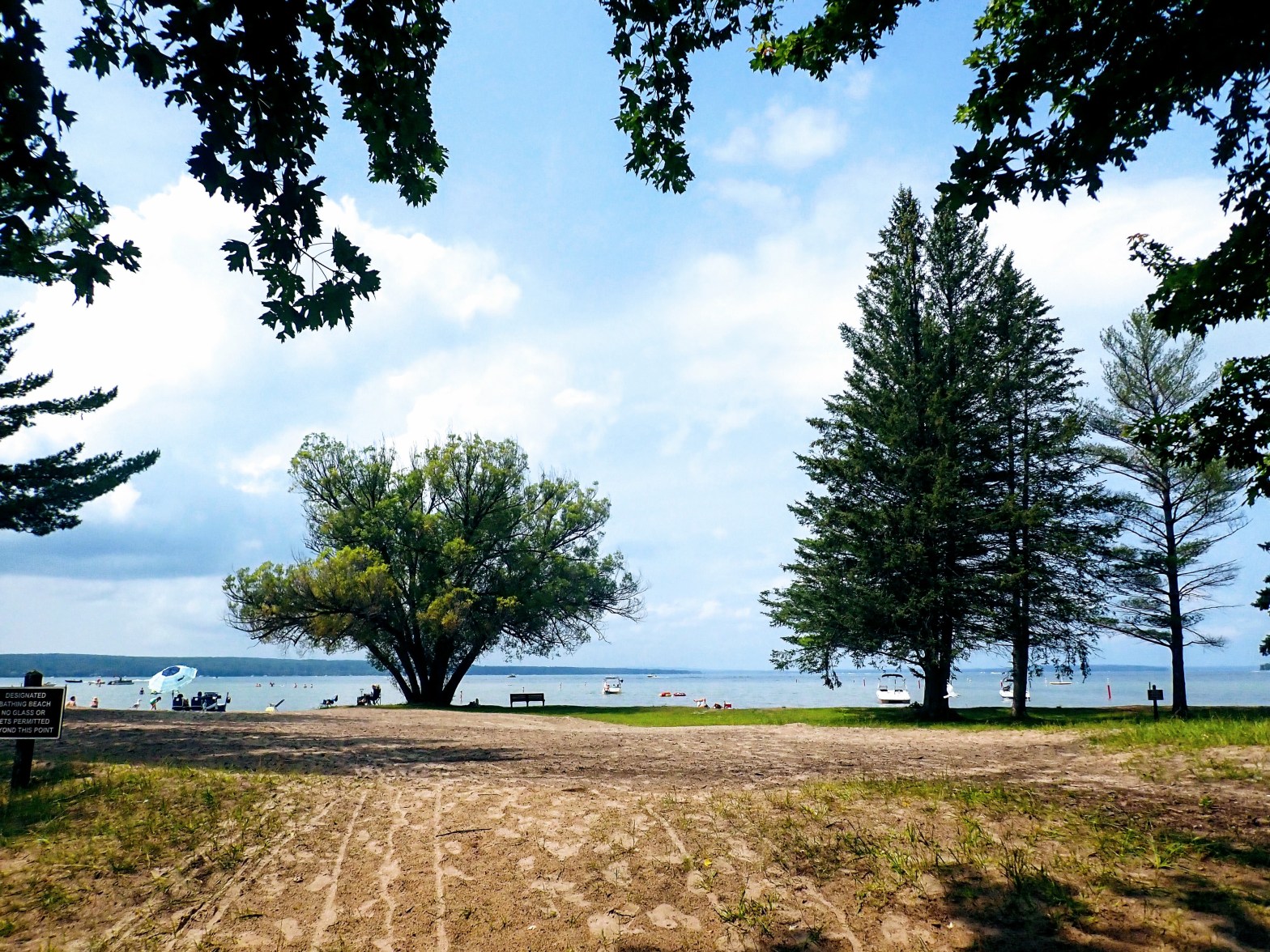 The beach looks lovely enough. Families having cookouts swarm the grills. Boats dot the water. But signs stating “no animals” block our every entrance to the water. I’m sure this is a great park for families of people, but for the pet-inclusive family it doesn’t give a lot of options.