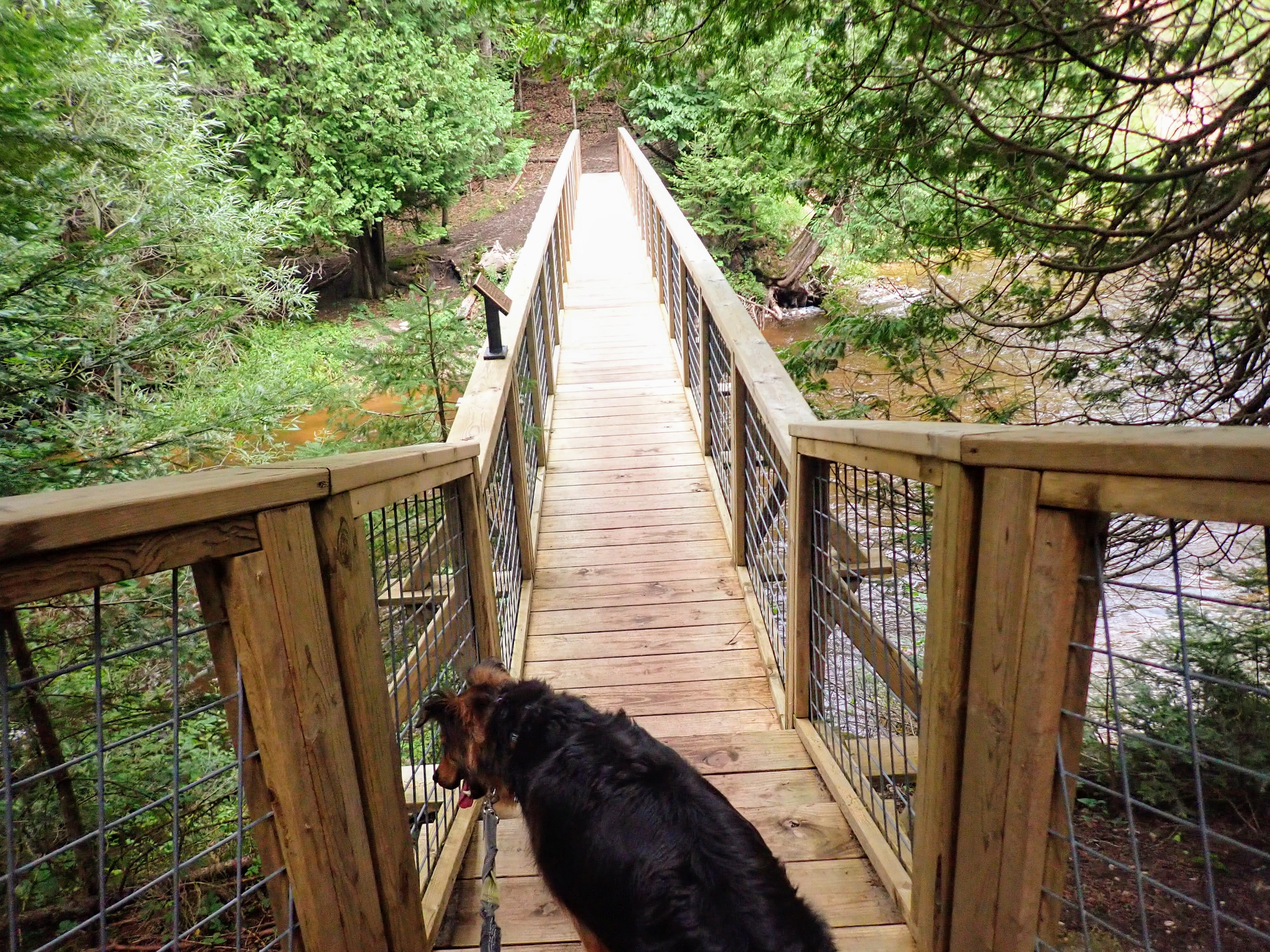 Enter Agnes S. Andreae Nature Preserve and the loop to nature’s megaphone. A quick 2 mile loop through the forest. The trail followed the river, and Gob keep stealing longing glances at it.