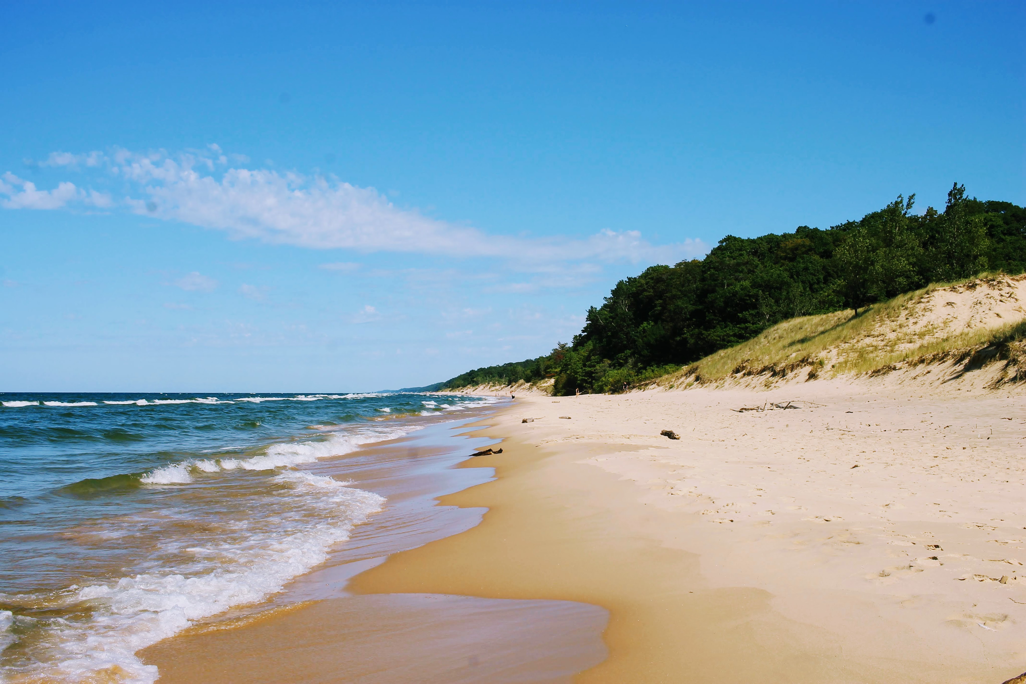 Now caffeinated and breakfasted, we are ready for our second hike of the day. Gob is excited for the promise of another dip in Lake Michigan. We are both nervous to be back among the dunes. But thankfully these are much nicer on my calves.