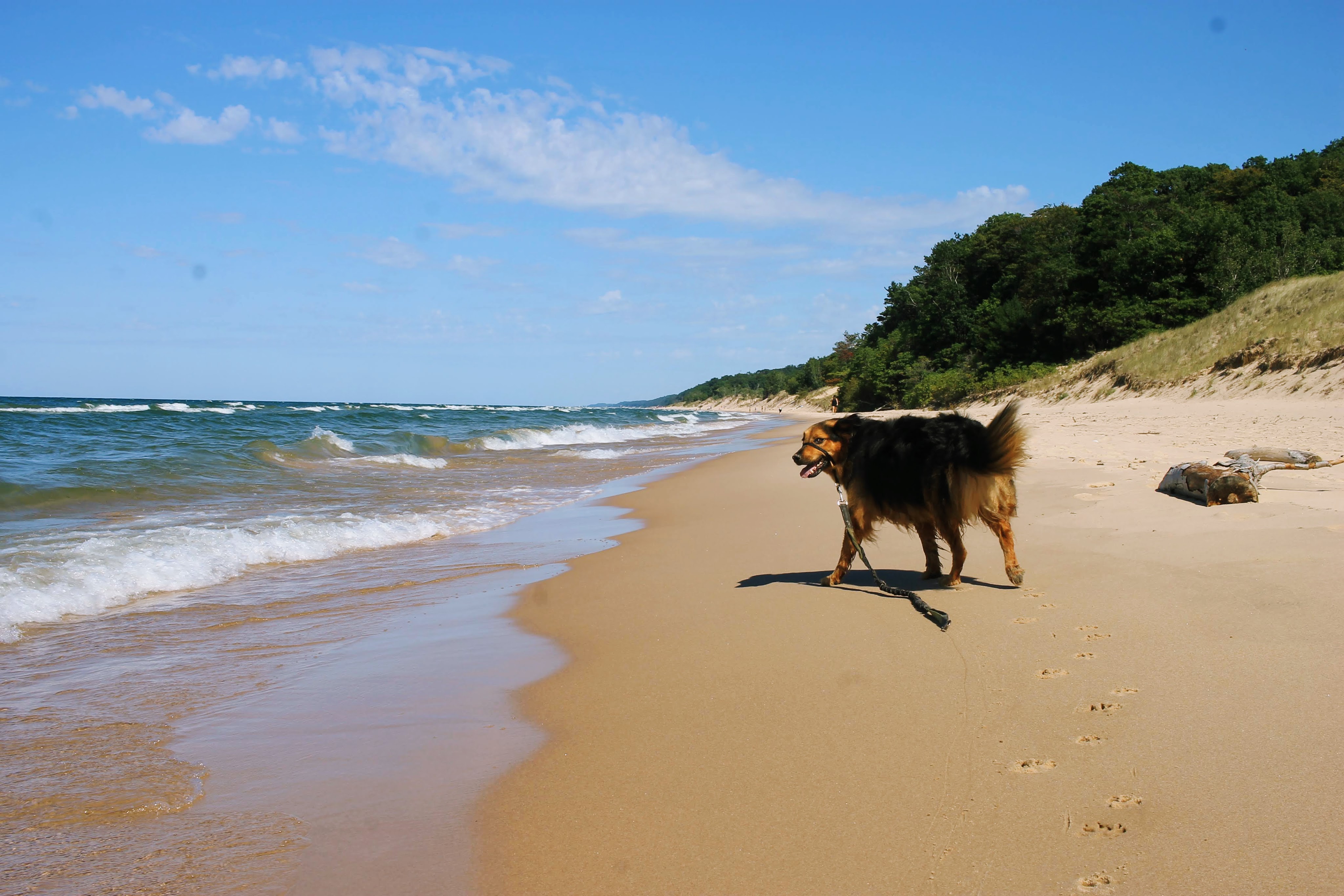 As we make it to the shoreline, Gob sprints straight into the waves. He is immediately startled by how large they are today. And he decides he is not a fan after taking a wave straight to the face. He stays at the very edge of where the tides reach, letting just his toes enjoy the cool water. But all good things must come to an end, and we are soon back in the dune forest, and eventually back at the car. Where Gob convinces me he deserves lunch.