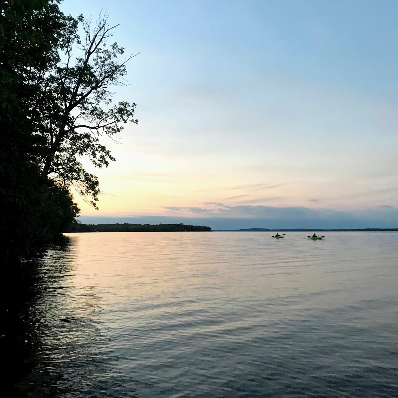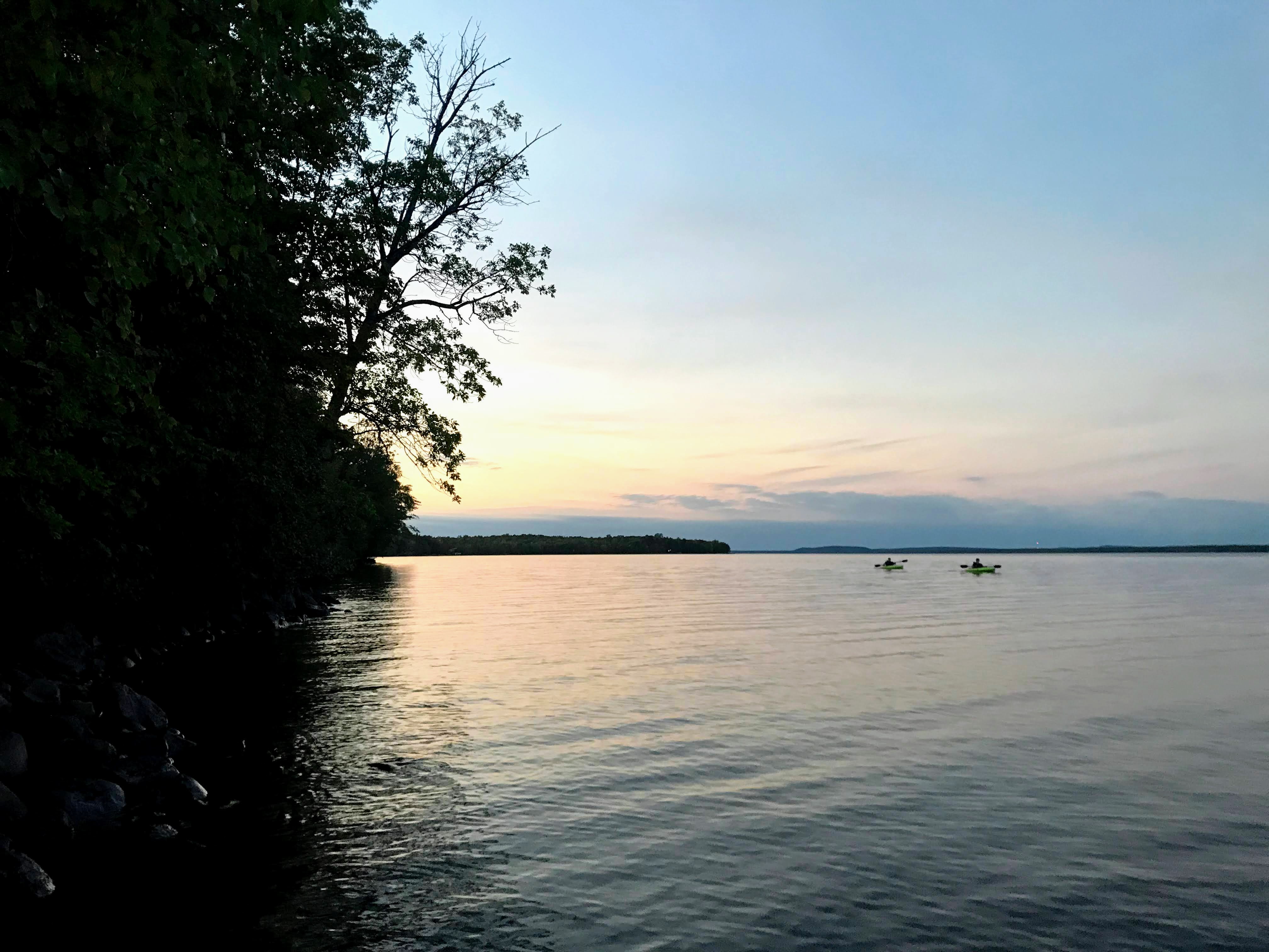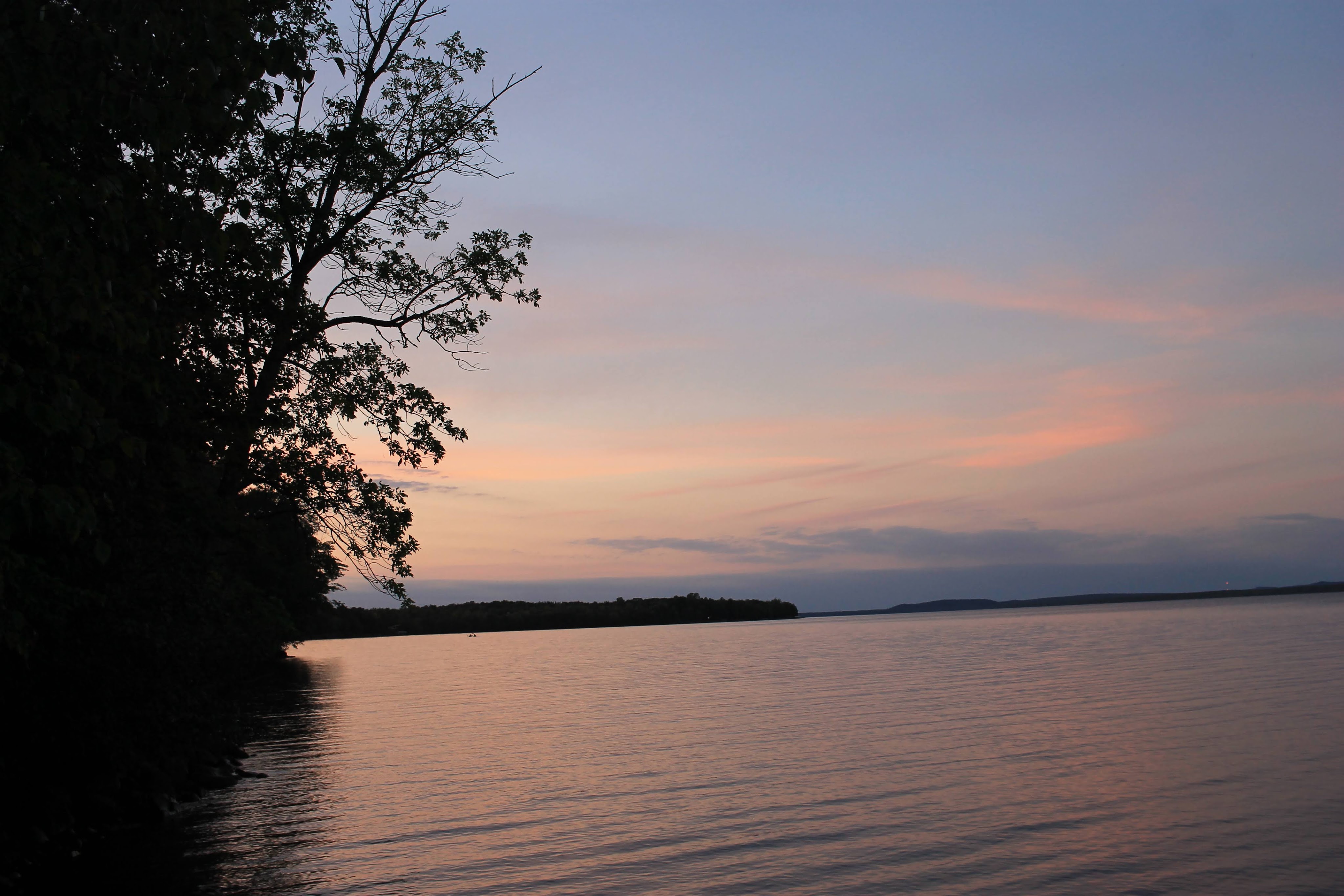 Back at camp, we dip our toes in the lake and enjoy the sunset. Gob decides he has had enough water for the day and sits in the grass while I continue snapping pictures. When the sun disappears, we retreat to the van and snuggle up with a book.
