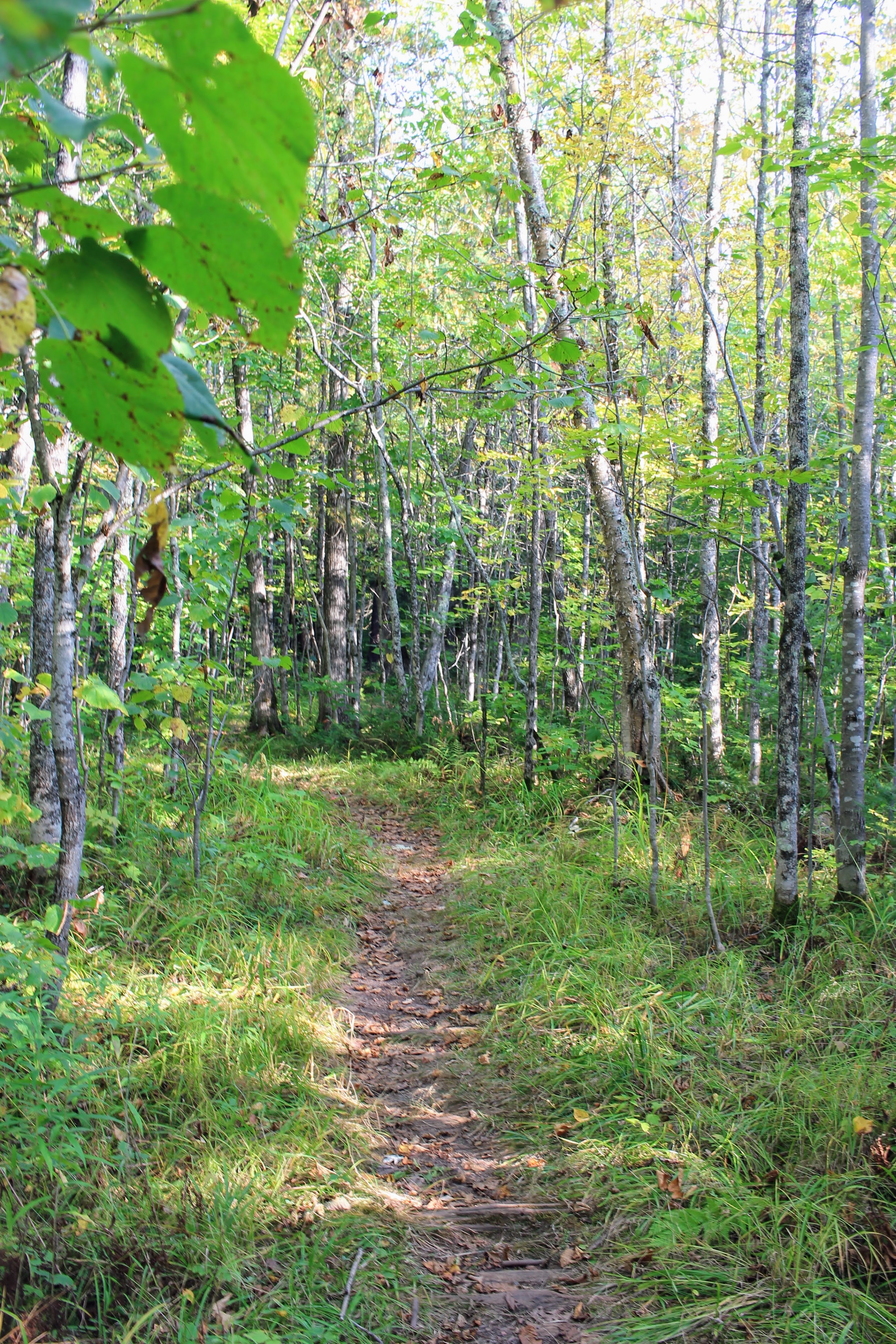 We cross the street and enter the forest. The evening sun dances through the leaves, twinkling against the trail. The yellowing beech leaves and browning ferns are the only signs that autumn is approaching. The woods are still lush and green, full of summer’s energy.