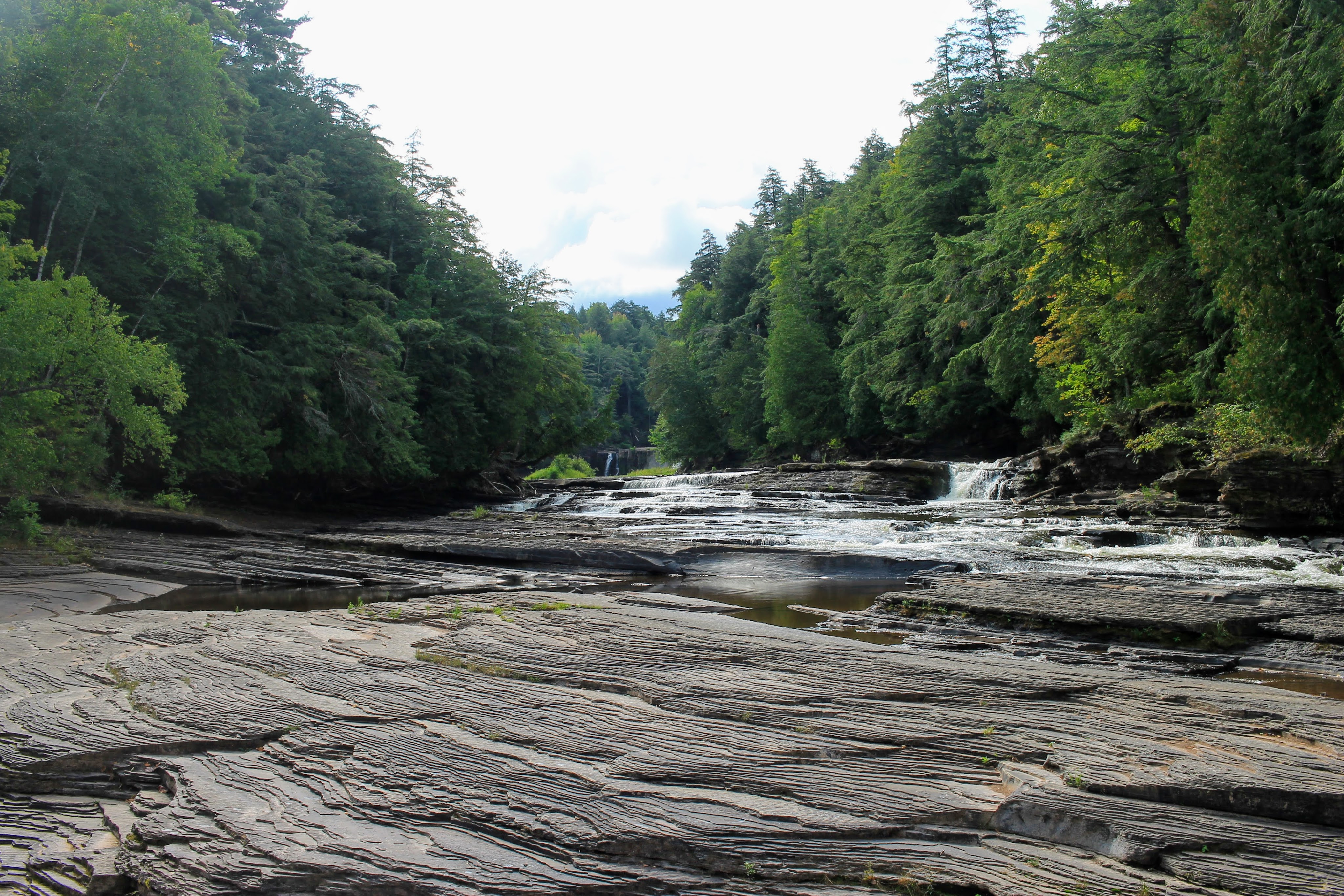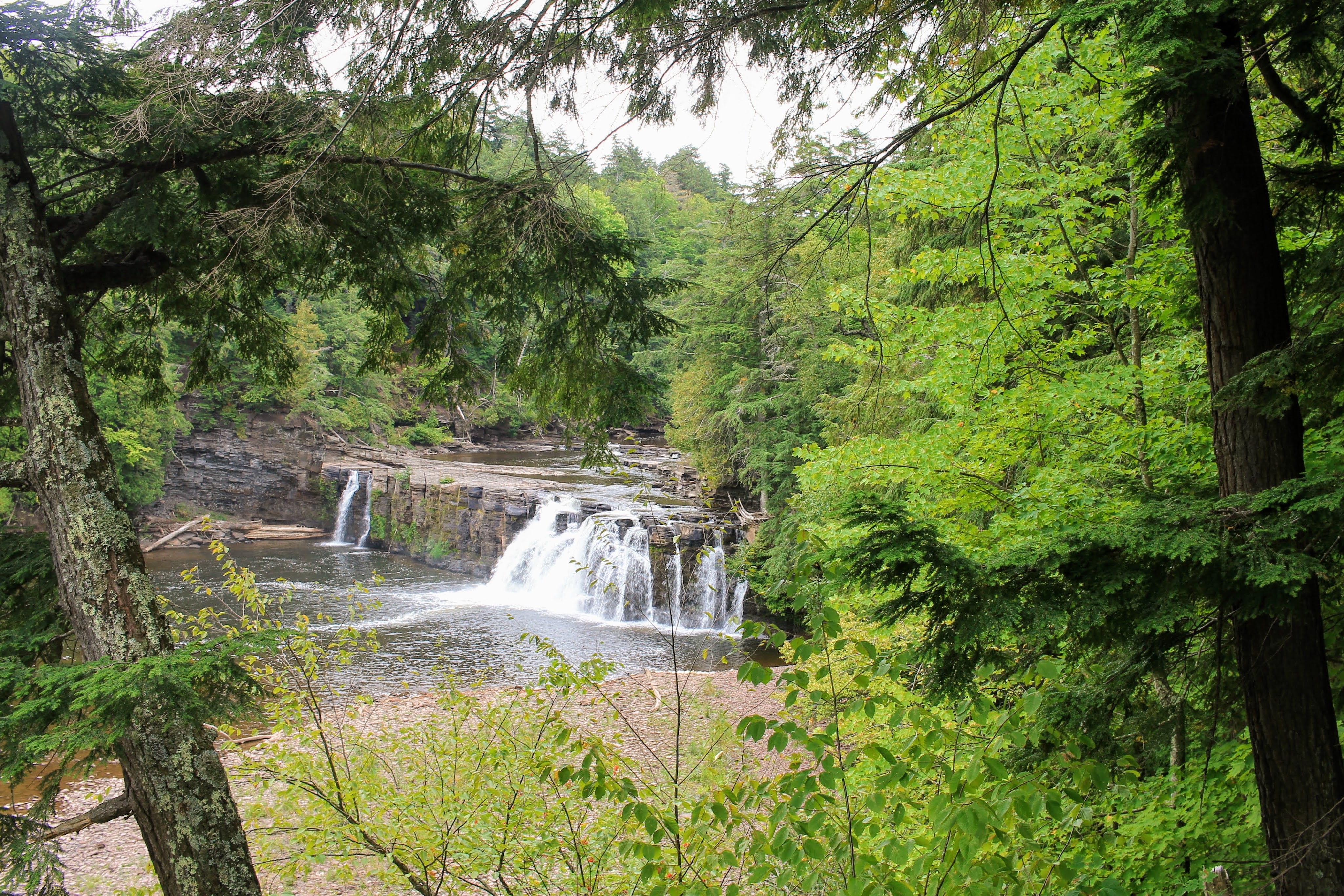 We begin with the Presque Isle River Waterfalls Loop. We follow the Presque Isle River through the woods all the way to Lake Superior, stopping to admire a few waterfalls along the way. Each is unique and magnificent.