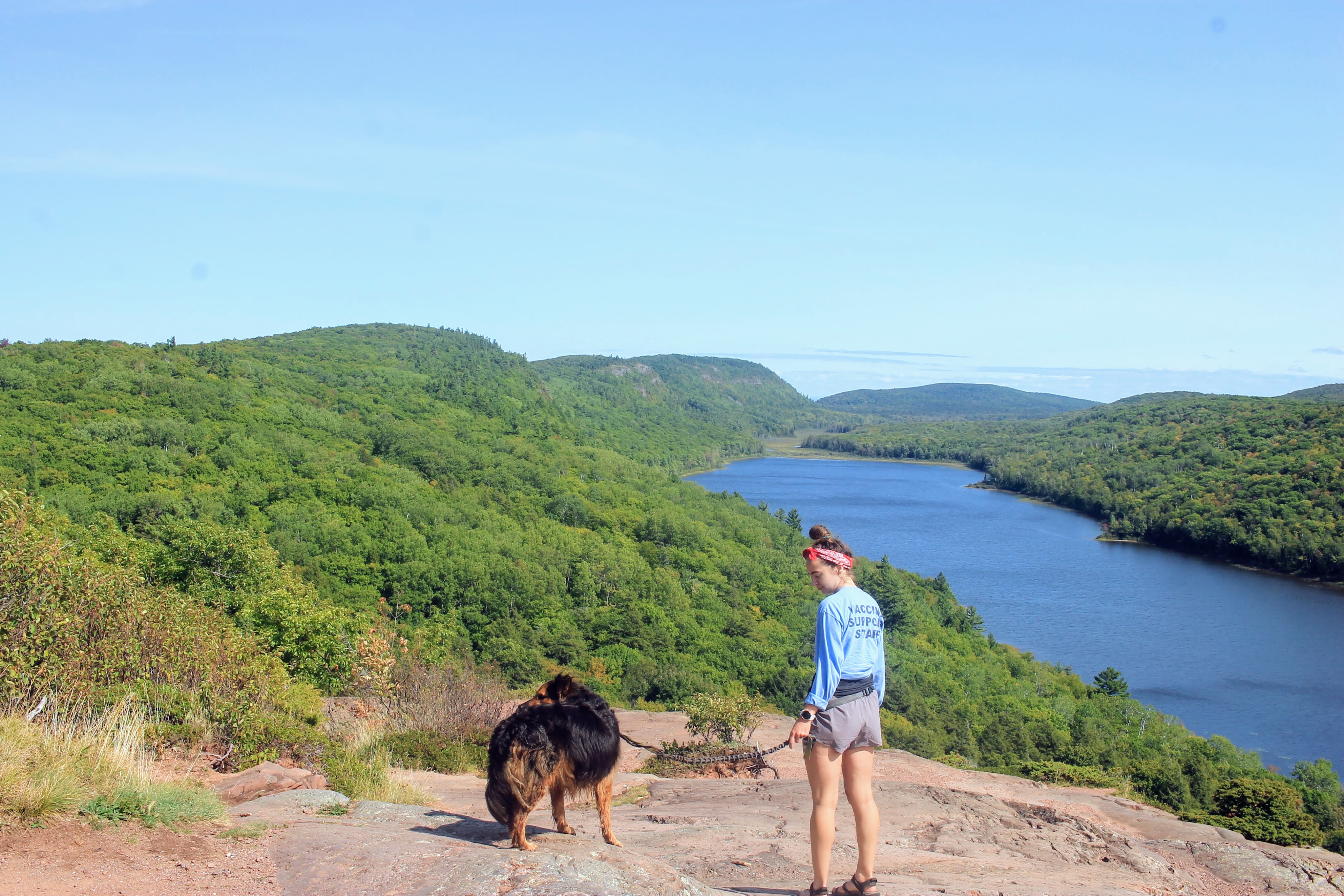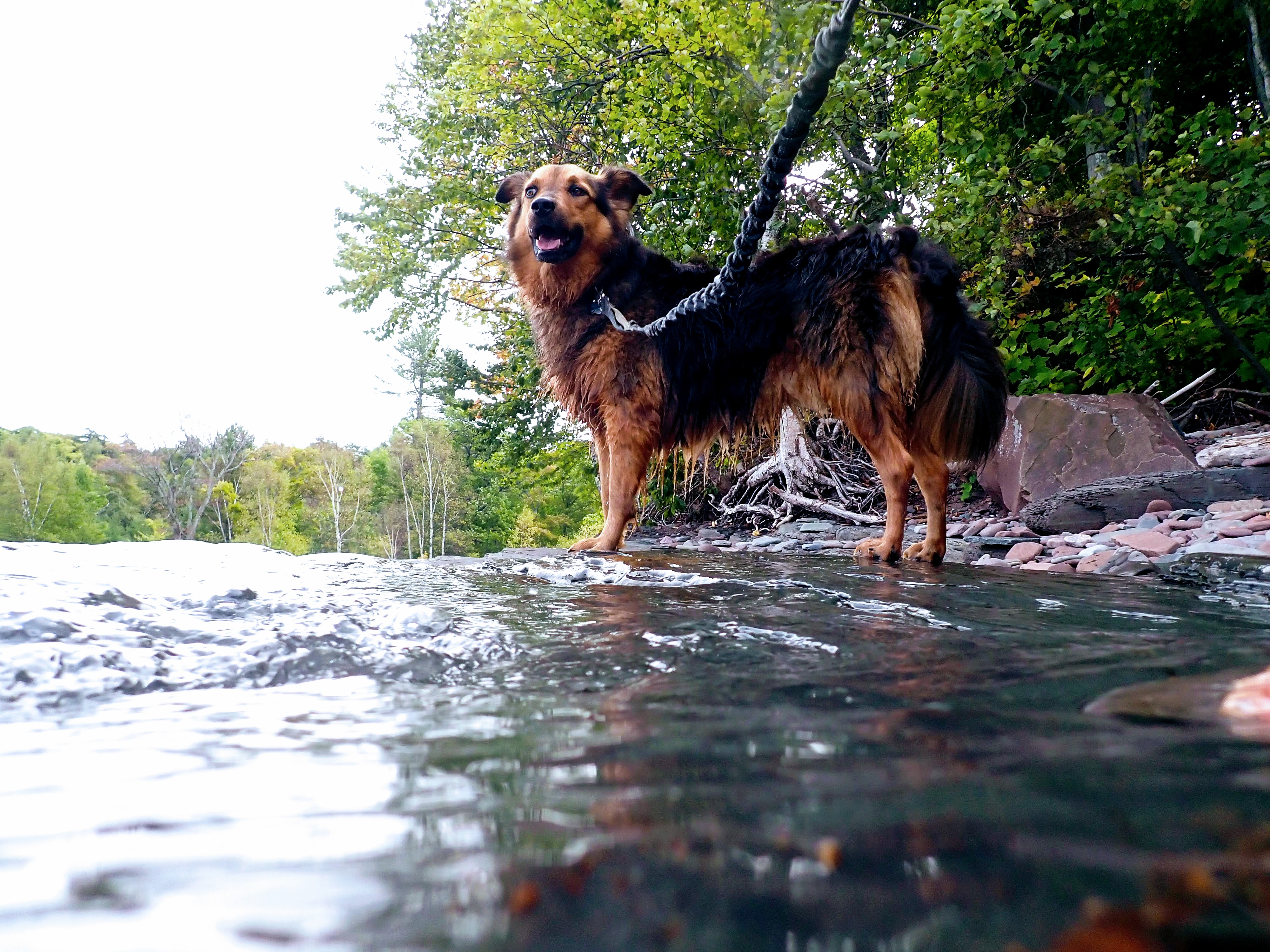 Our third and final stop in the Porkies: Lake of the Clouds. I had originally planned to hike the 8 mile Escarpment trail, but Gob is starting to drag so we end up driving to the lookout instead. Even on this short hike, the sun is roasting down on Gob and he is in search of water. He, of course, finds a giant puddle and immediately immerses himself. I groan. Fellow hikers laugh at his puppy smiles.