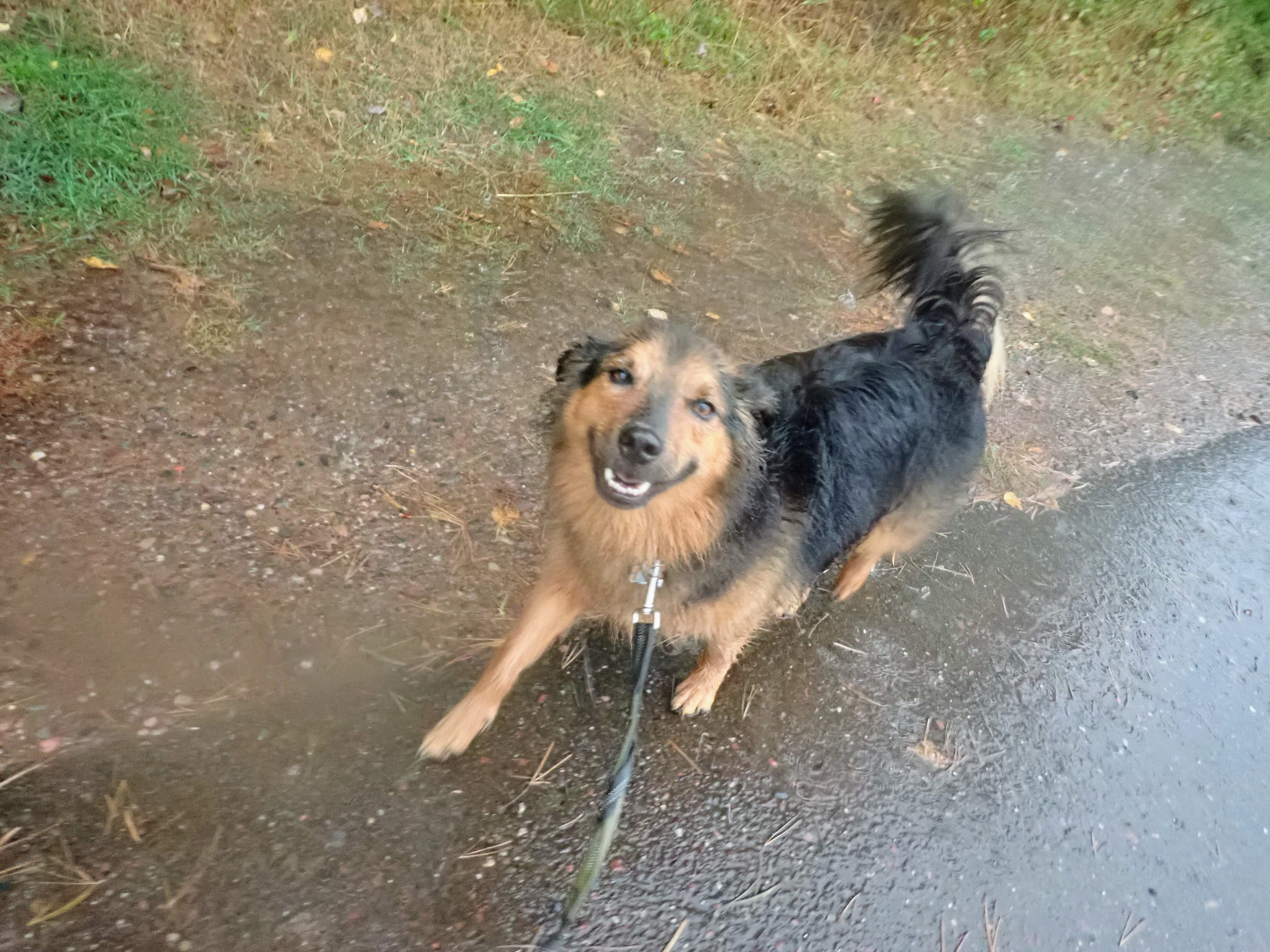 We are immediately soaked through. Gob decides he doesn’t mind all that much, but I do. We don’t even make it out of the campground and on to the official trail before I abandon course.