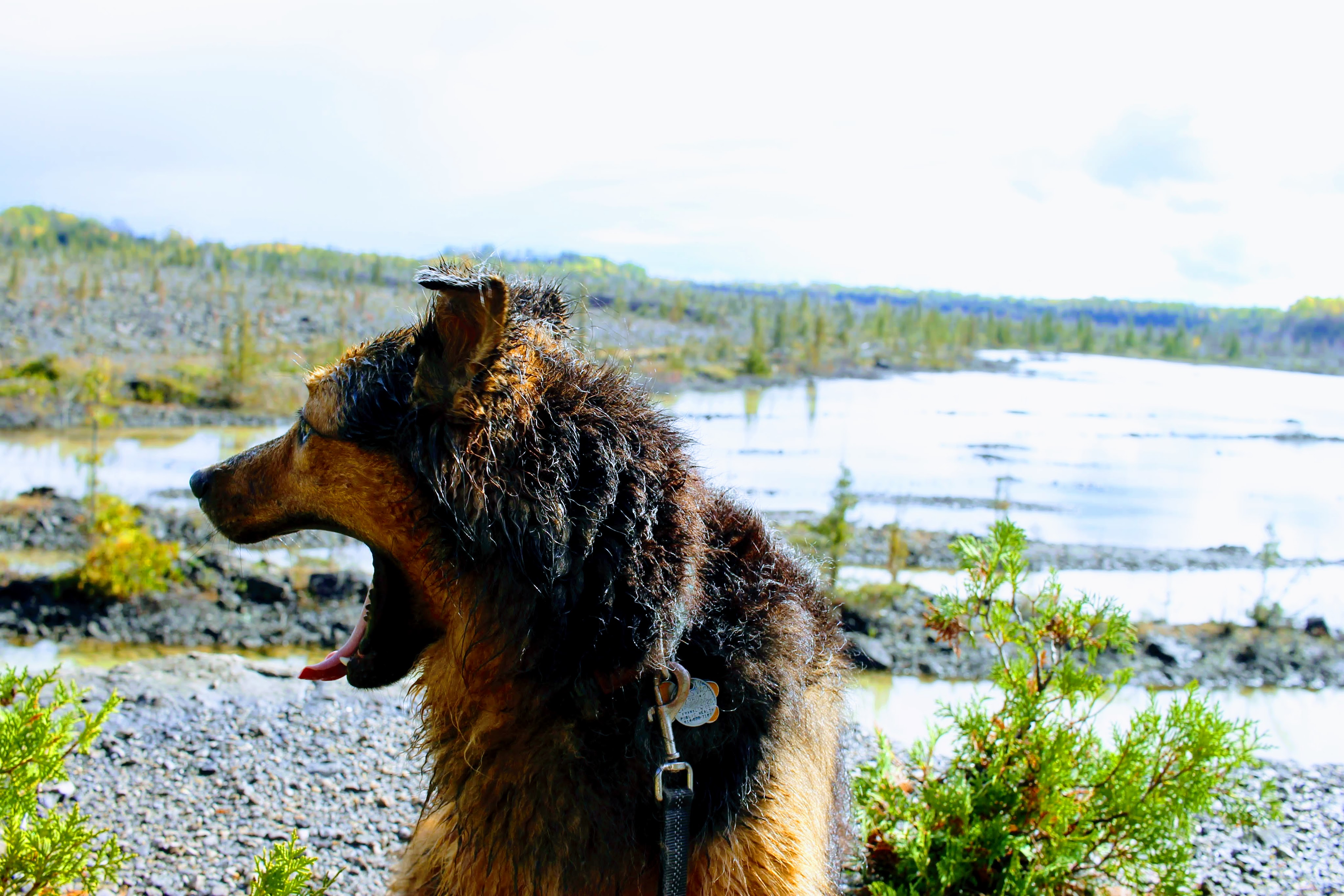 We pull into the park amidst a light drizzle. There are a few other cars in the lot, but not a soul in sight. Gob wags his tail in excitement and quickly leaps out of the car.