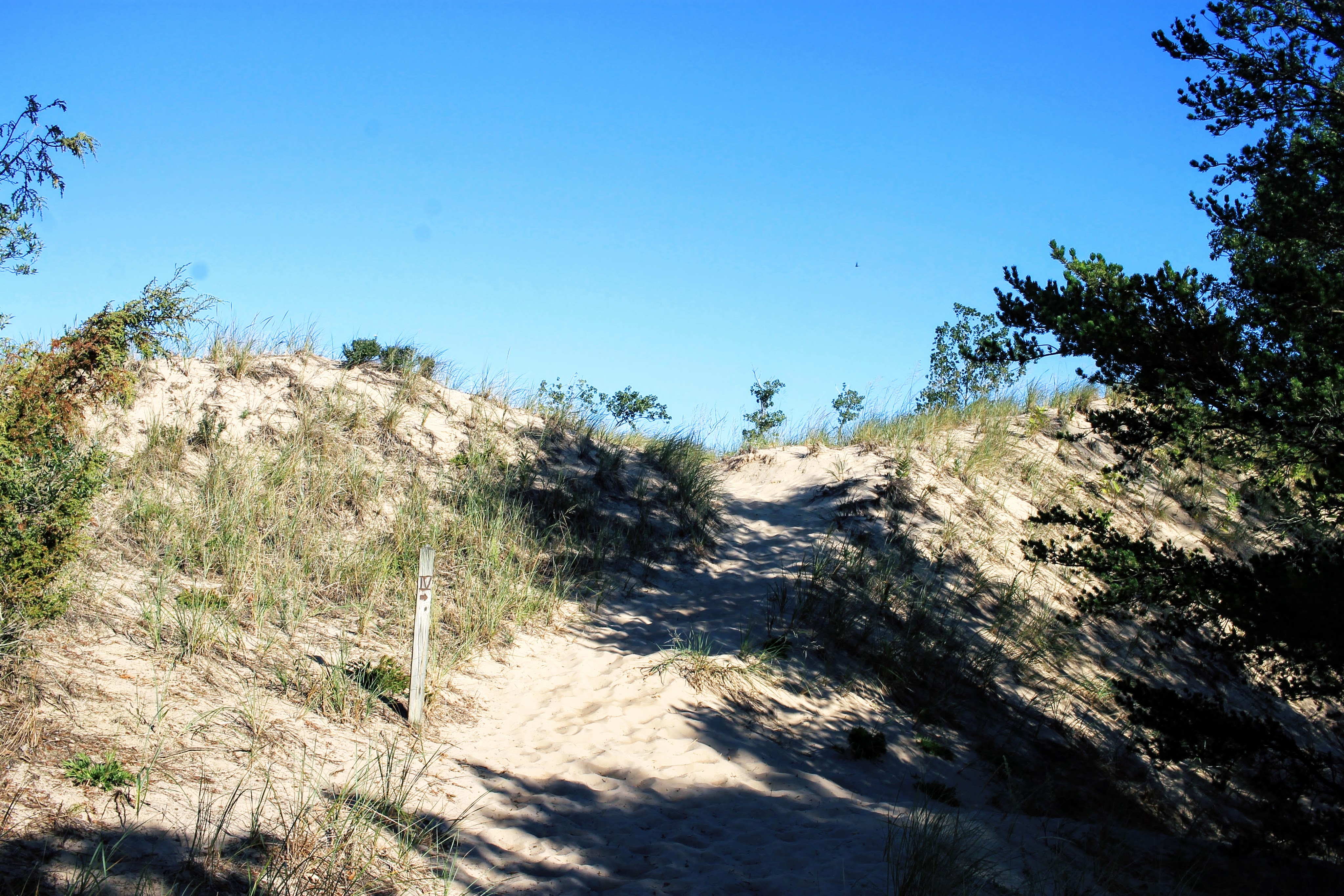 Today is all about the dunes. Almost 5 miles for this hike. And it always feels like much more. The first half is pretty mild. Mostly shaded. And once we’re out of the shade, we’re walking the shoreline of Snug Harbor. Which means Gob is taking many dips.