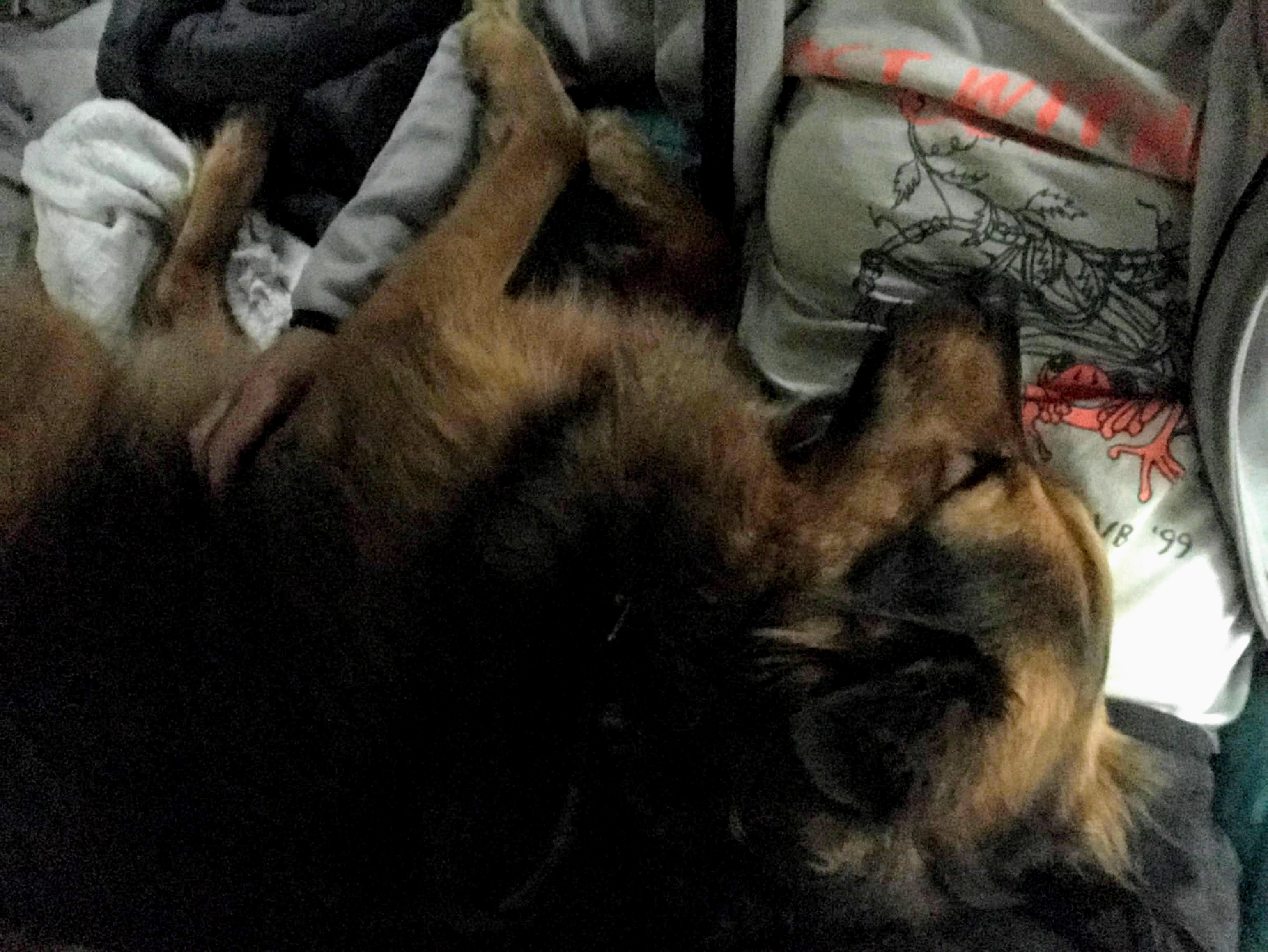 Back at our campsite, Gob opts to lay outside the van. Even though it is still sprinkling. We eat dinner. I read. Gob snoozes. Soon he climbs into bed. I shut the door. And then we are both asleep.