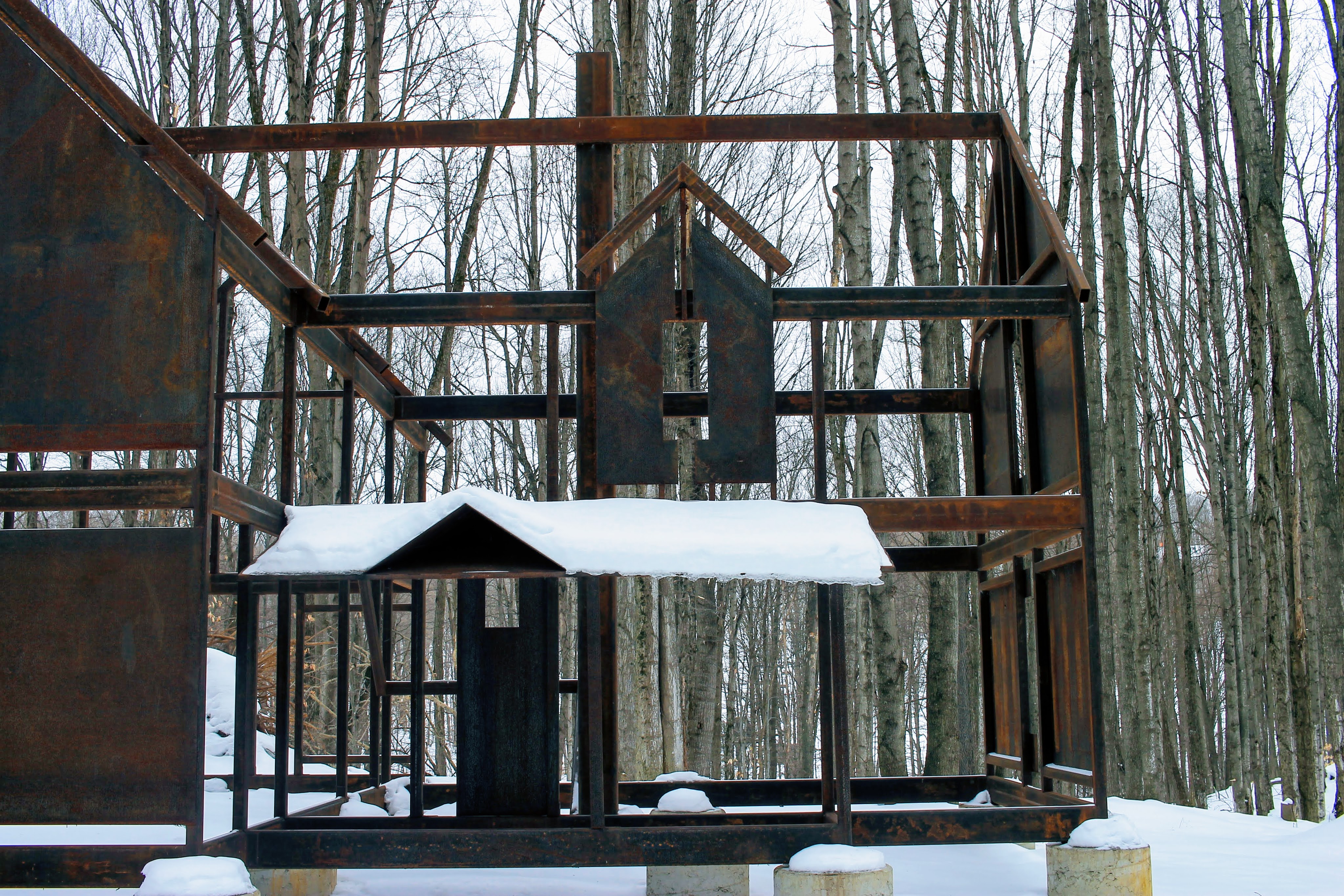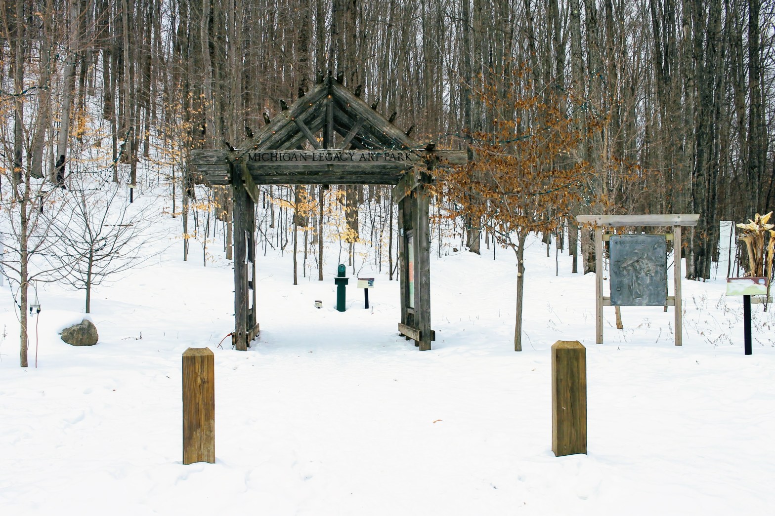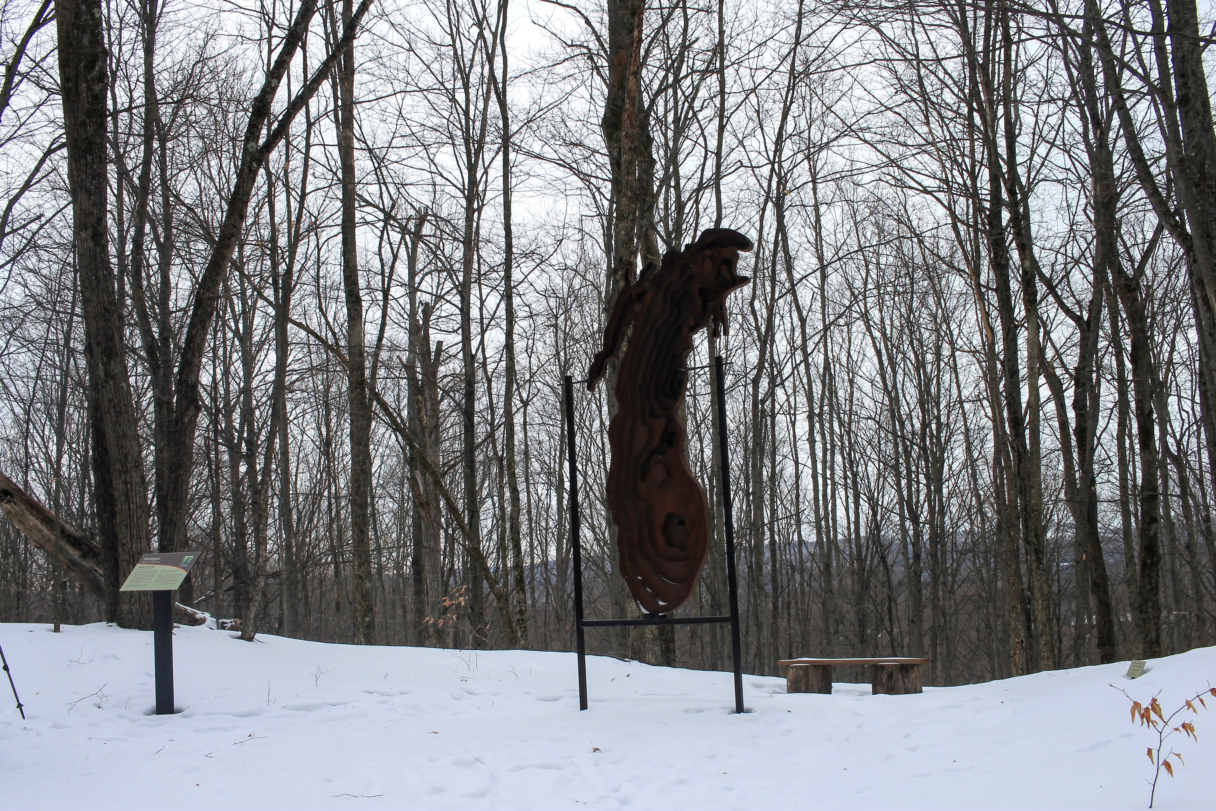 Nestled in the rolling hills, right next to a ski lodge, we wound our way through the 2 miles of trails. Each sculpture accompanied by a description of how it ties to Michigan’s history. Some exhibits were too snow covered to see. Some just partially covered. But it was nice to have the park to ourselves (aside from one cross country skier and a couple with their dogs). I love getting to pair art with nature.