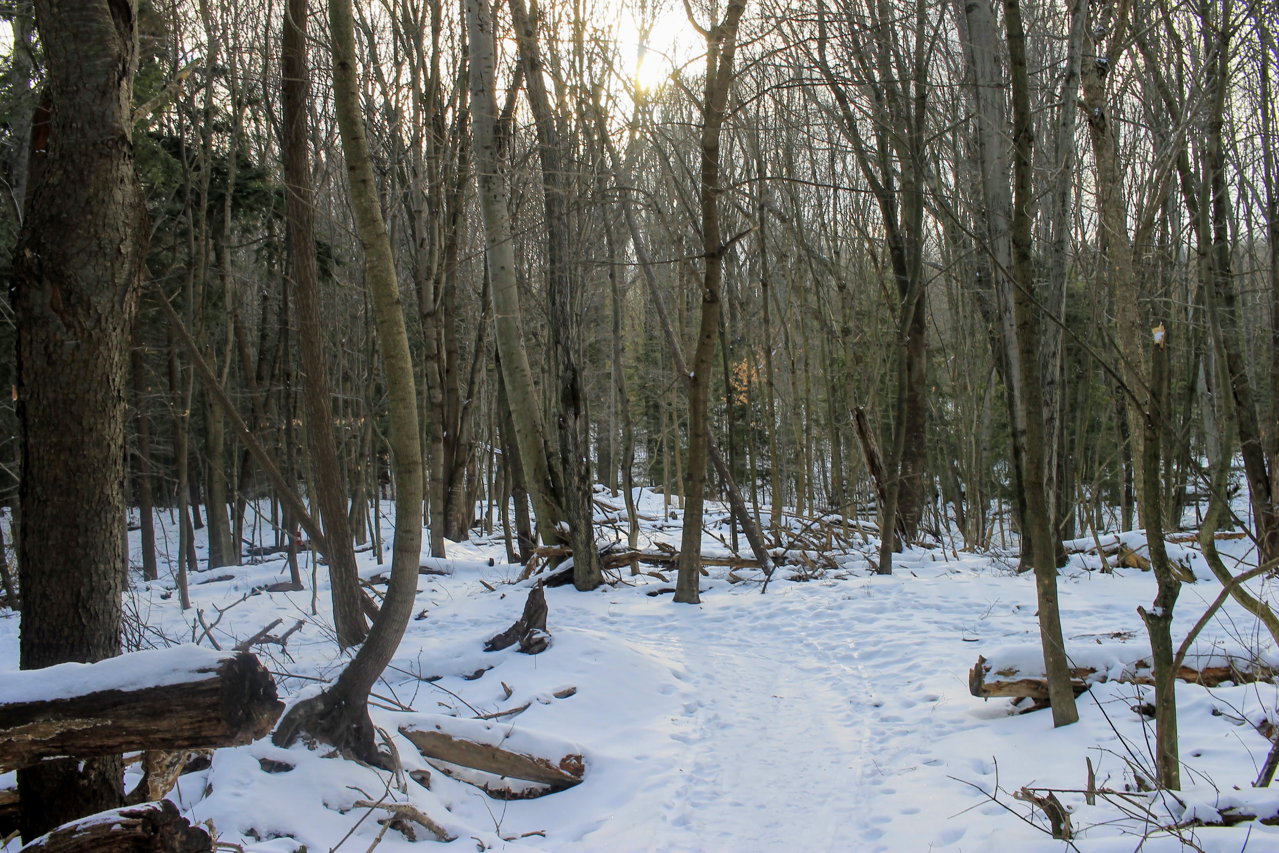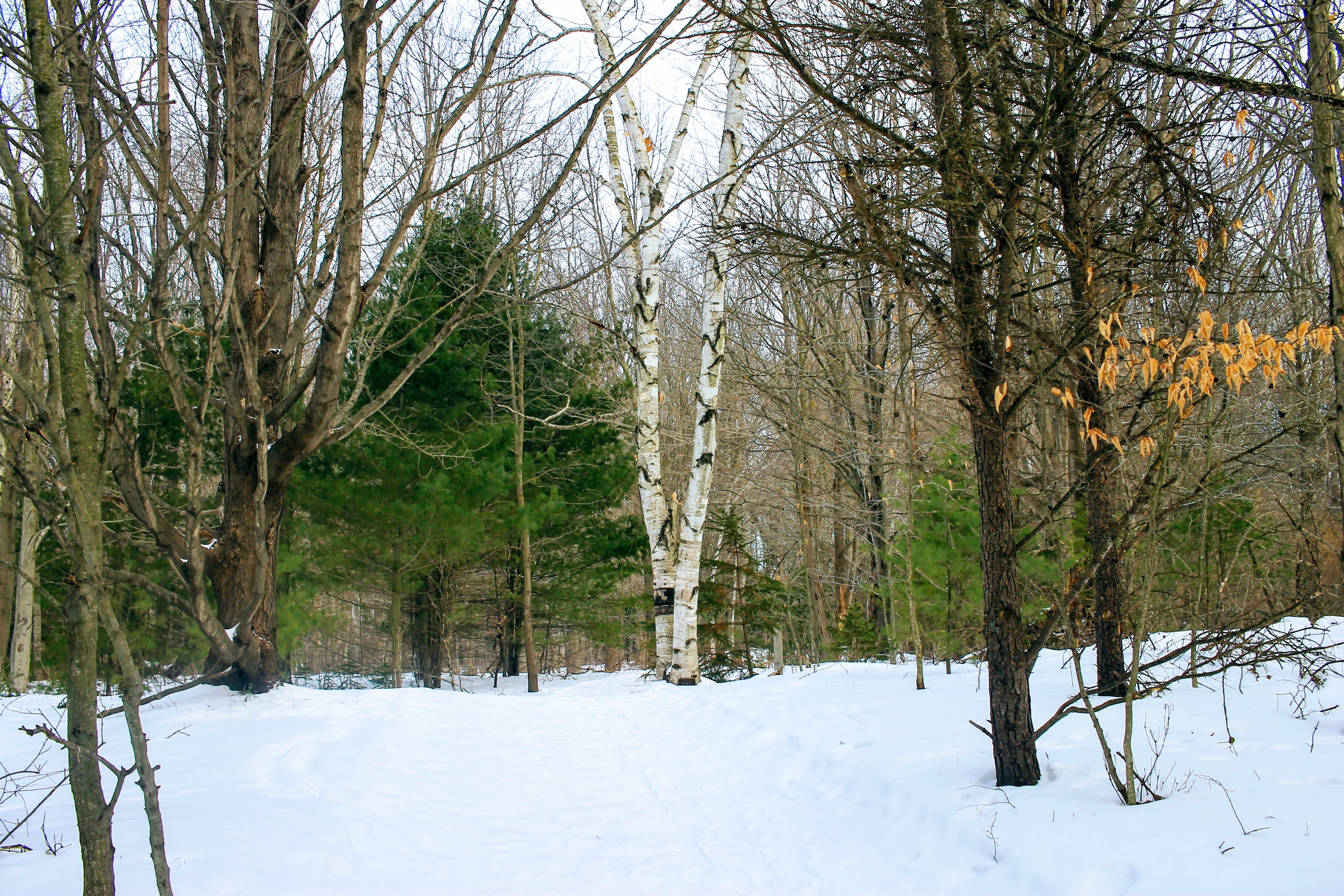 And just across the street, we find a picturesque nature trail. Red lanterns hang like ornaments from the naked trees. I suspect I would find sand dunes under the snow instead of a dirt path, but perhaps I will never know. For as much as I dislike the cold and the snow, I must admit it makes some beautiful scenes.