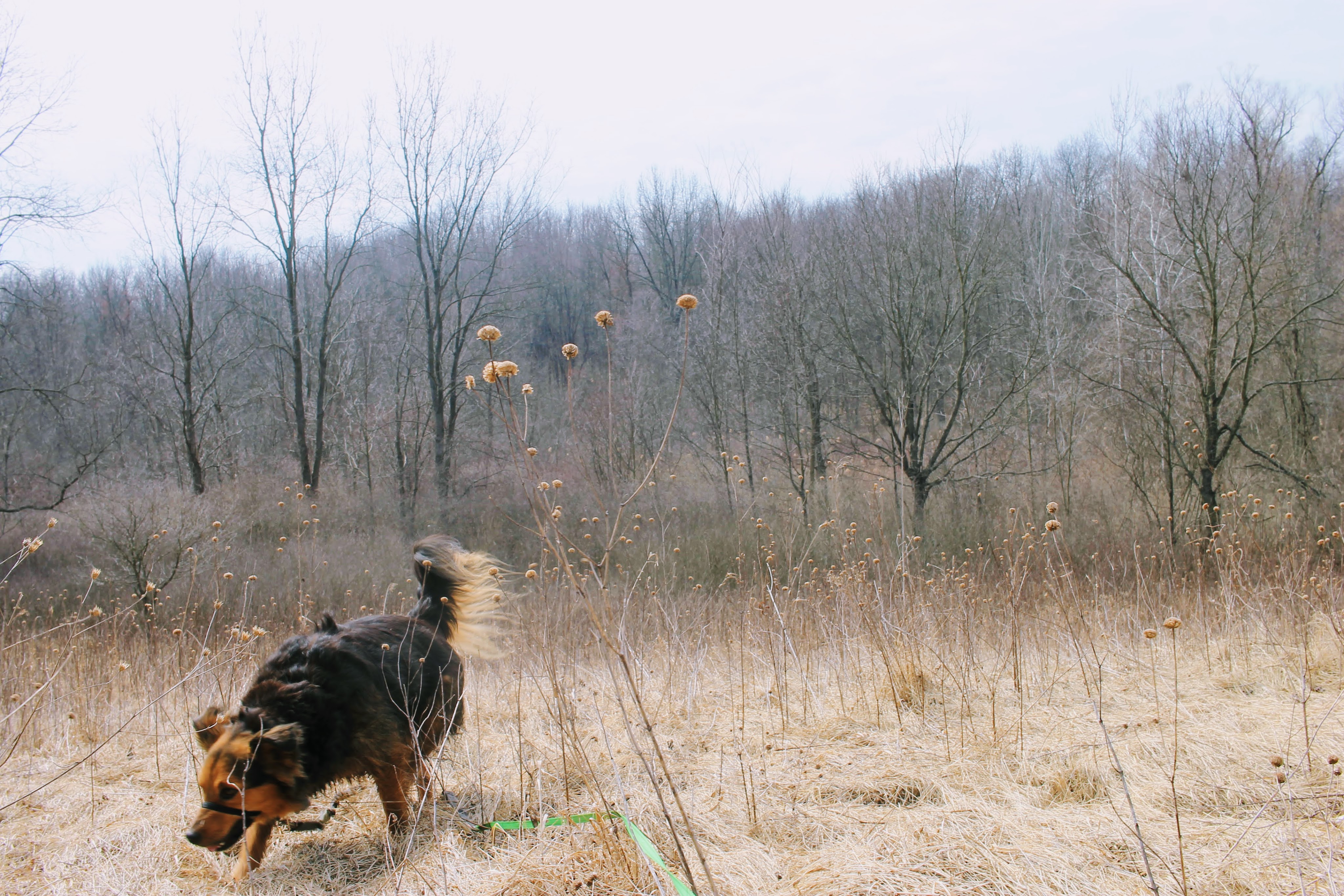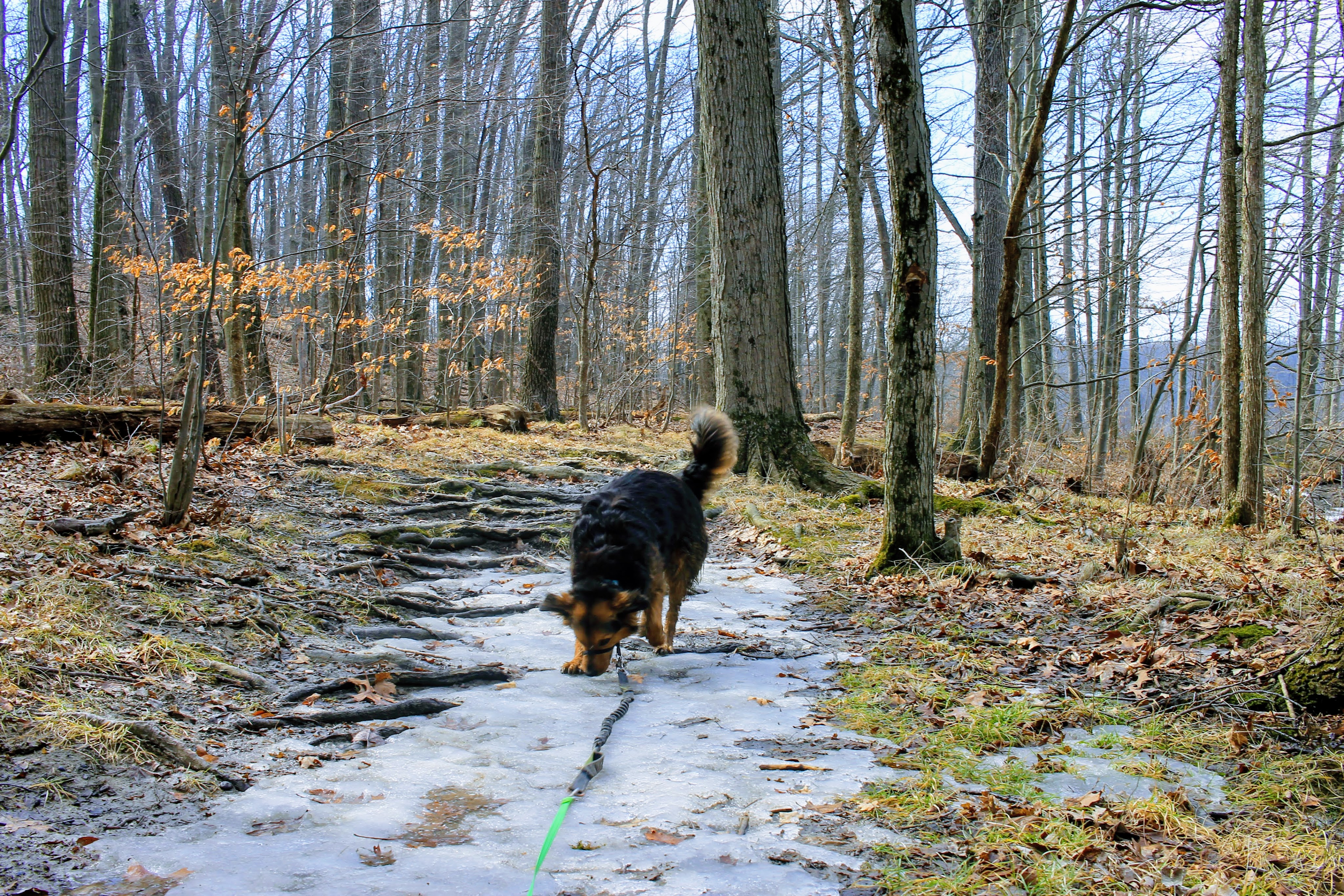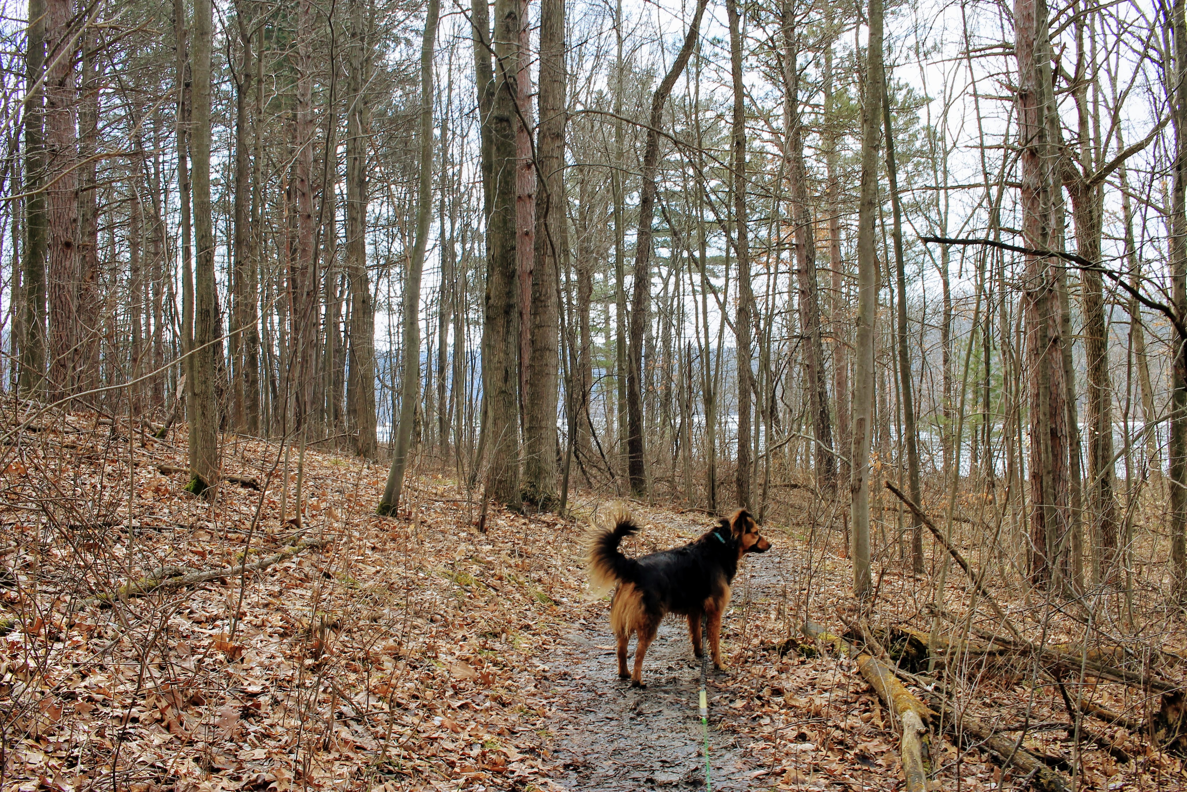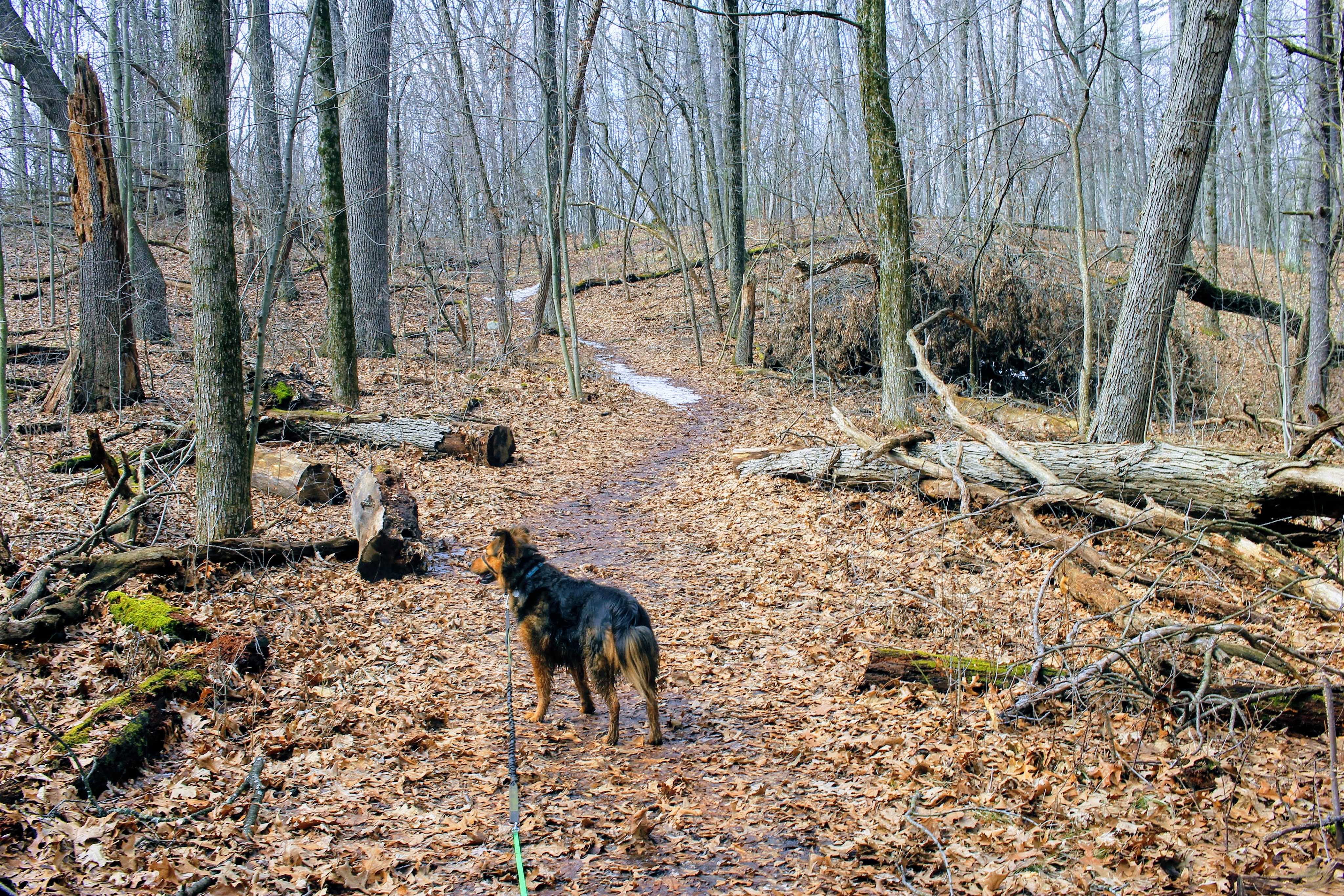 Long time, no Michigan park visit. But a lack of precipitation and some slightly warmer weather makes me willing. Gob is all too eager to hit the trail with me.