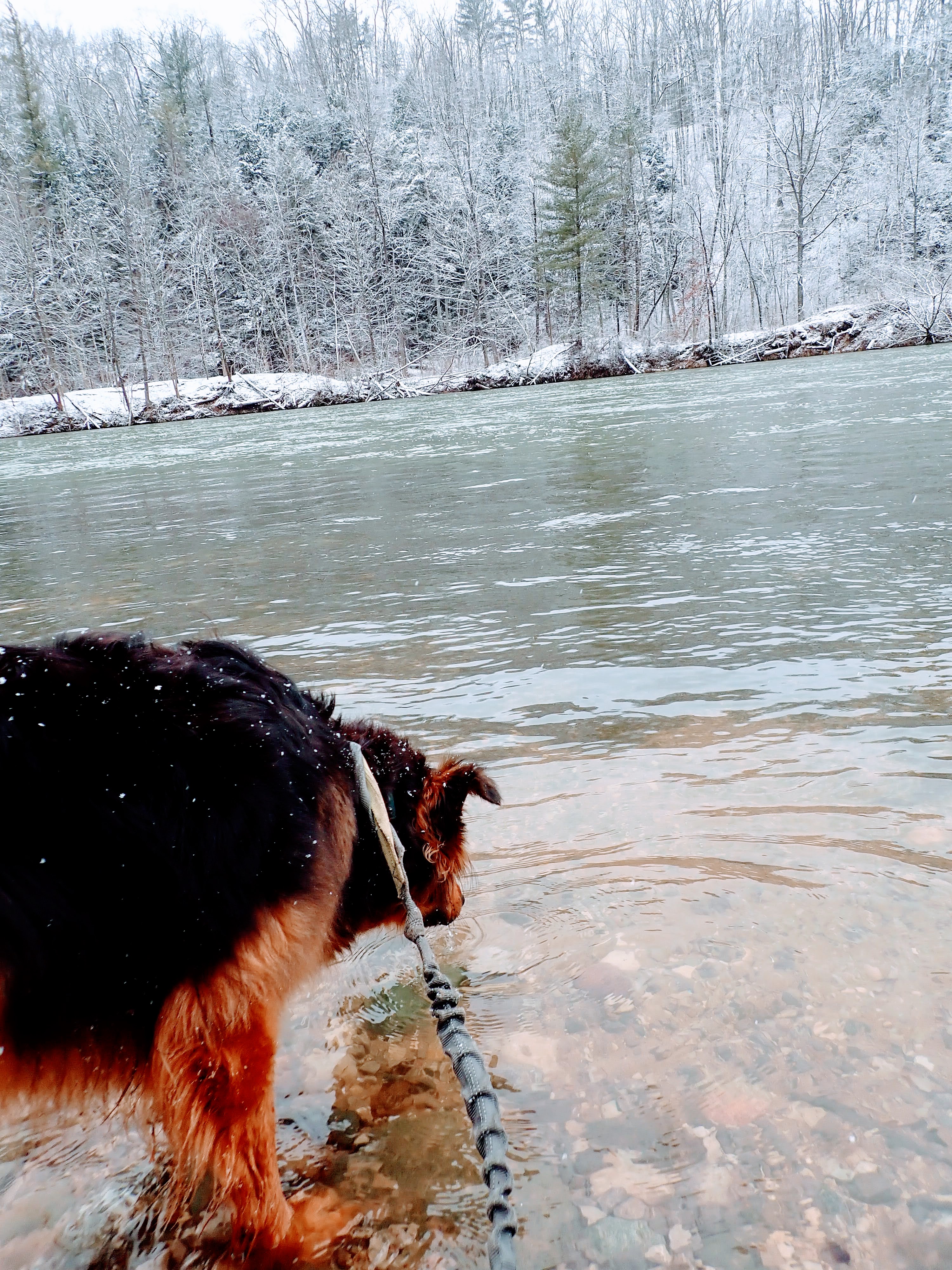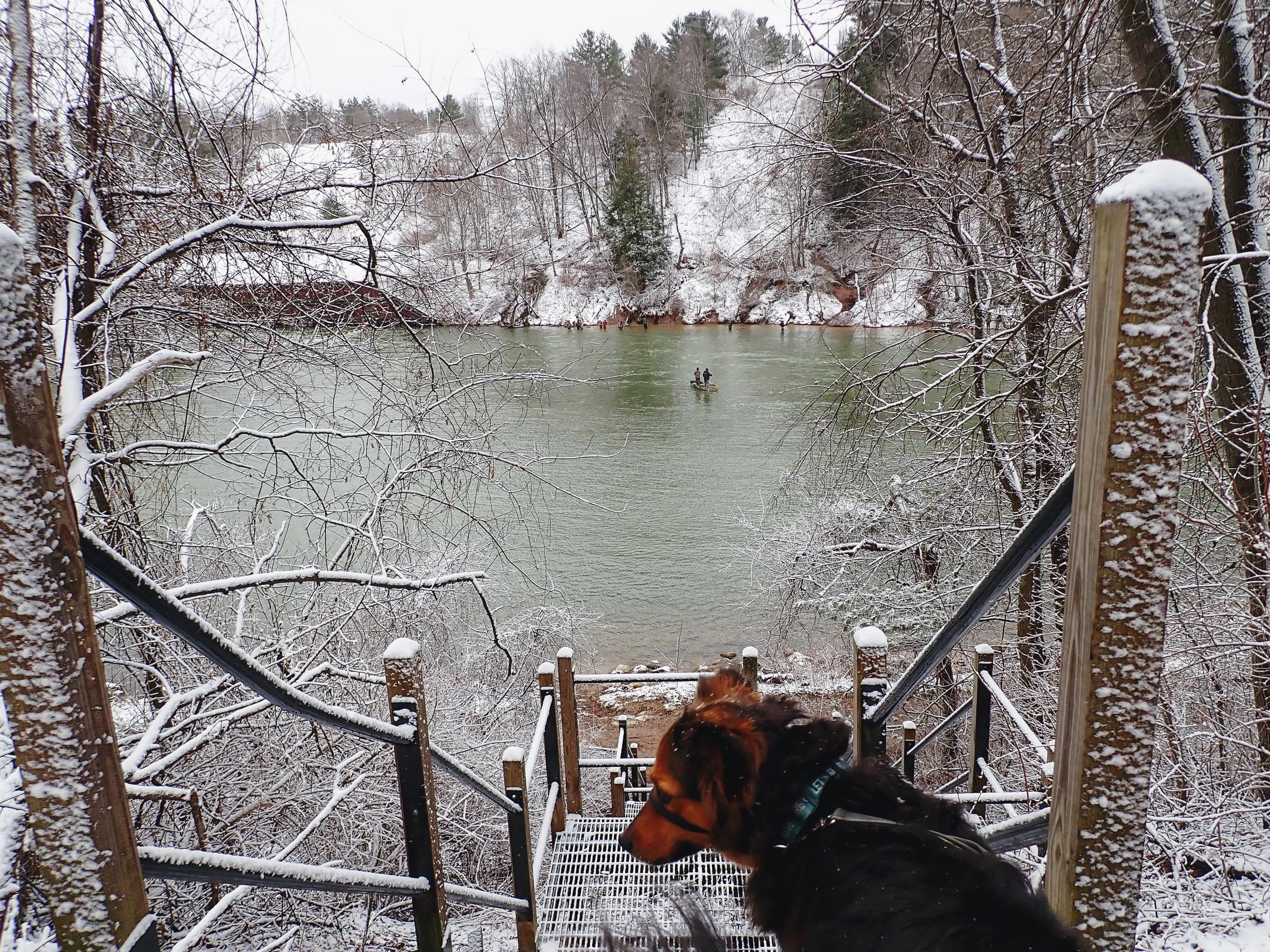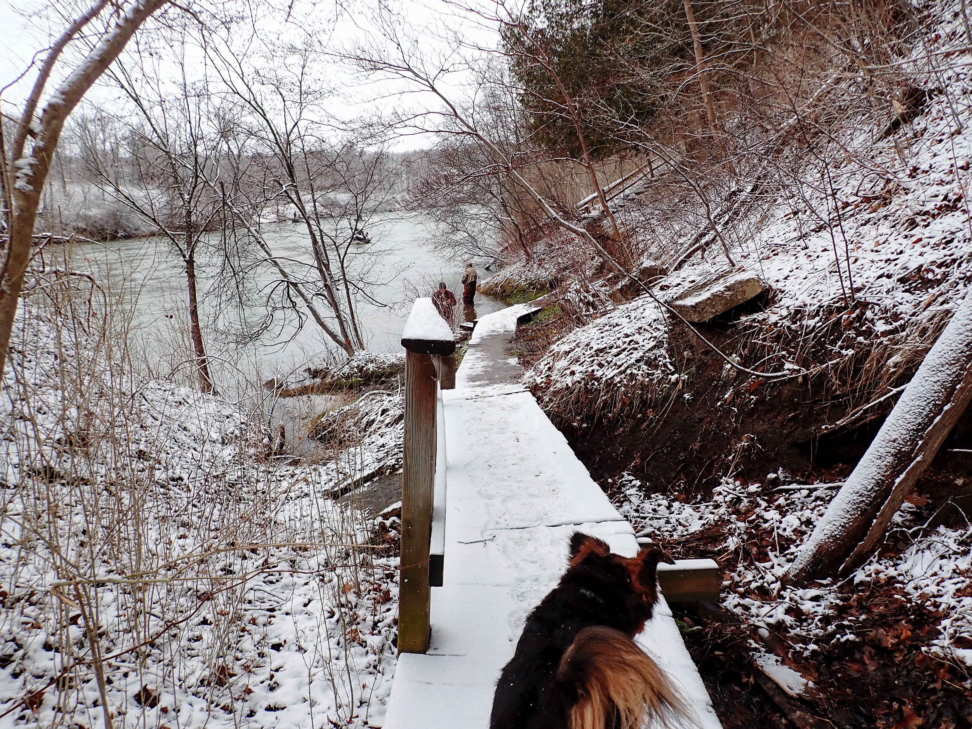 As we made our way onto the river trail, more friendly fishermen warned of the slippery conditions. Gob was kind enough to listen and not pull me into the water.