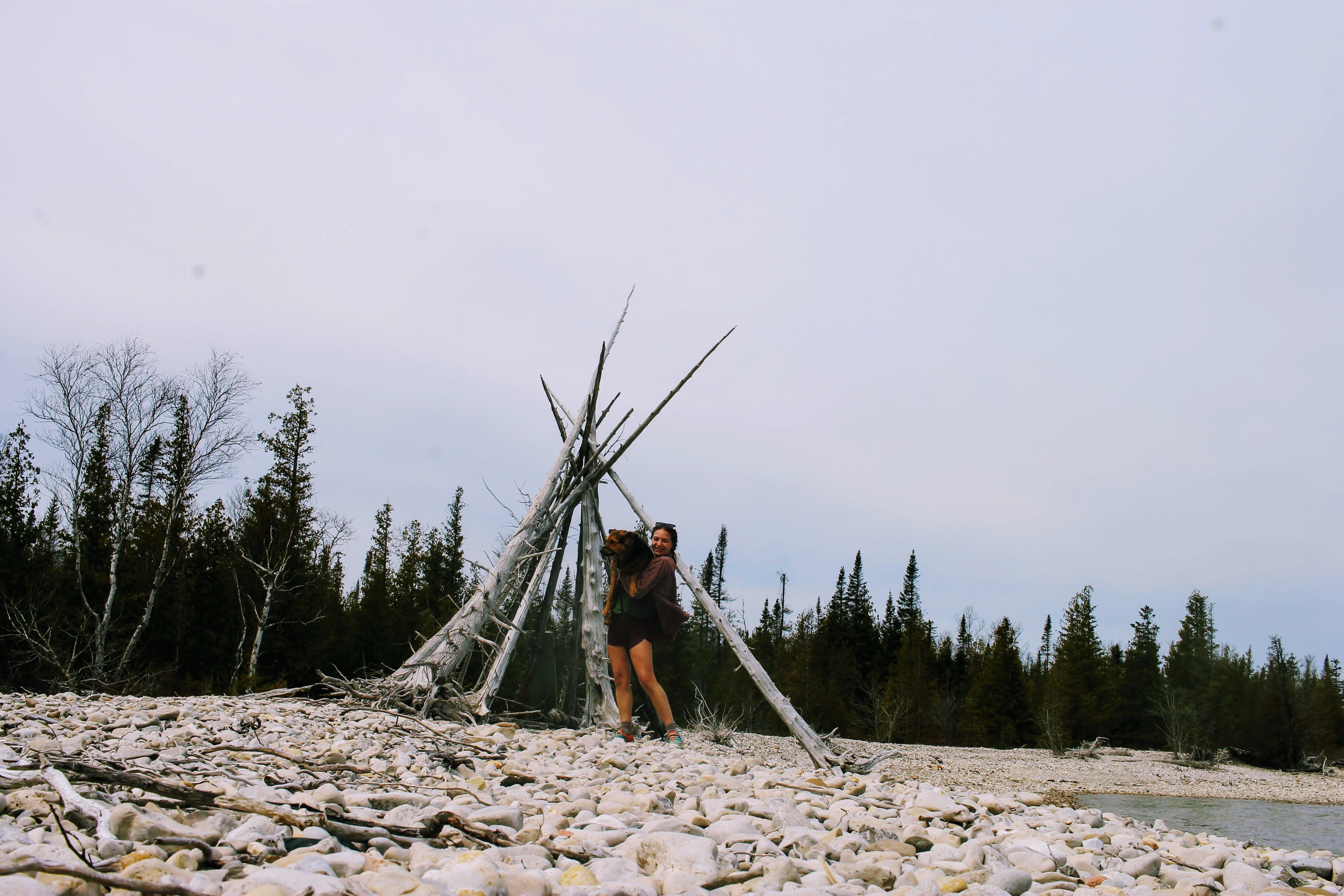 So back into the woods we go. For a very brief moment. Because we are deposited back to the lakeshore. Gob takes another opportunity to dip his toes into Lake Huron. I think we have stumbled onto the harbor that is the namesake for this park. But I forgot my trail map, so we may never know.