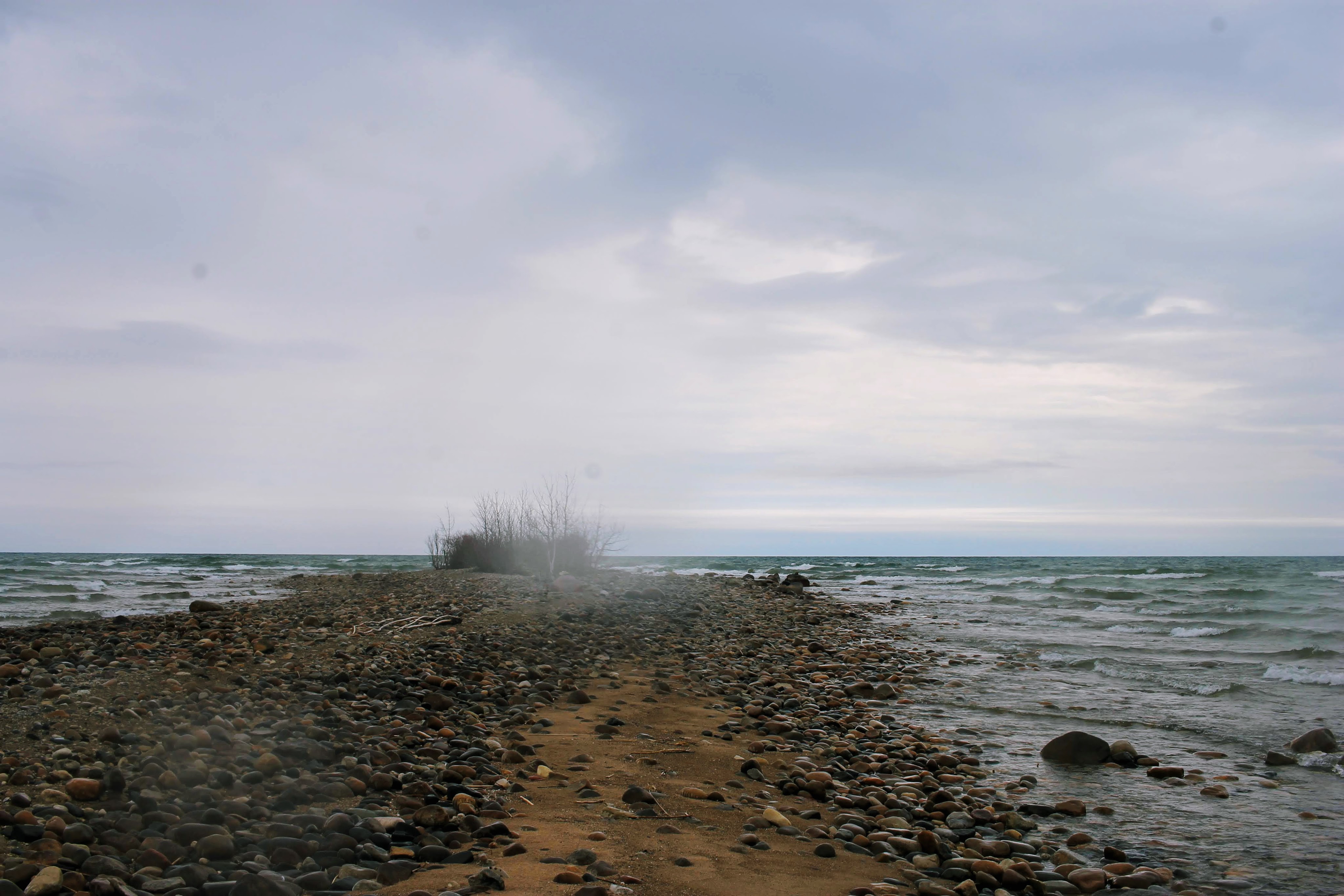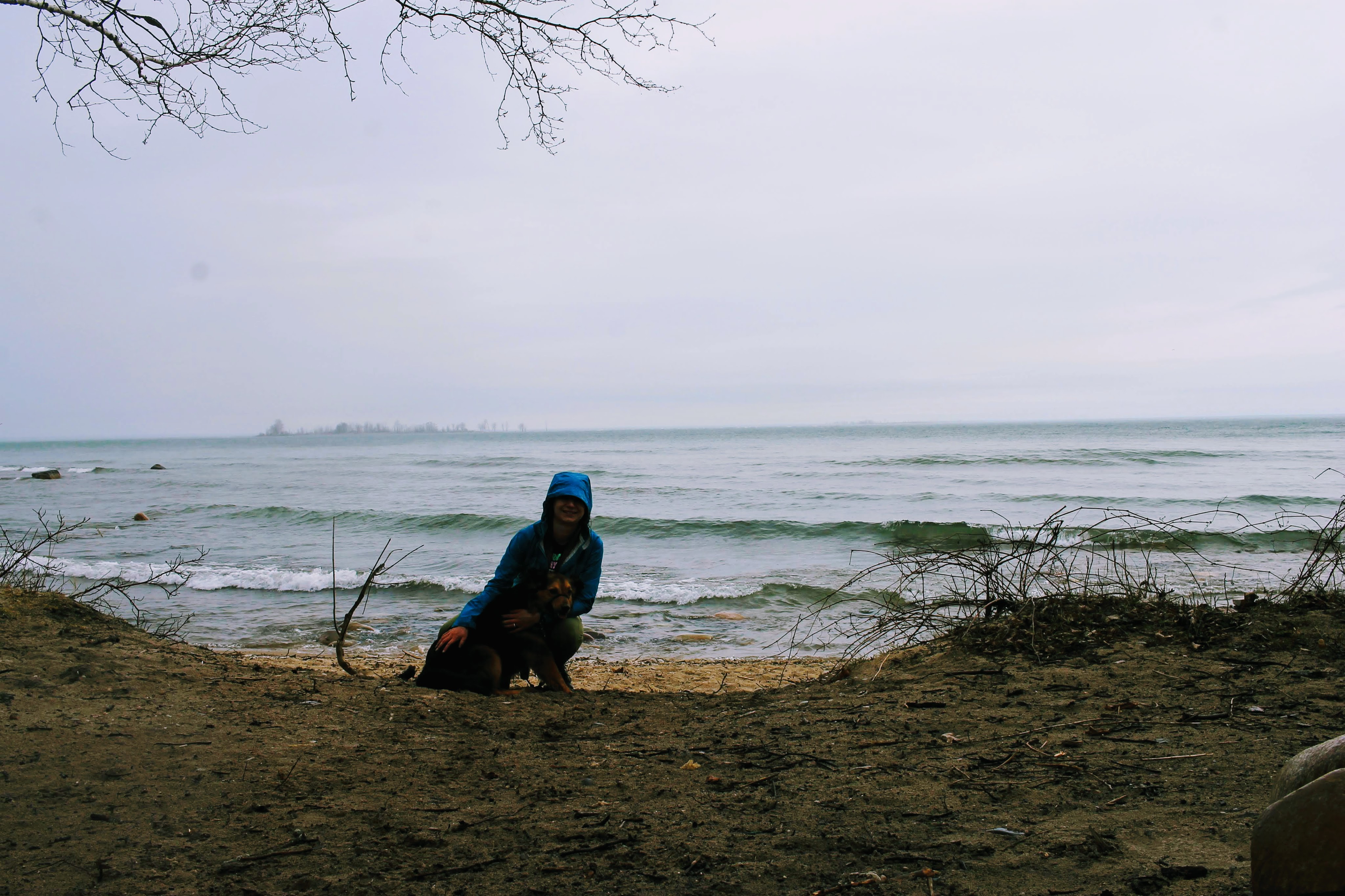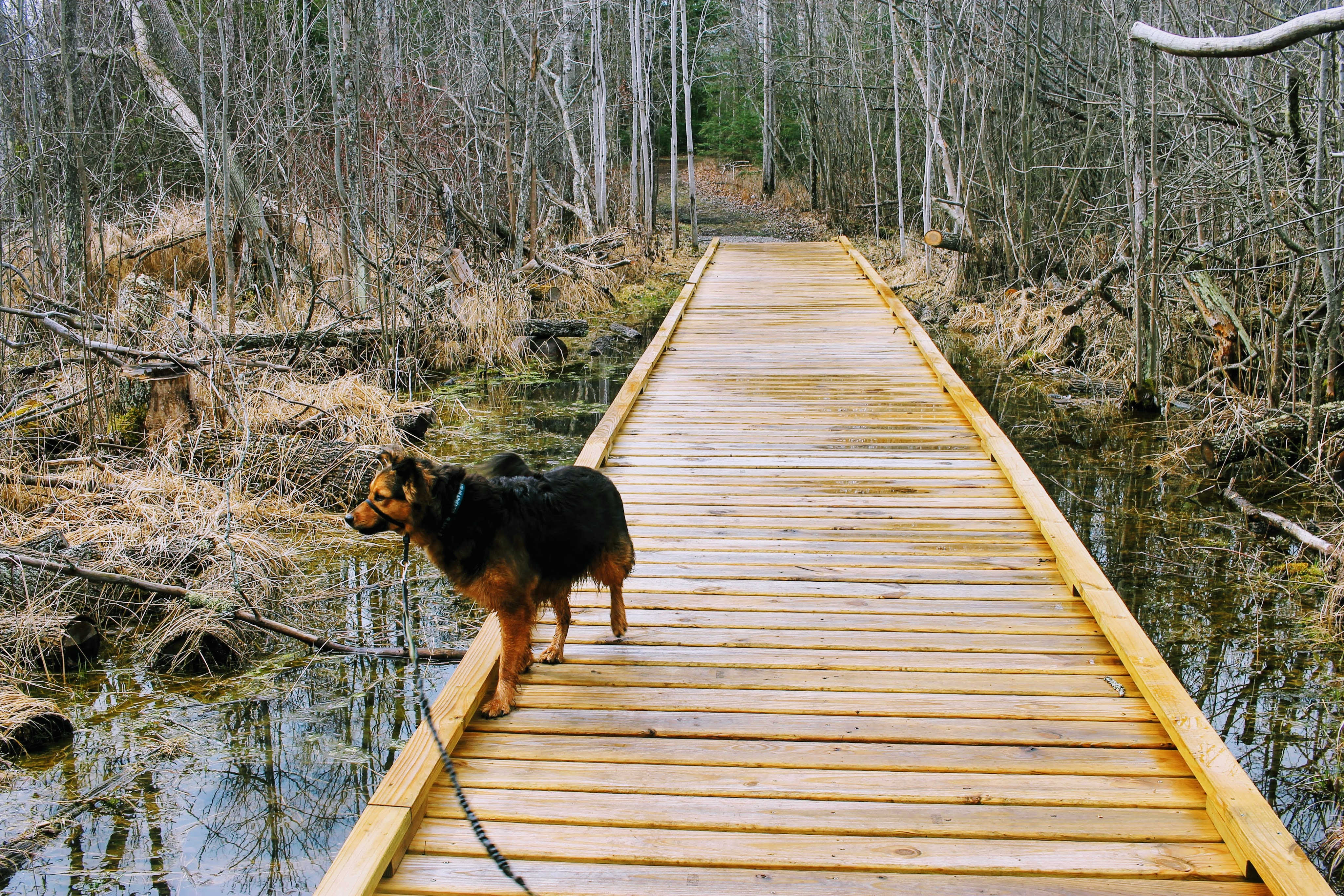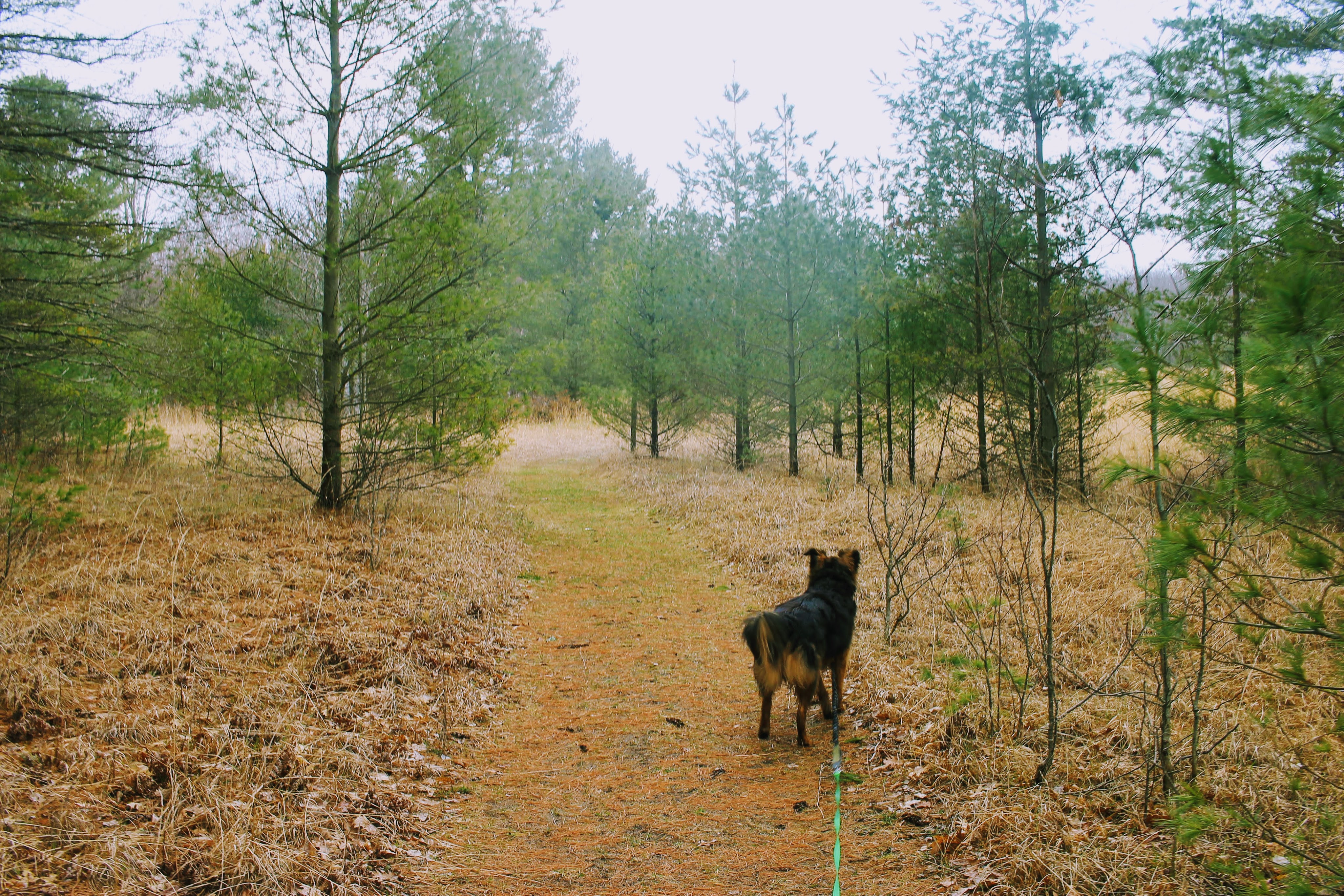 Into the woods we go. But not for long before we take a pitstop at the shoreline. The water is choppy. Gob hesitates, but only for a minute, before diving in to chomp at the waves. I don’t let him play long though. We have many miles ahead of us, and I want to beat the rain.