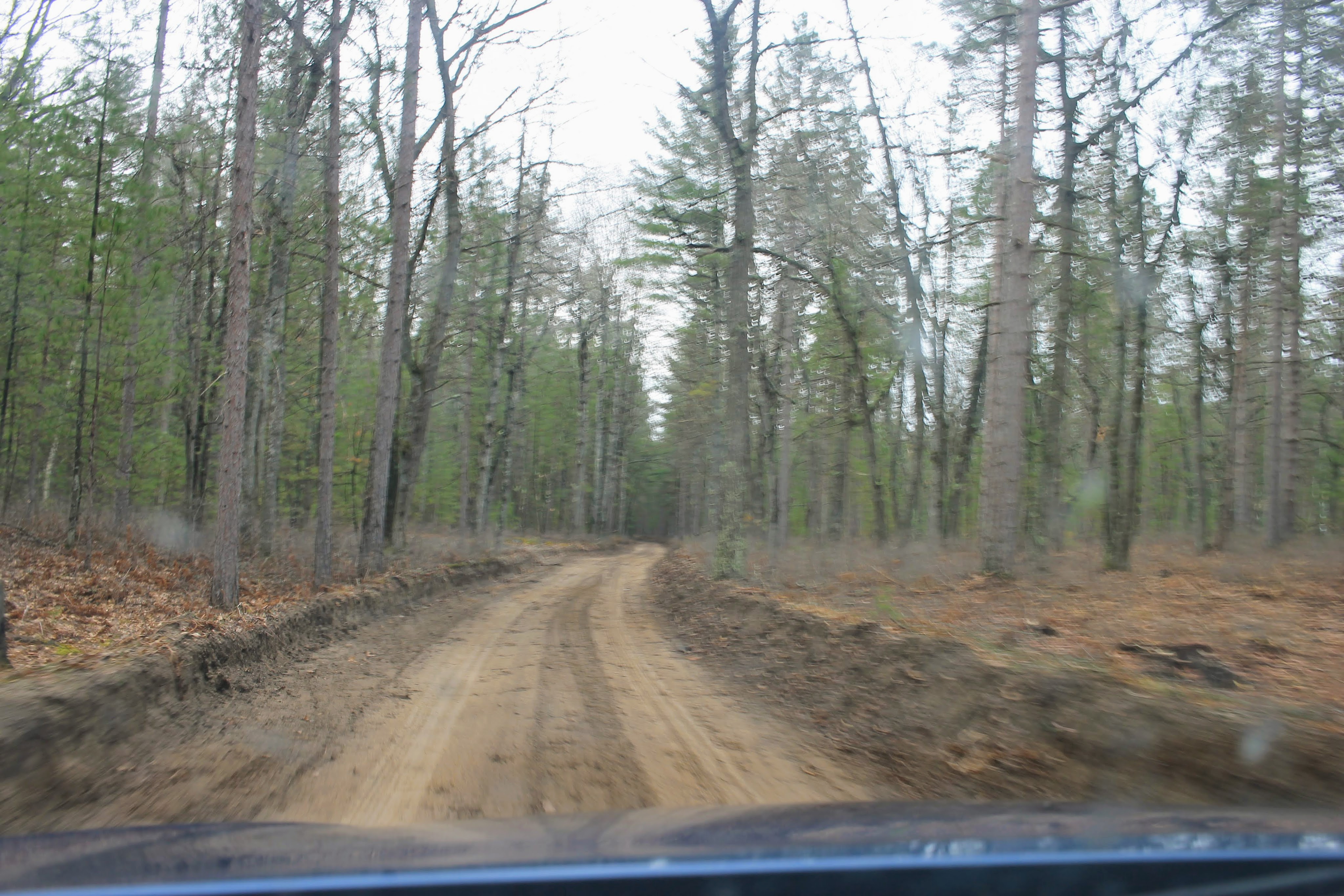 I find myself on a road that I’m not convinced is an actual road. No pavement. No gravel. Just a mixture of dirt, sand, and decaying pine needles. But it must be a road, because the path I am driving is dug about a foot into the surrounding forest floor. Somehow Gob doesn’t notice the numerous deer frolicking around. No other cars in sight, I pause for a shaky photo. Having lost their momentum, my wheels spin in the sand, struggling to find their grip. But thankfully I have the Subaru, and we get back on our way.