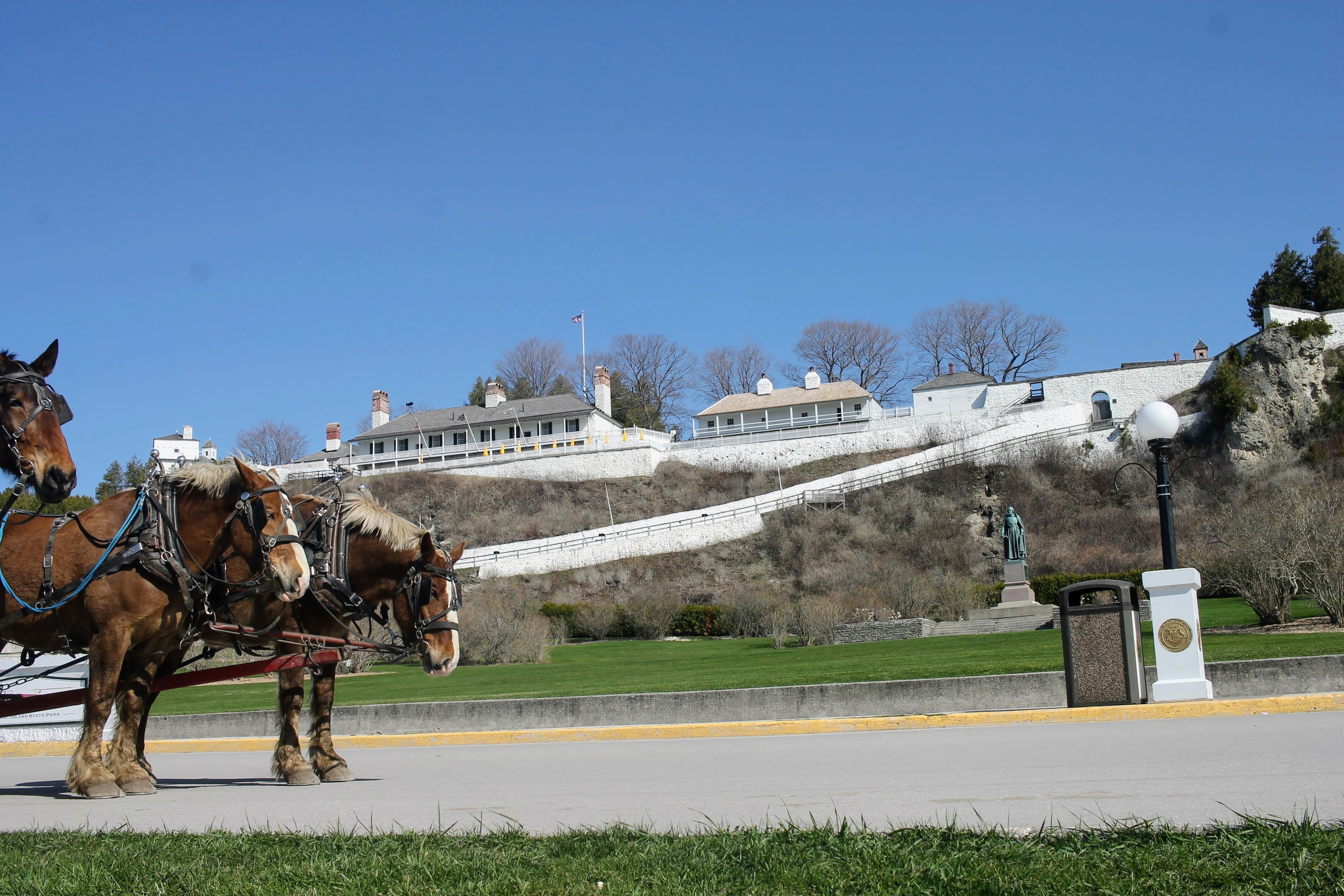 As we near the island, we pass two lighthouses. The google description of one simply states, “this is a well-maintained lighthouse.” As if that was helpful information. Only 10 o’clock and I’ve already checked the first item off my Mackinac Island Bingo!