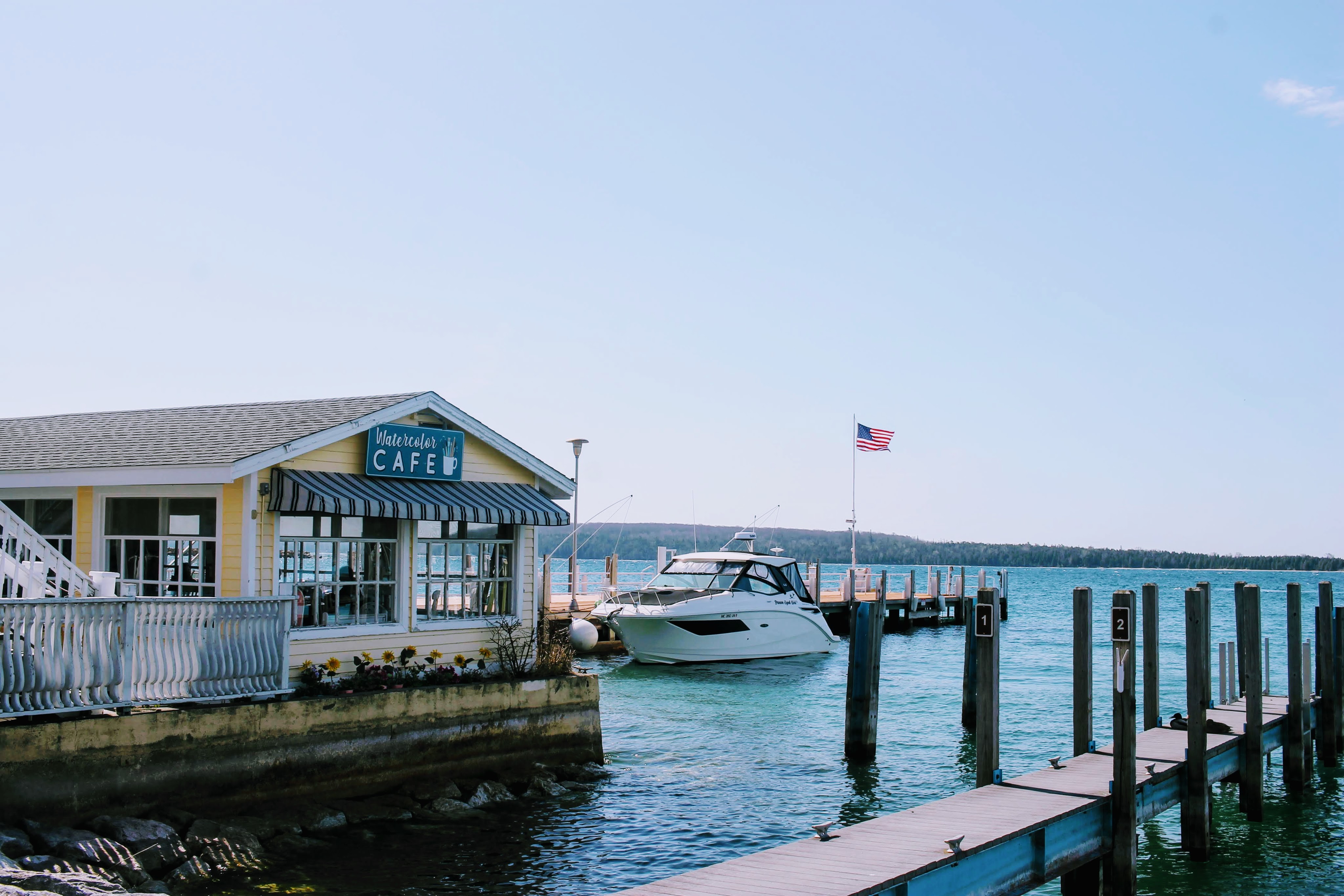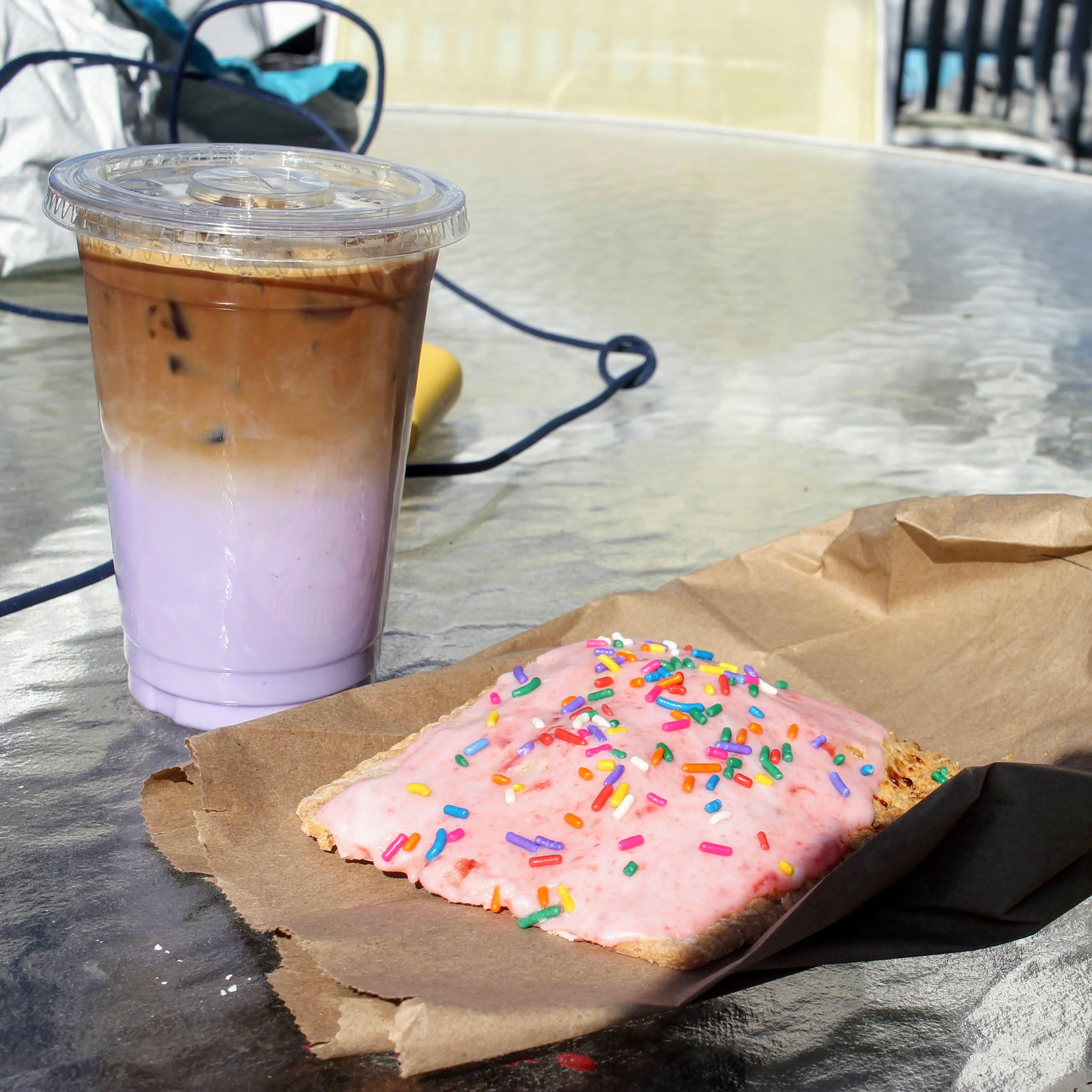 First stop once we de-boat, obviously, is coffee. I’ve chosen a spot off the main drag with outdoor seating, because, well, dog. But the Watercolor Cafe turned out to be as cutesy-artsy-fartsy as the name would imply. Mason enjoyed a delicious Chai latte. I became quickly obsessed with my Lilac latte. And we split a poppie – their version of a giant homemade pop-tart – which basically means that Mason had two bites and I ate the rest. Another bingo tile checked off.