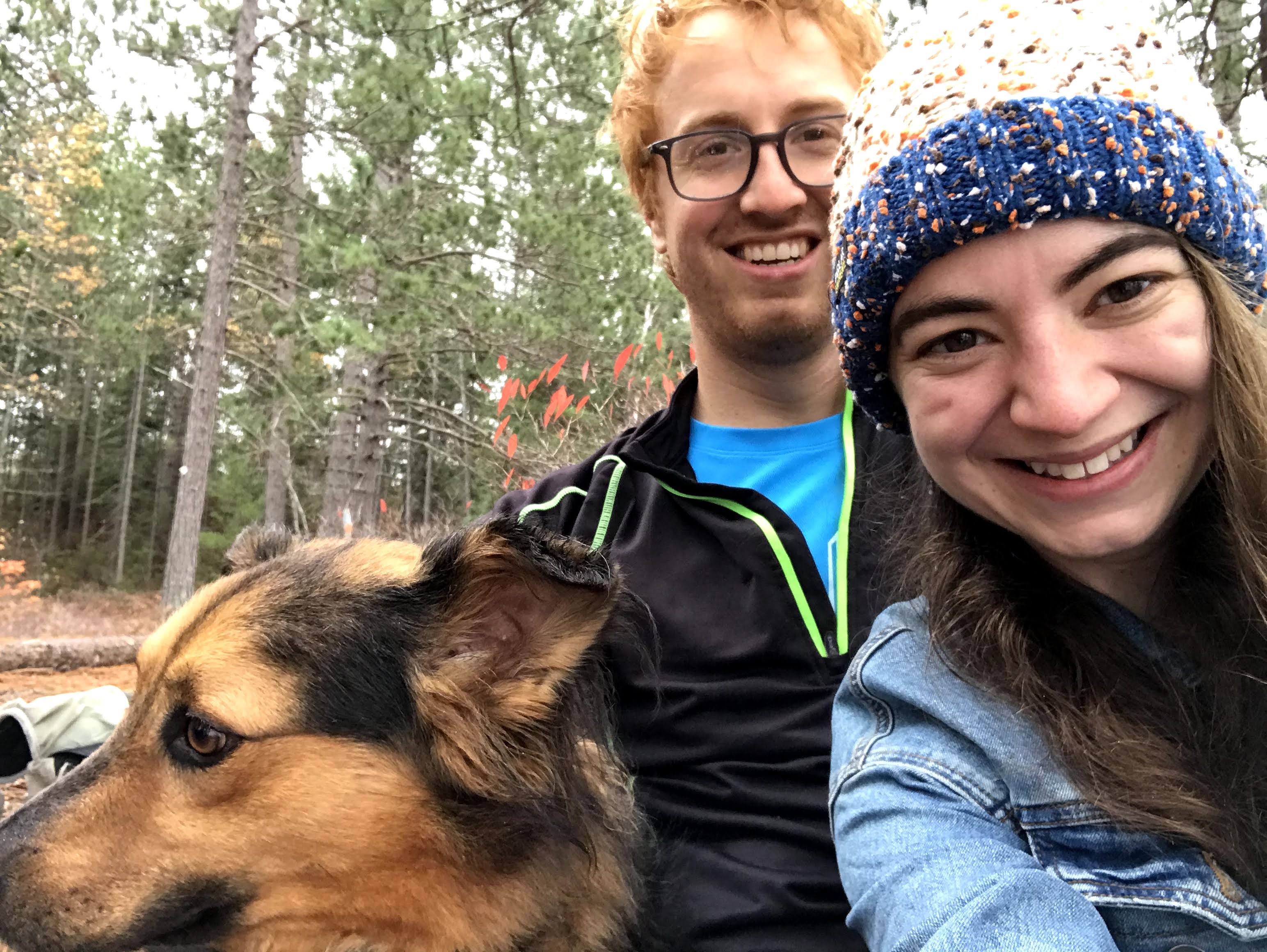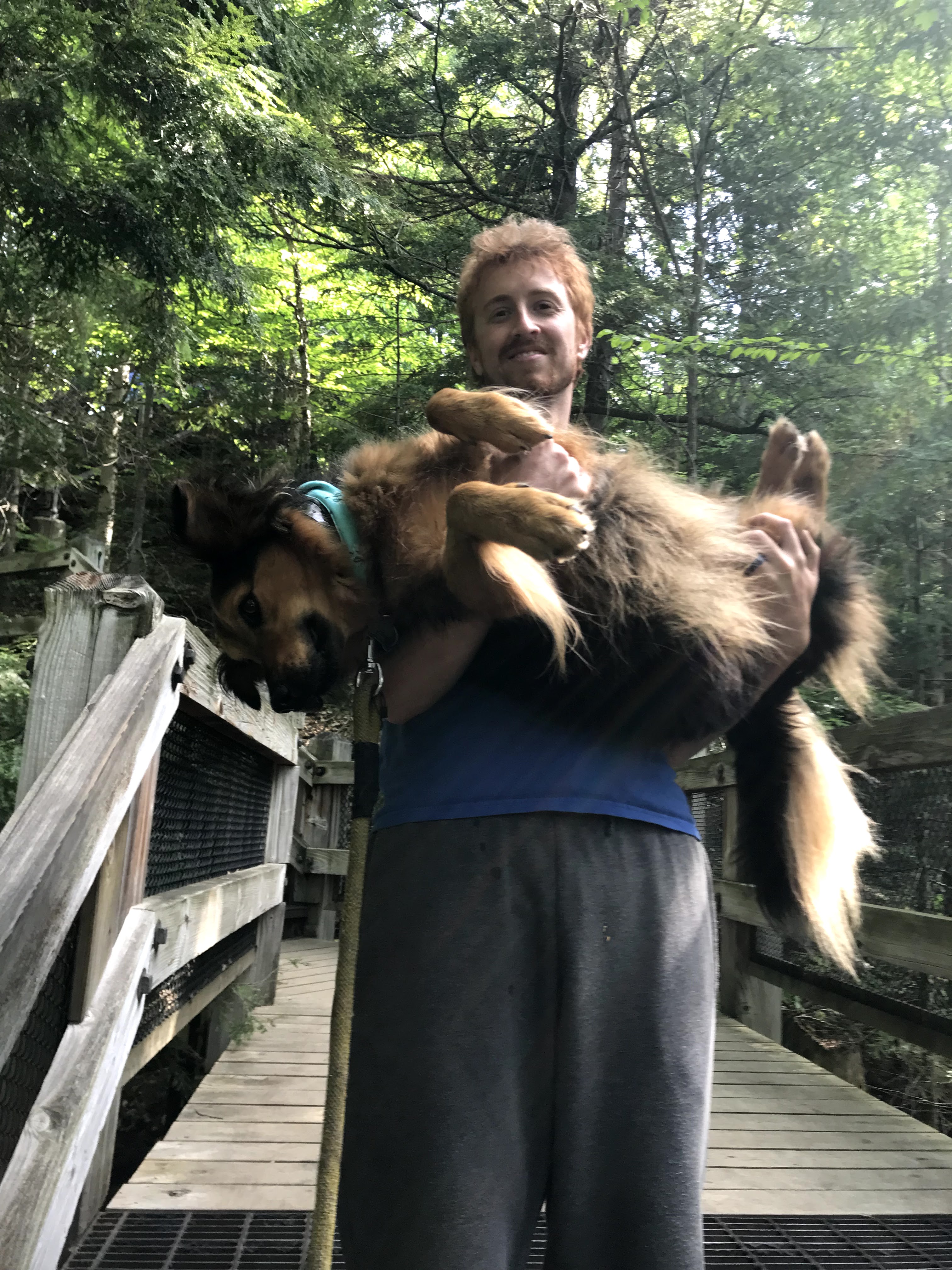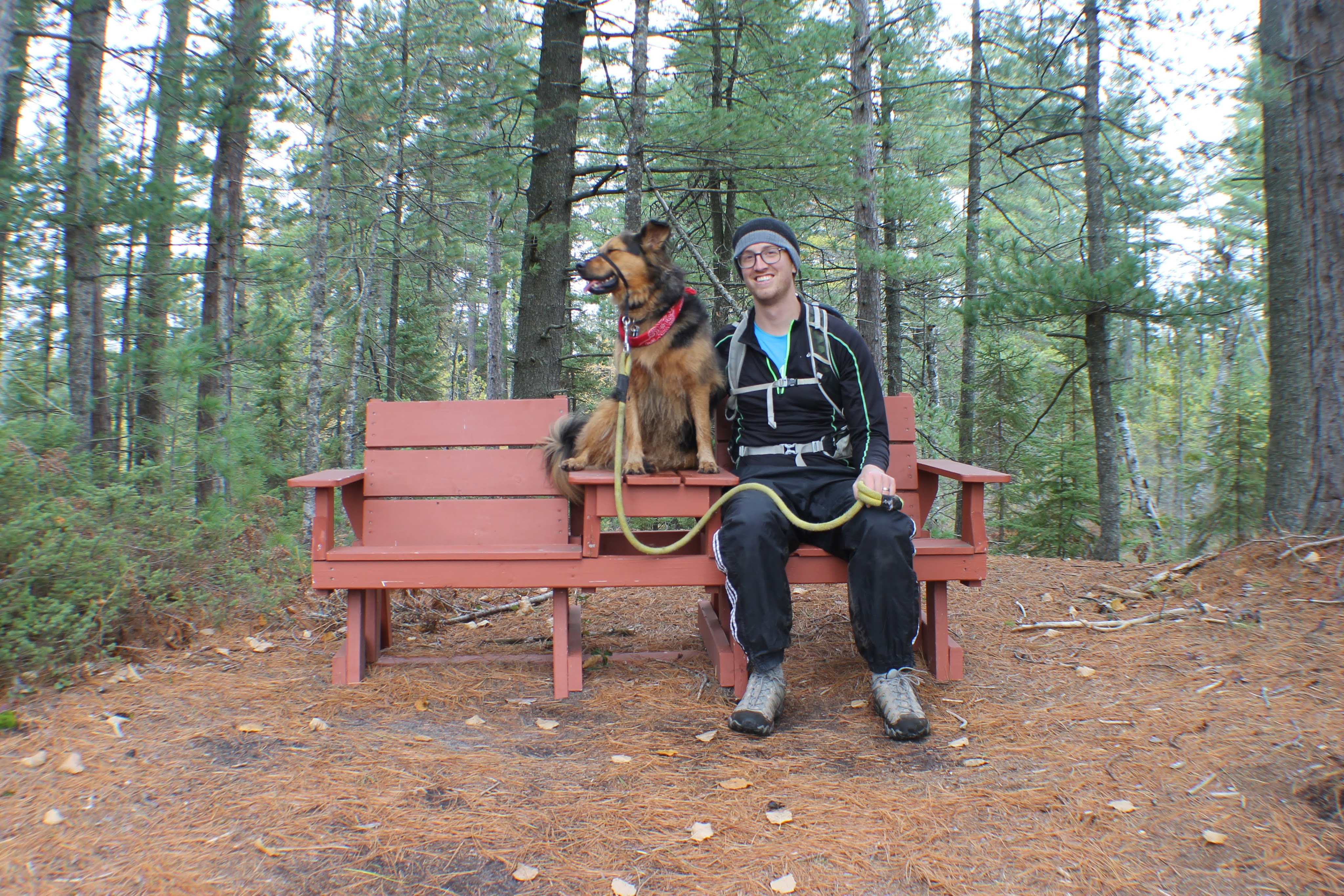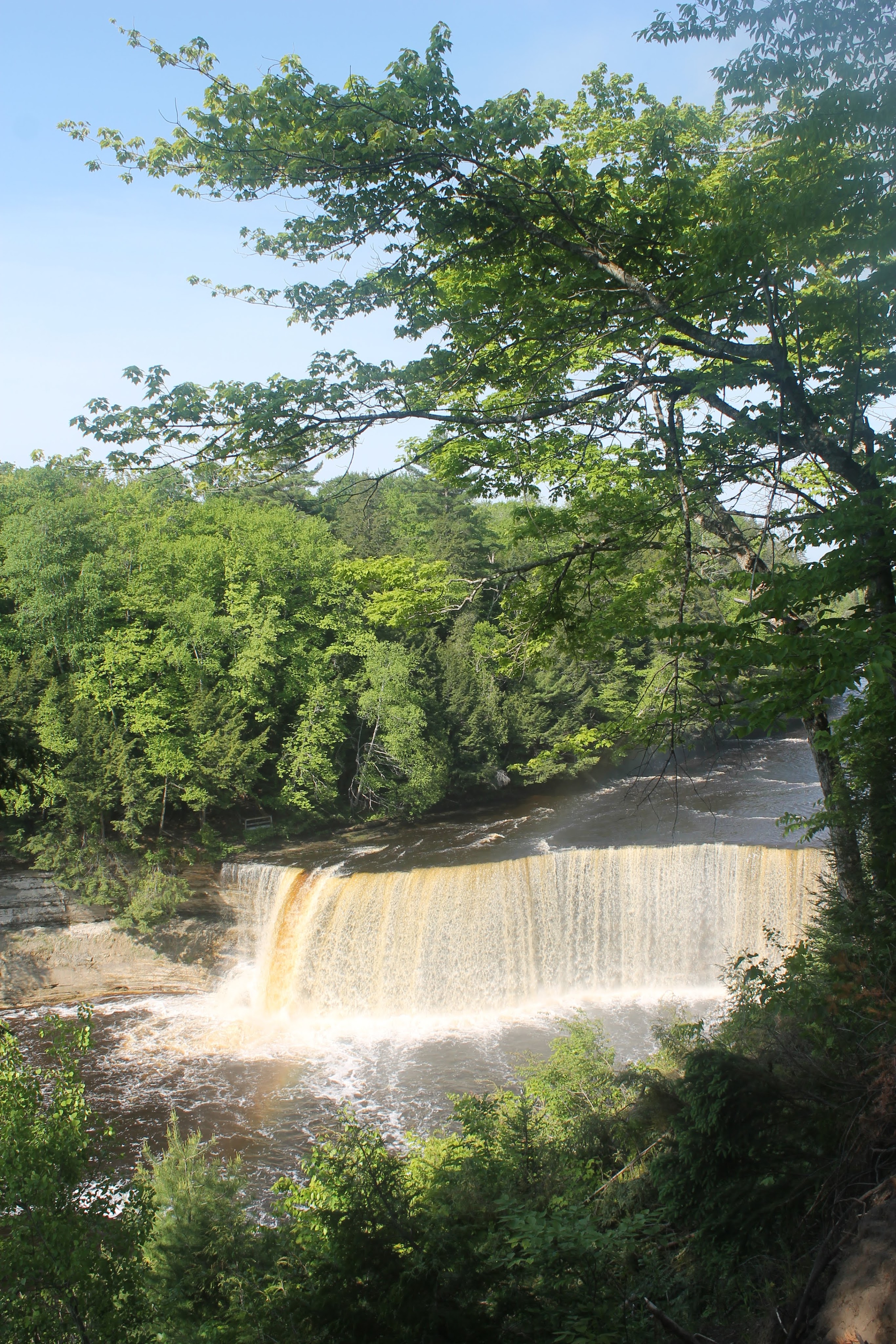 As we cross into the UP, there is snow on the ground. I am not mentally prepared for this. The park is teaming with cars. We can see Gob’s anxiety growing. We decide to take him on a big hike before attempting to see the falls. A tired pup is much more manageable around crowds.