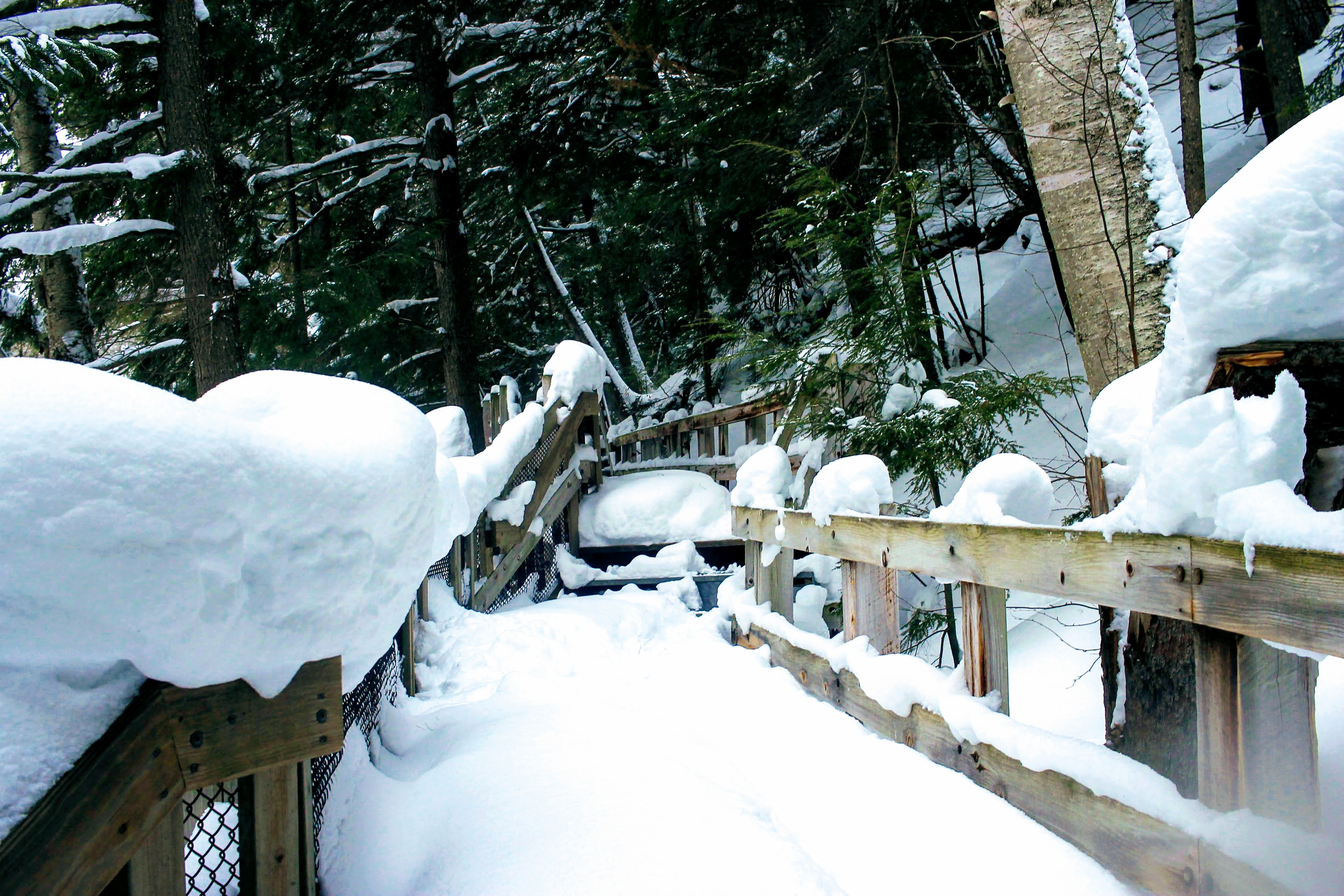 Winter would be second. It’s a majestic wonderland. The fluffy white snow stained a light pinkish brown by the tannins. The icicles weigh down the trees along the river. The falls themselves beginning to freeze over. The only, but major, downfall is the treacherous driving conditions if you’re not used to and prepared for the snow.