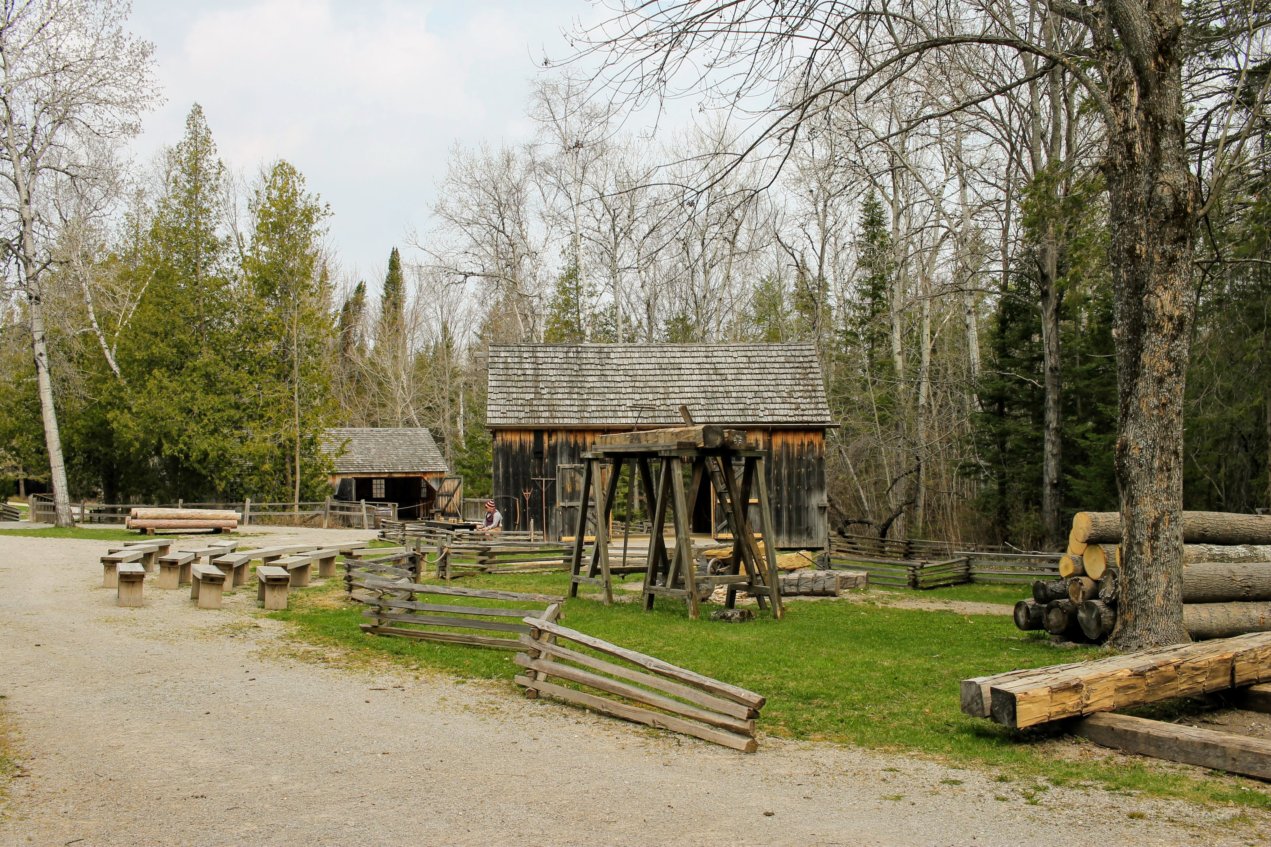 The sun evaporates any evidence of Gob’s mischief (mainly his water-logged body) before we get back to the historic section of the park. We actively avoid both the nature guide that keeps walking in our direction, as well as the wood-worker trying to show us the sawmill. I’m sure both would provide some lovely information, but I worry Gob would not be patient with their demonstrations. We stick to the outskirts, snap a few pictures, and duck out to start our journey home.