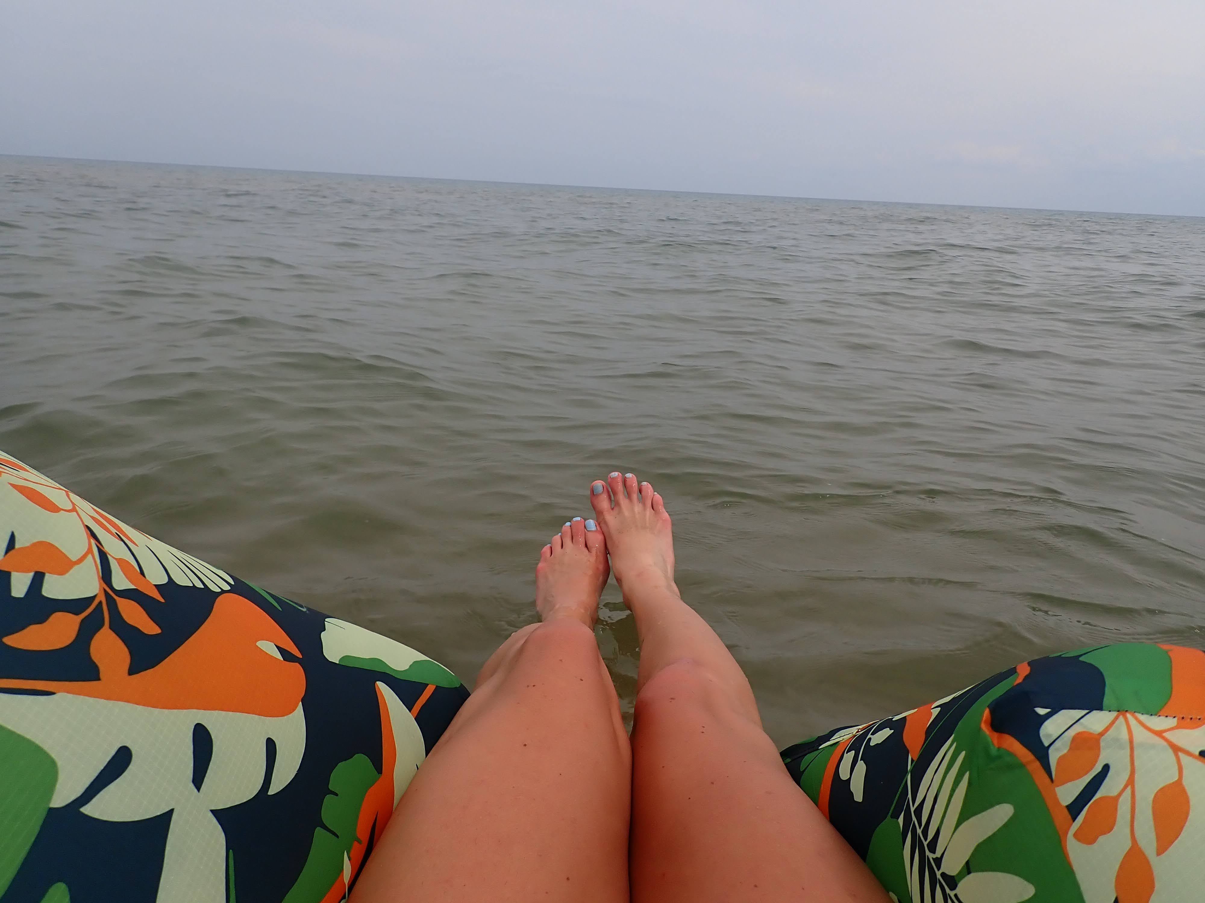 I’ve put this off long enough. For my final park visit, I absolutely must get in the water. Soak up as much of these Great Lakes as I can. I inflate my outdoor lounger, not even sure if it will float. But there’s only one way to find out. I wade into the waves, dragging it behind me. And by golly, it FLOATS! I hop in, pleasantly surprised and I’m sure resembling nothing but grace and elegance. Yes, the water is cold. But you get used to it quickly. The tide keeps beaching me. Forcing me to jump back into the water and swim further out. I guess it’s better than the alternative of finding myself out further than I wanted.
