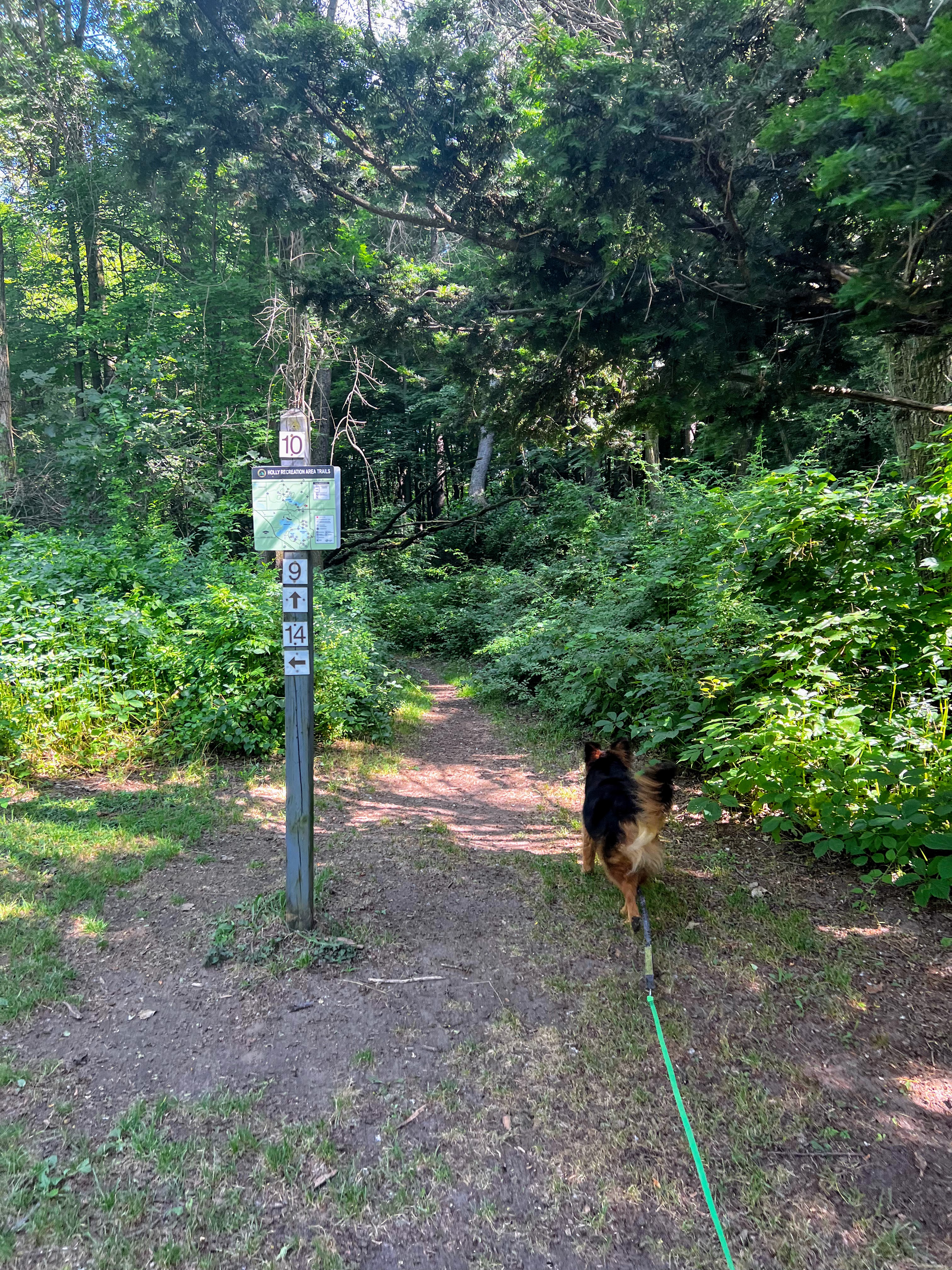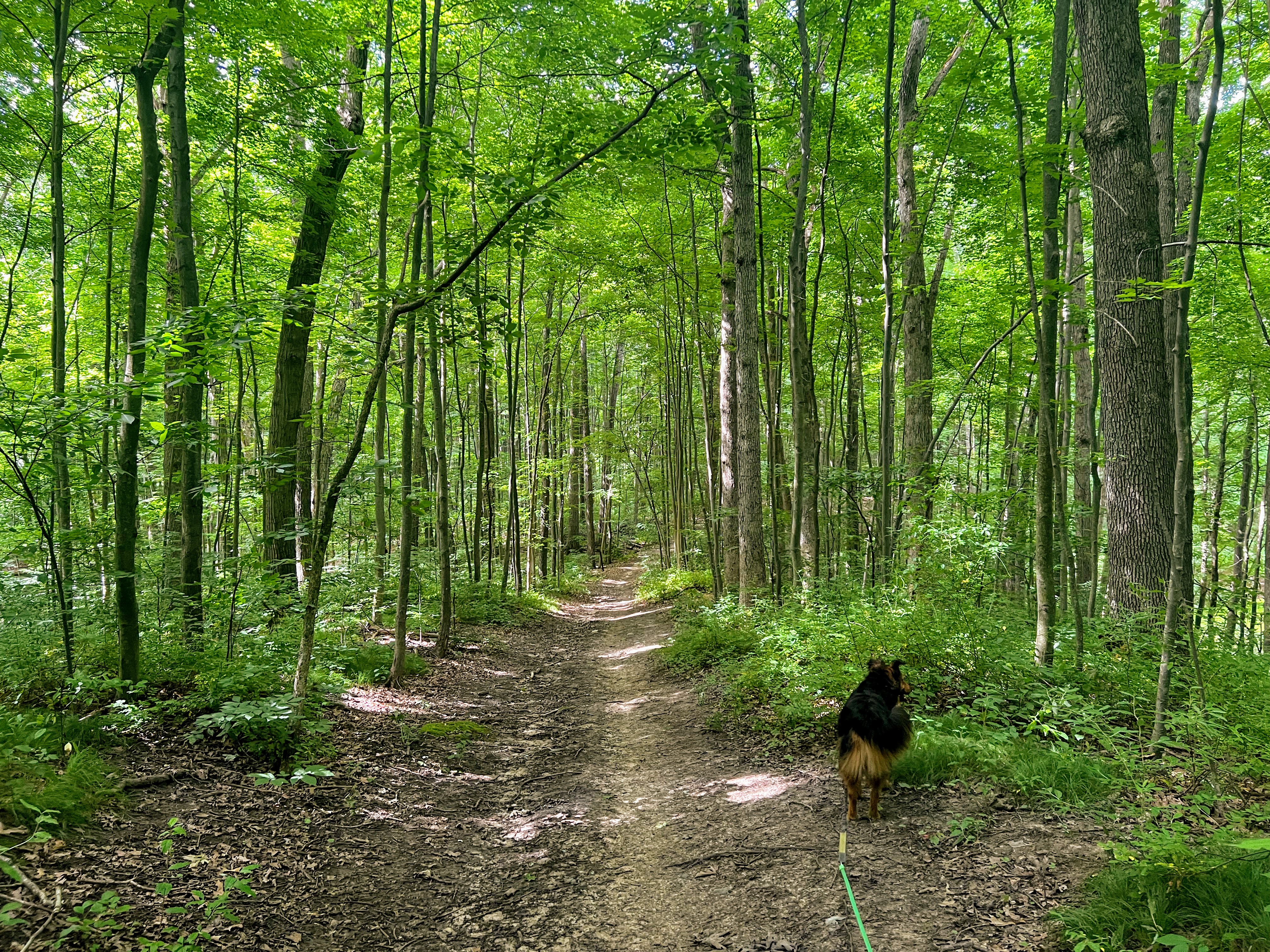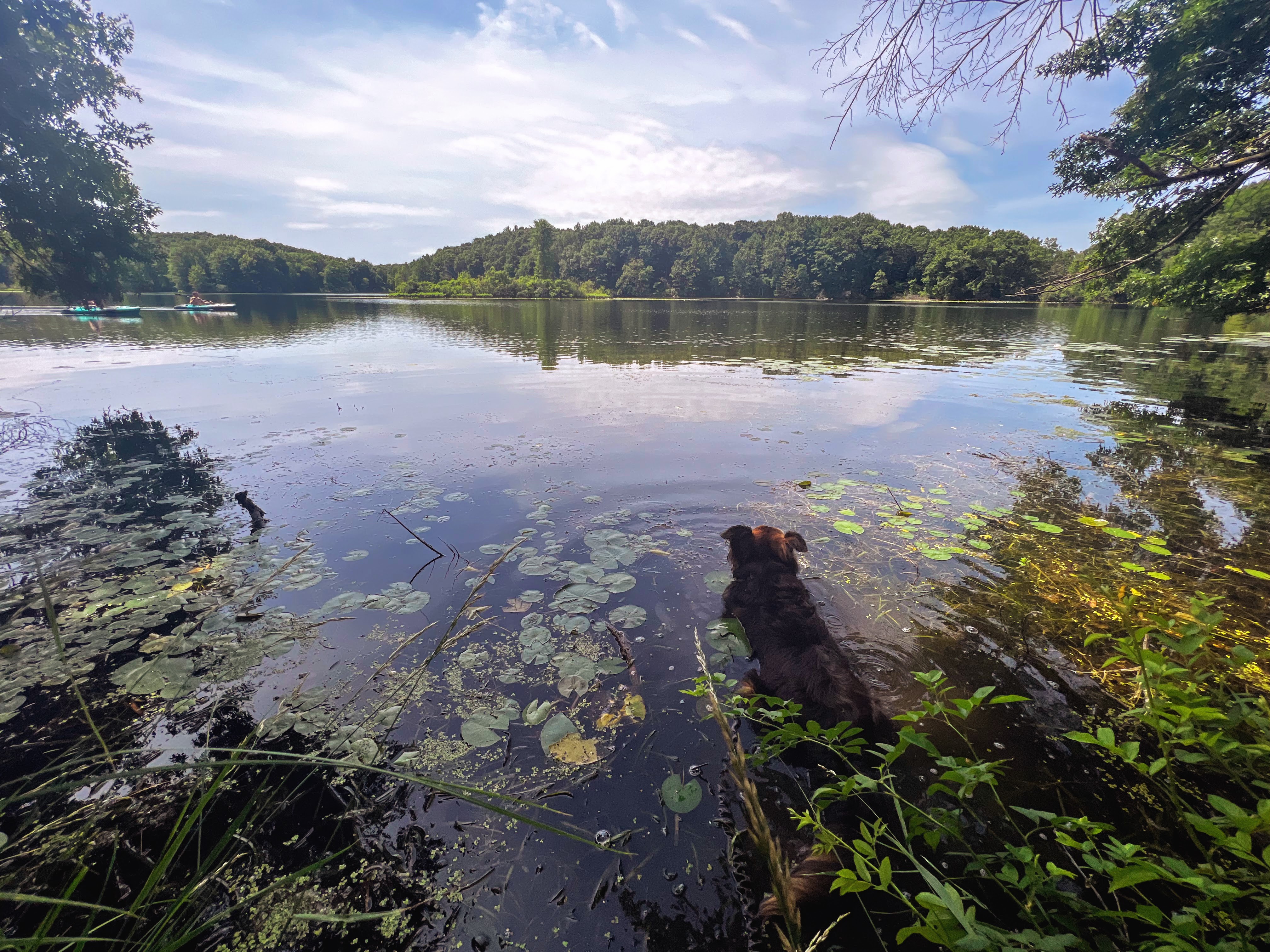 But our next loop takes us around a lake, and I know Gob wants to take a dip. With every step we take, Gob looks as me with eyes that say, “Are we there yet?” And I tell him “Soon”. And finally, I’m telling the truth. He can smell the water and picks up the pace. All but pulling me down the final hill and into the water with him. I let him soak for a few minutes, but then the bugs start to, well, bug me. So I convince him to continue down the trail. I have to at least attempt the full loop. Poor old Gob is ready to be done though. He drags behind me like the pitiful old man dog he is. I let him take one more soak, as we turn back to hike the final mile back to our car.